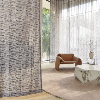 Cortina transparente bordada con susurros ondulados