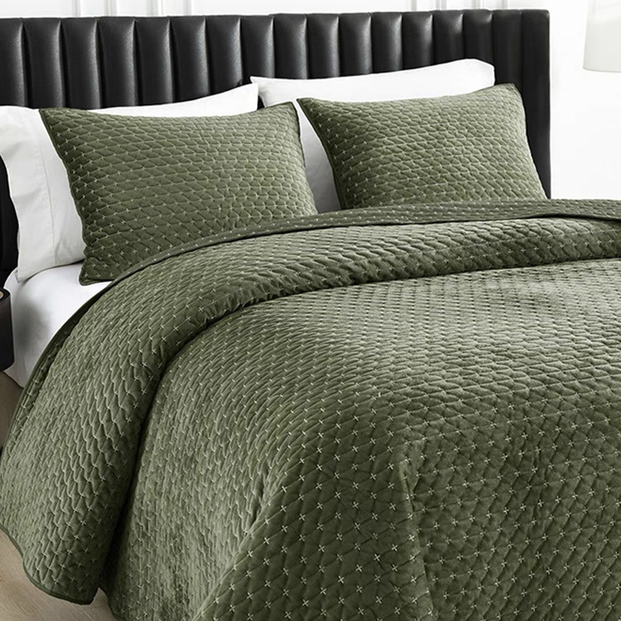 Realce su dormitorio con la suntuosa elegancia de nuestro lujoso juego de edredón Olive. Este sofisticado juego, adornado con un patrón de rombos, aporta un exuberante tono oliva intenso que aporta calidez y estilo a cualquier espacio. Confeccionado con tela afelpada de alta calidad, ofrece una comodidad excepcional y una textura refinada que complementa tanto la decoración moderna como la clásica.