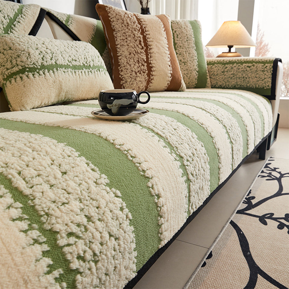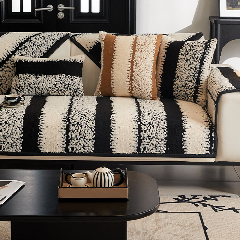 Funda de sofá antideslizante de felpa a rayas Cozy Ridge