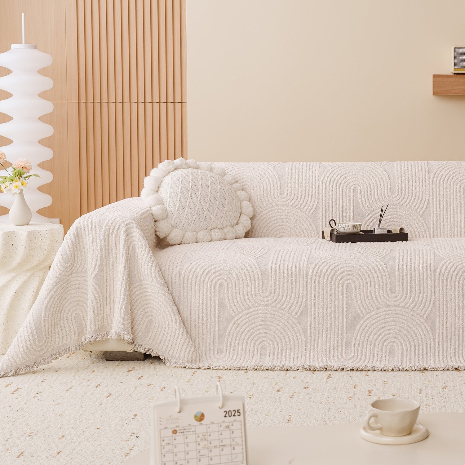Aporta elegancia refinada y calidez a tu hogar con nuestra funda de sofá Soft Arc Plush resistente a los arañazos. Con una textura capitoné de diseño artístico en forma de arco, esta funda realza tu decoración con una estética moderna y relajante. Diseñada para otoño e invierno, ofrece el equilibrio perfecto entre suavidad, durabilidad y practicidad para el día a día. Confeccionada con un tejido de felpa de primera calidad inspirado en la chenilla, es increíblemente suave al tacto y resistente a arañazos, manchas y desgaste, ideal para hogares con mascotas o niños. Su superficie texturizada añade profundidad y sofisticación, mientras que el borde con flecos le da un toque artesanal. Totalmente lavable a máquina, esta funda está diseñada para ofrecer comodidad duradera y un mantenimiento sencillo.