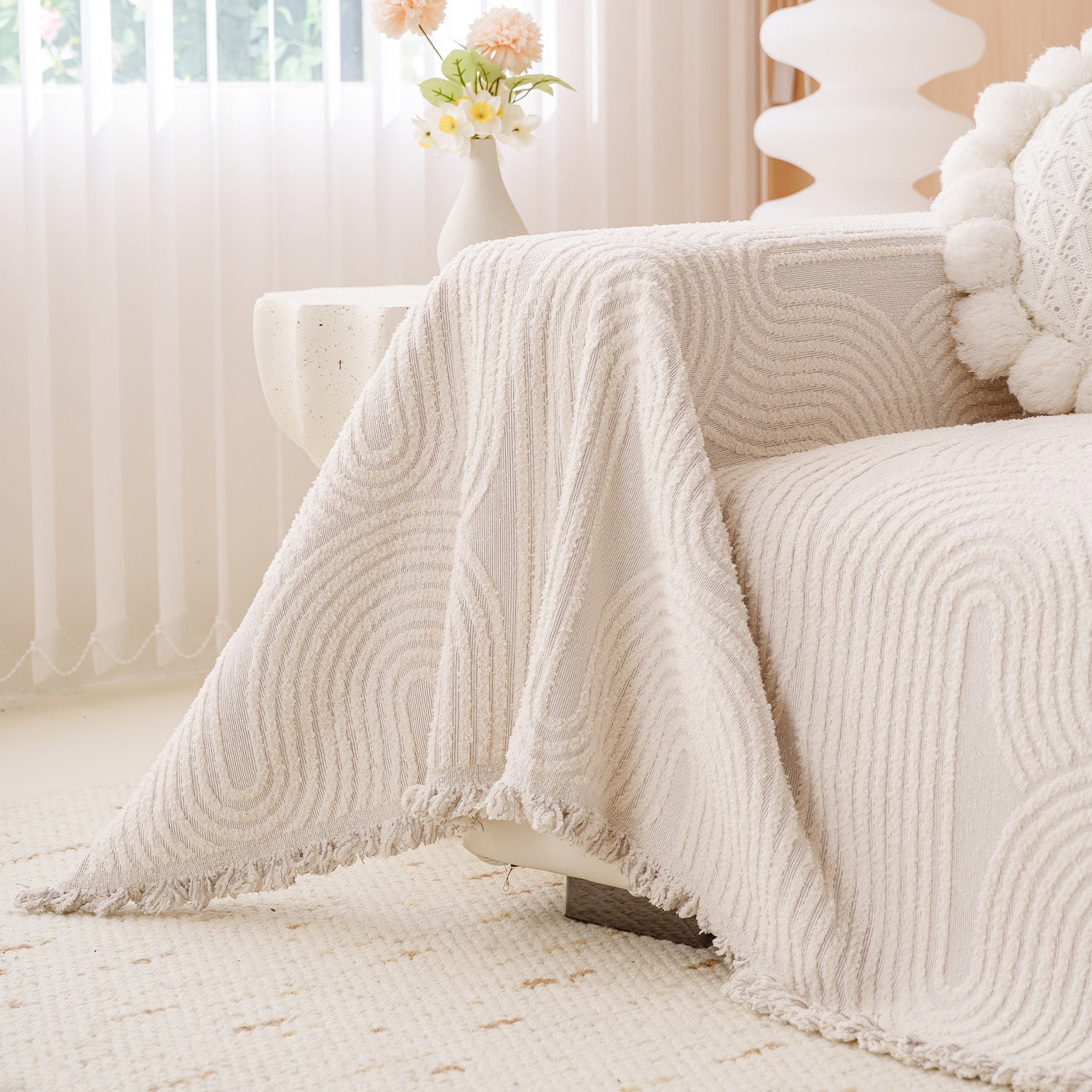 Funda de sofá minimalista premium neutra, suave, duradera y apta para mascotas: tejido de alta calidad para proteger tu sofá.