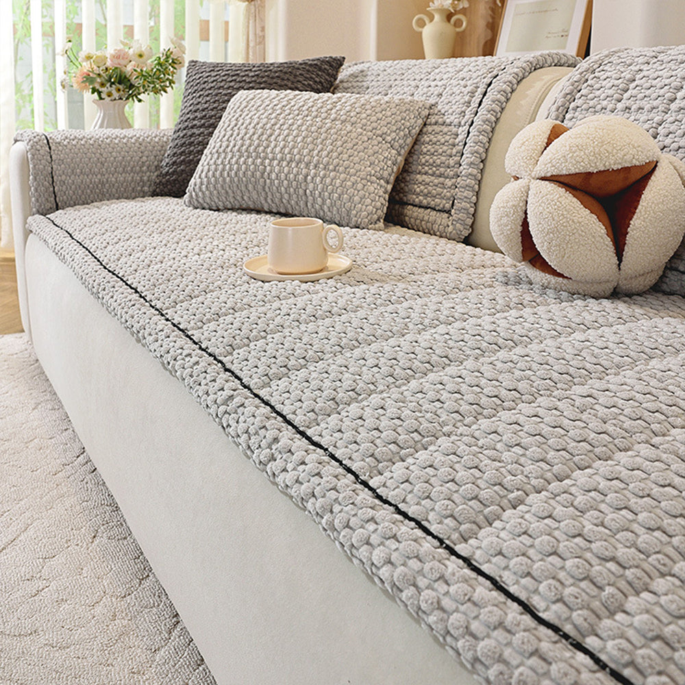 Transforma tu sala de estar con la acogedora calidez y textura de nuestra acogedora funda de sofá antideslizante de pana. Diseñada con una suave superficie de pana con textura de burbujas, esta funda ofrece sofisticación moderna y comodidad al tacto, perfecta para relajarse en otoño e invierno.