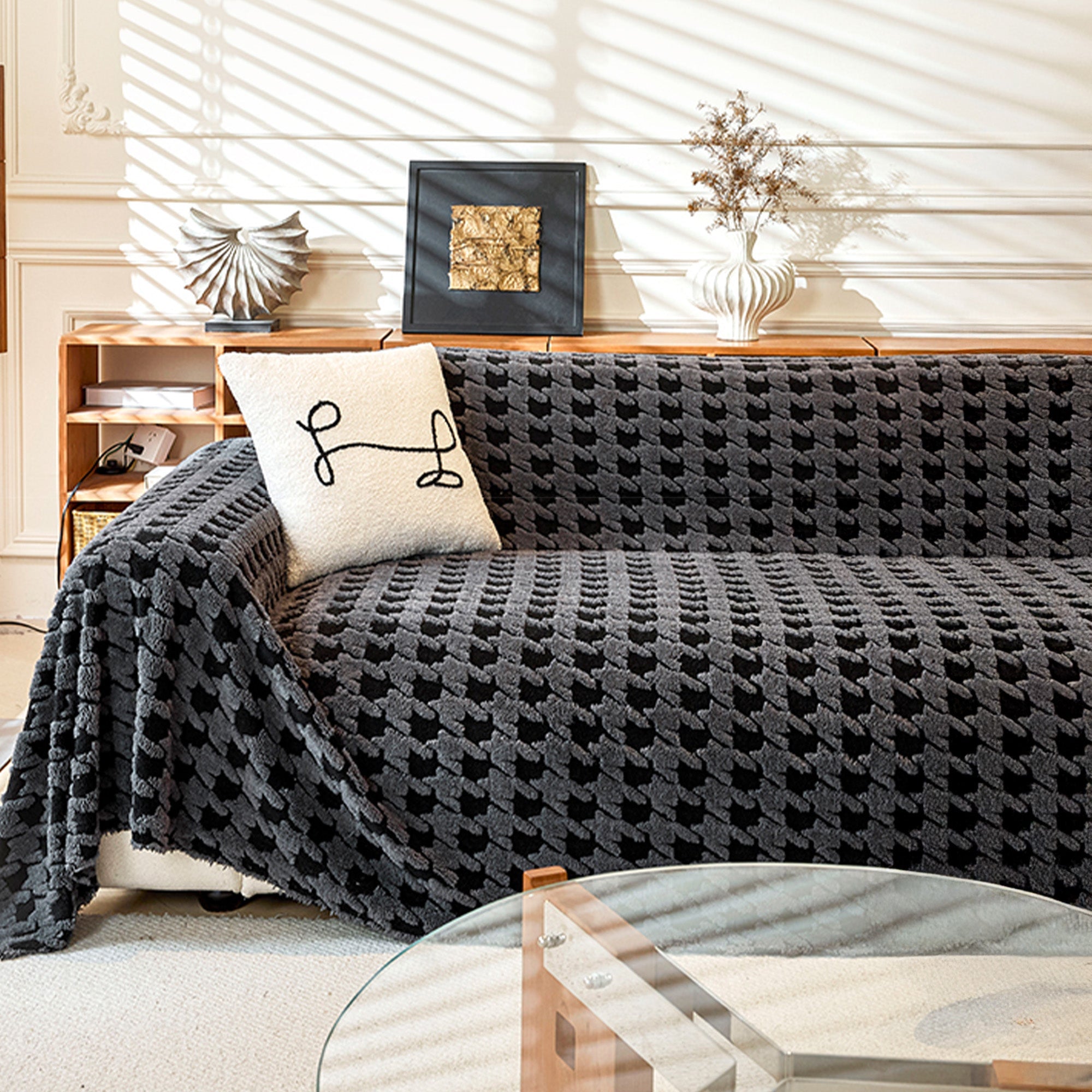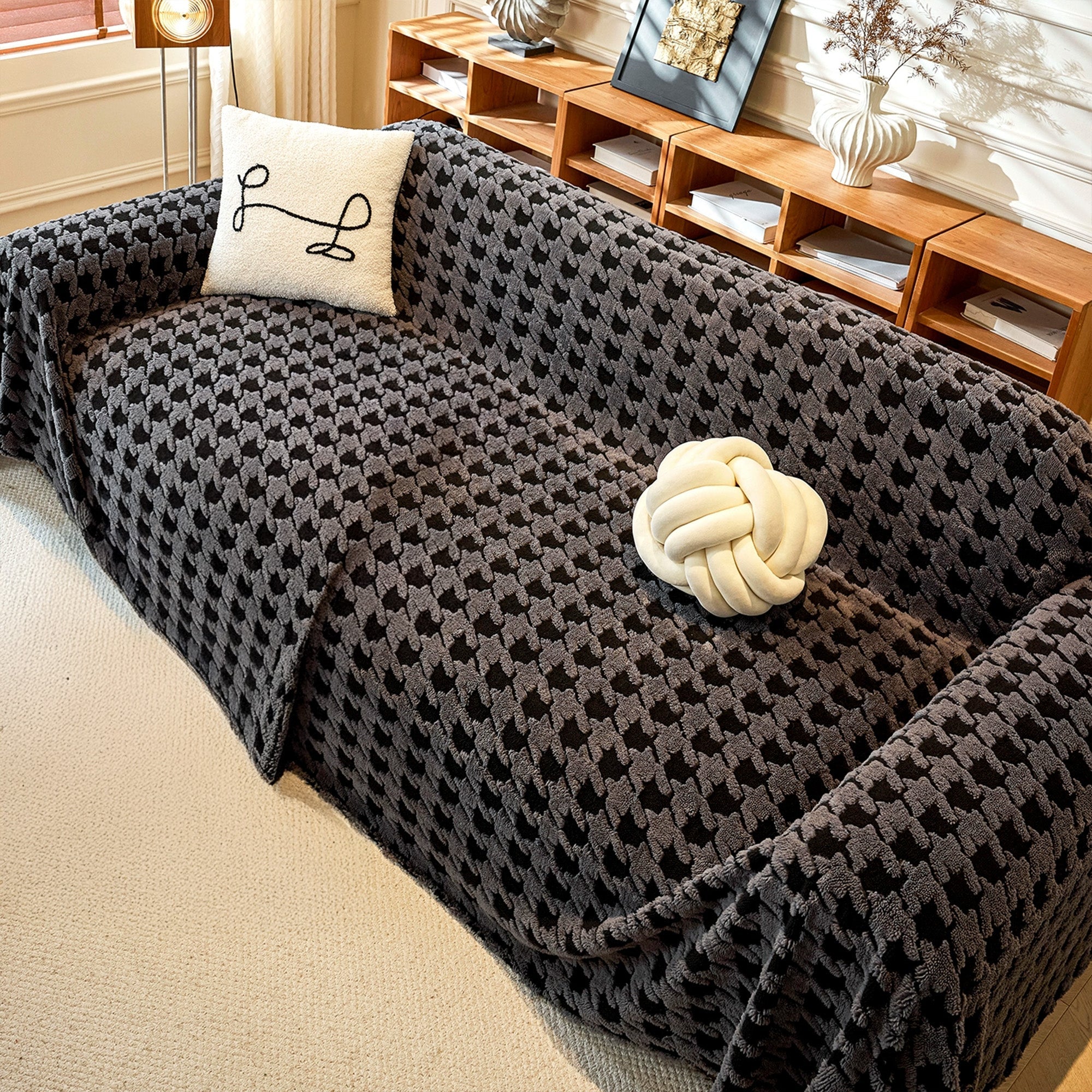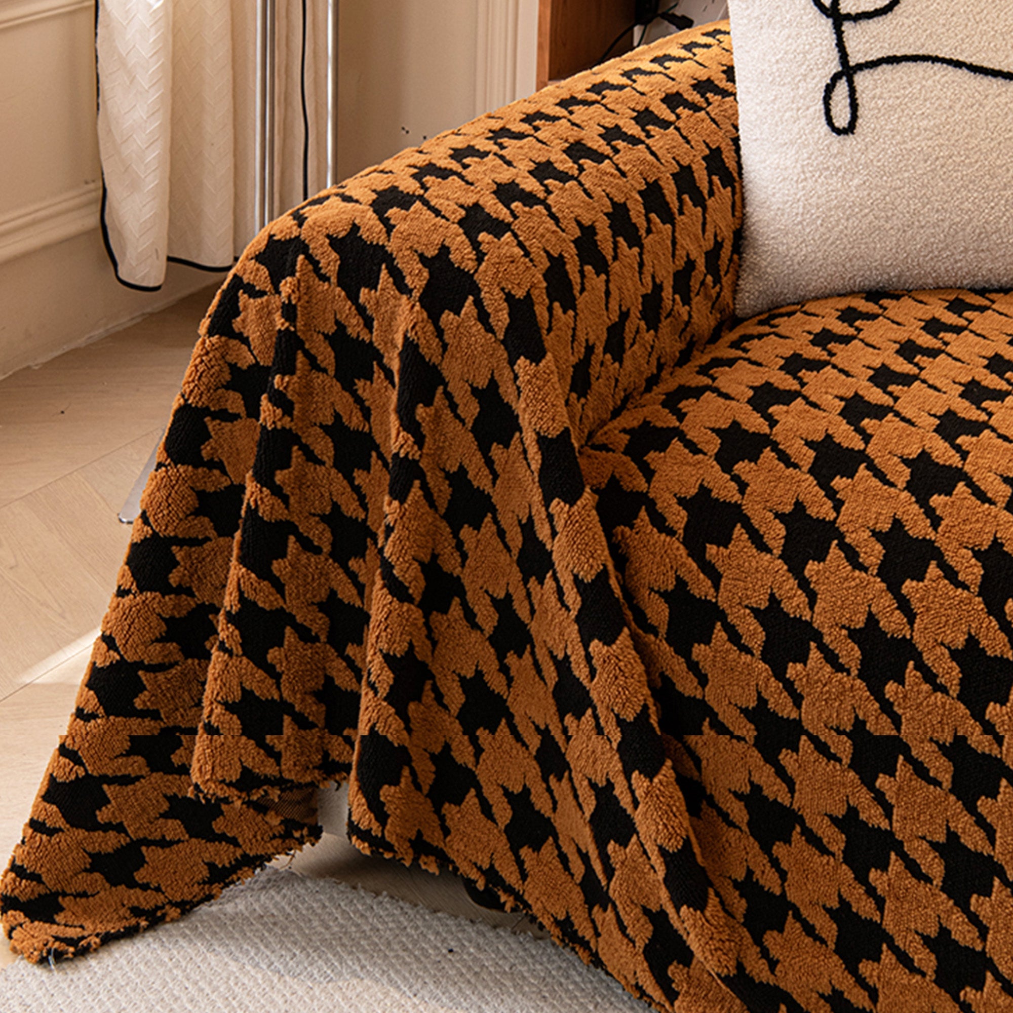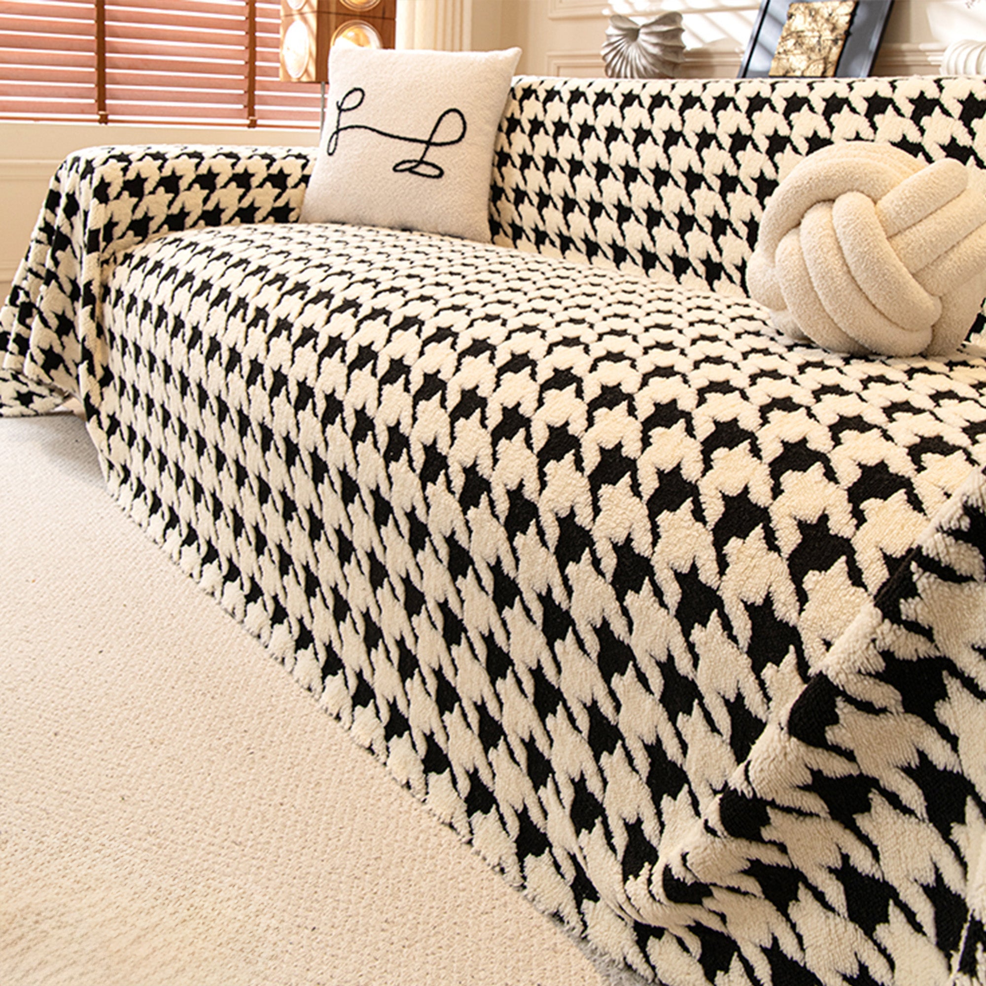 Acogedora funda de sofá de felpa con diseño de pata de gallo