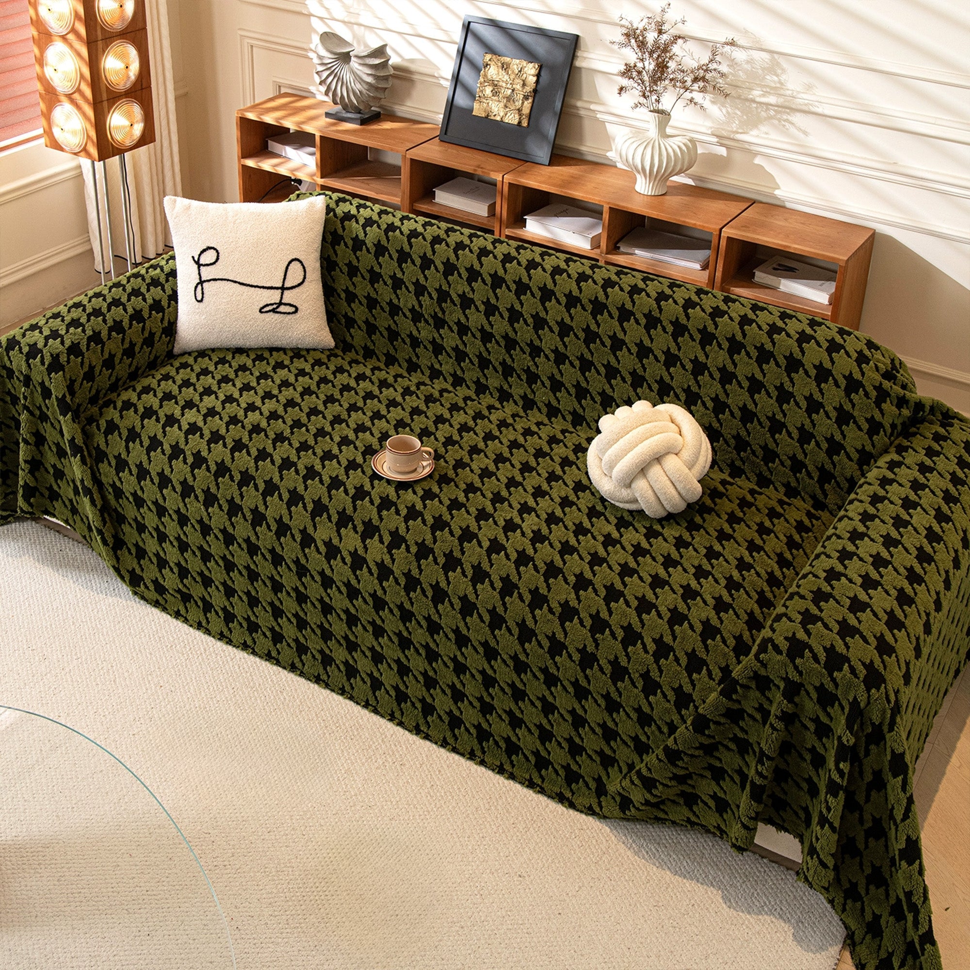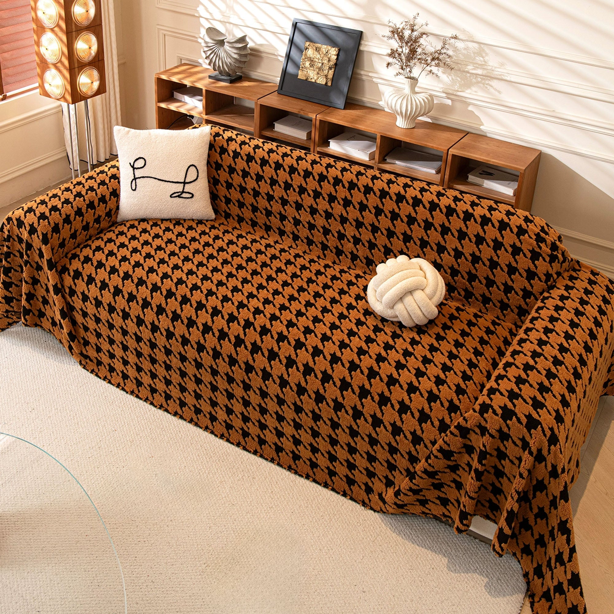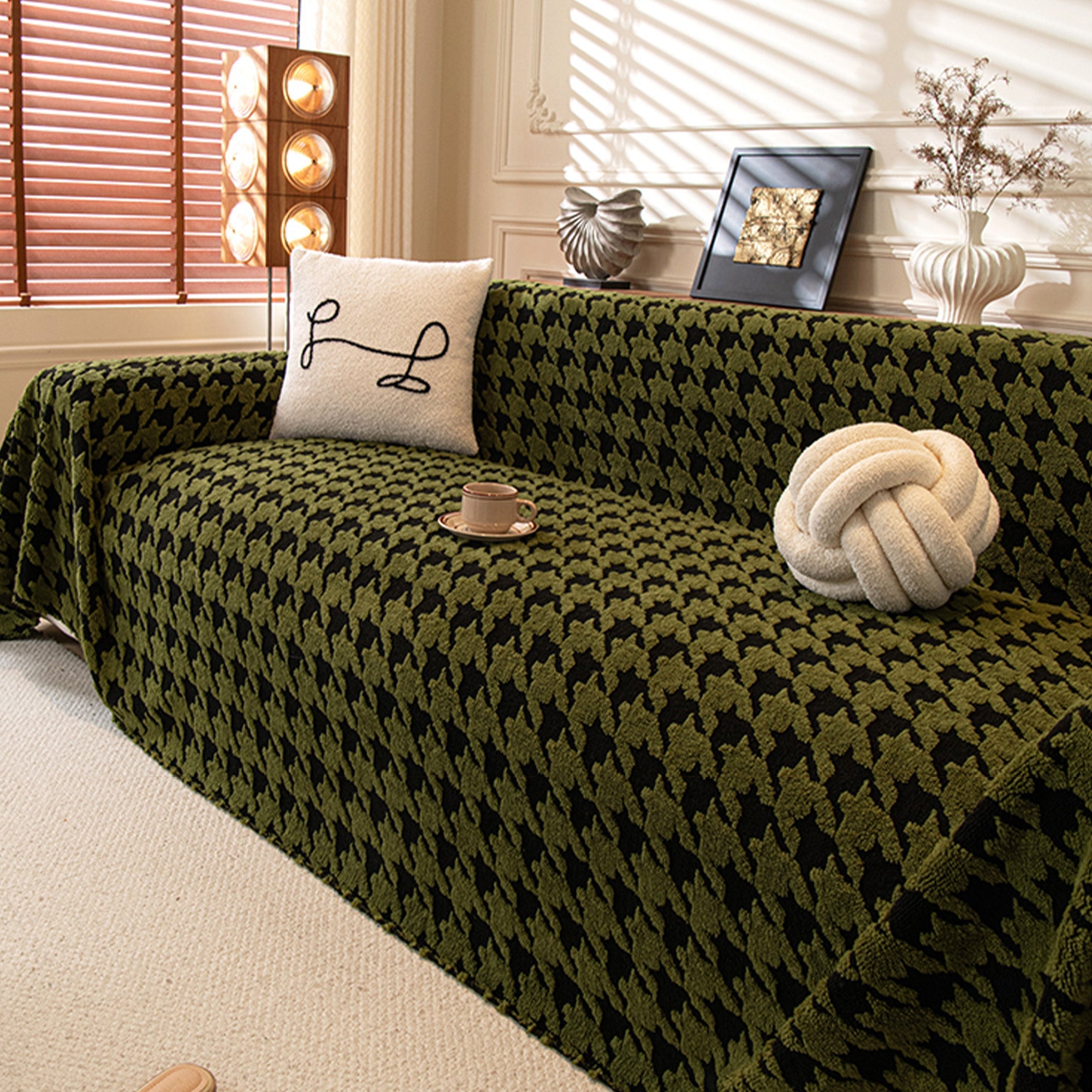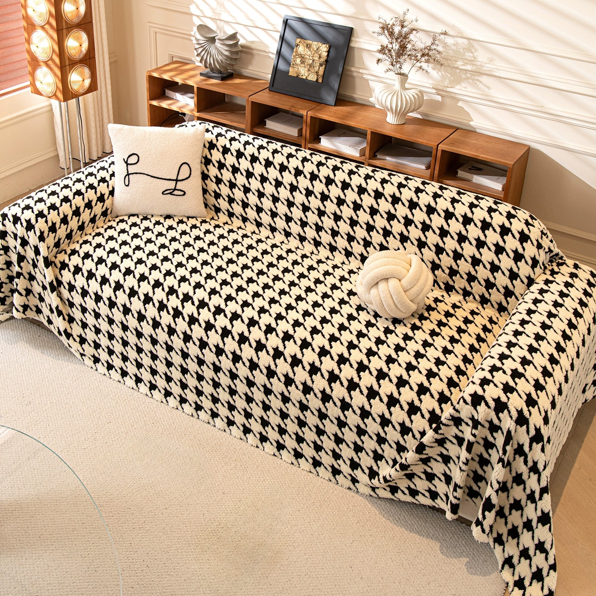 Acogedora funda de sofá de felpa con diseño de pata de gallo