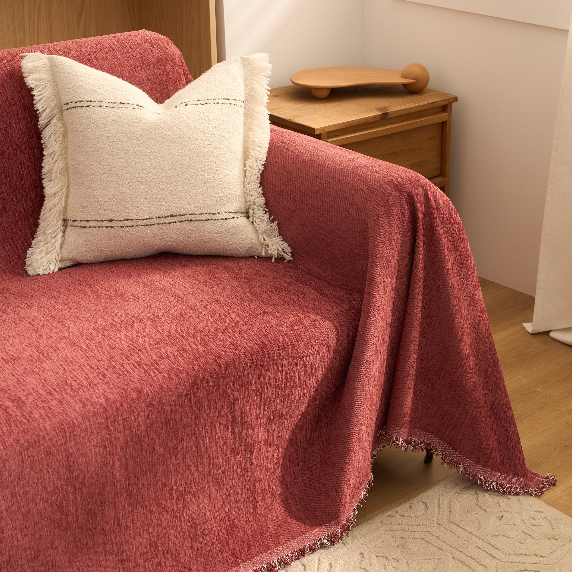 Funda de sofá minimalista premium neutra, suave, duradera y apta para mascotas: tejido de alta calidad para proteger tu sofá.