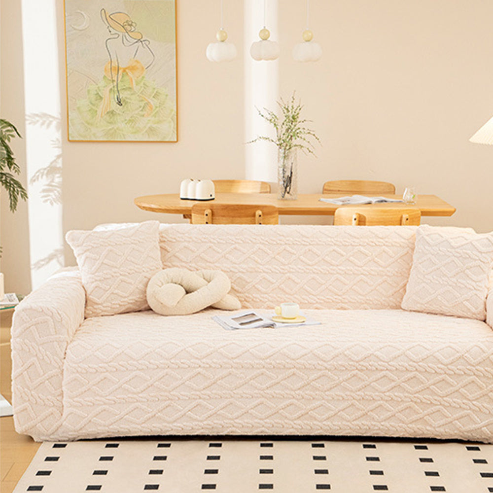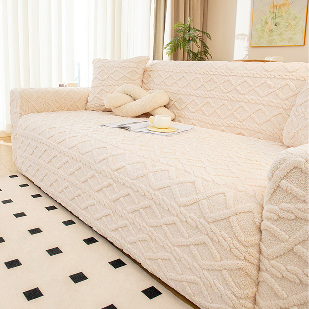 Funda de sofá minimalista premium neutra, suave, duradera y apta para mascotas: tejido de alta calidad para proteger tu sofá.