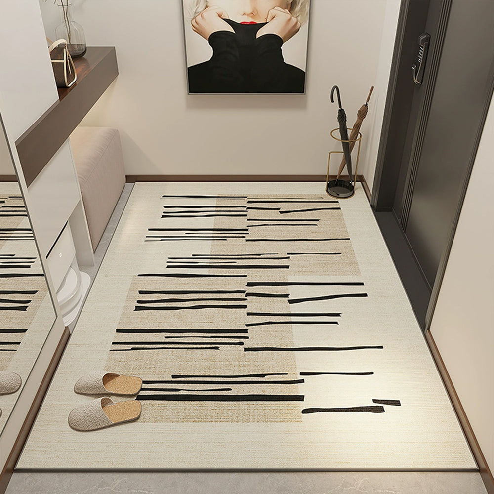 Mejora tu entrada con este moderno felpudo Brushstroke Gradient. El poliéster de pelo corto de alta densidad teje líneas limpias sobre un cálido fondo de arena, creando un aspecto elegante y minimalista que oculta la suciedad a la perfección. Su respaldo totalmente antideslizante lo mantiene firmemente en su lugar, mientras que la superficie resistente a las manchas protege los zapatos, los derrames y el tráfico de mascotas, por lo que es perfecta para pasillos, vestíbulos y apartamentos concurridos.
