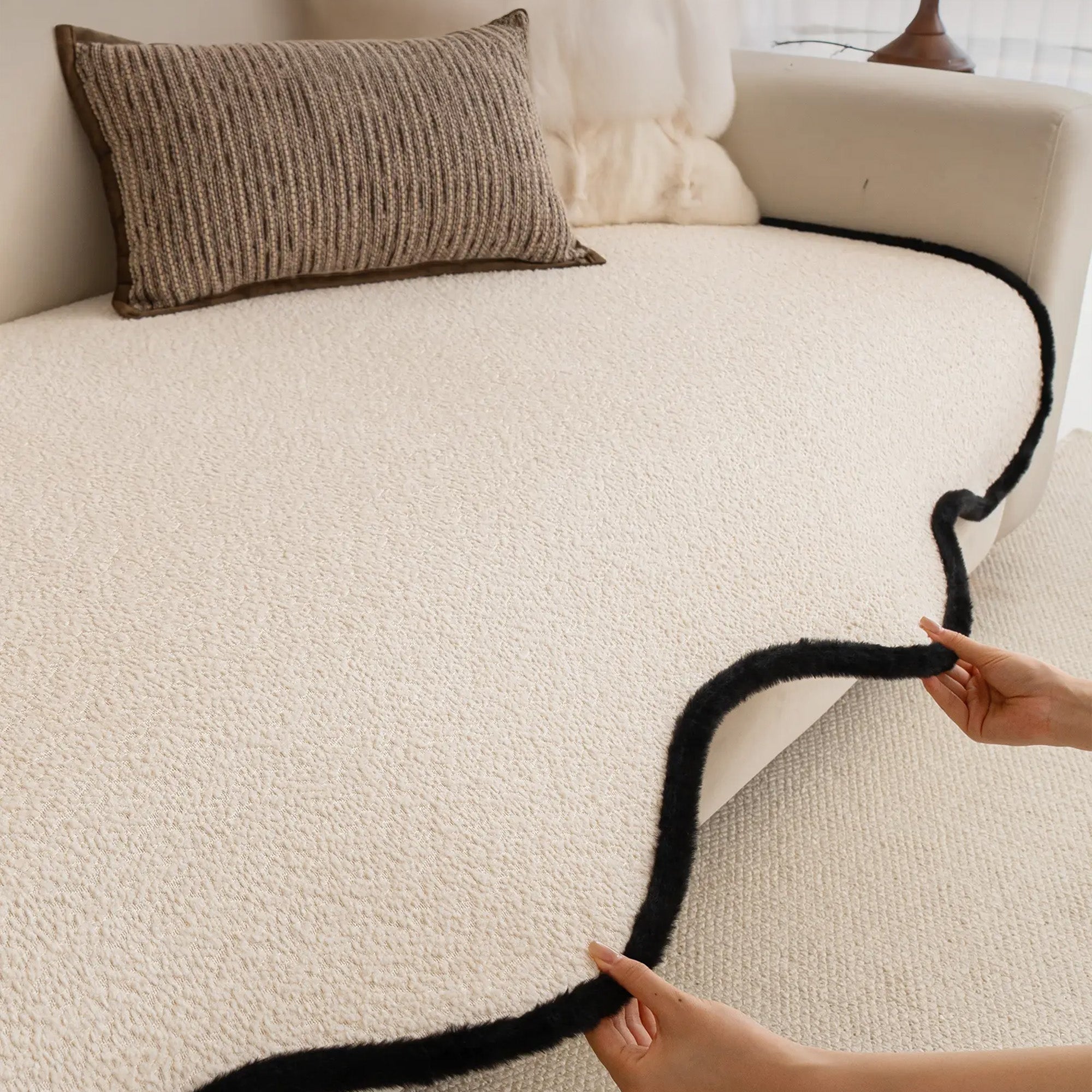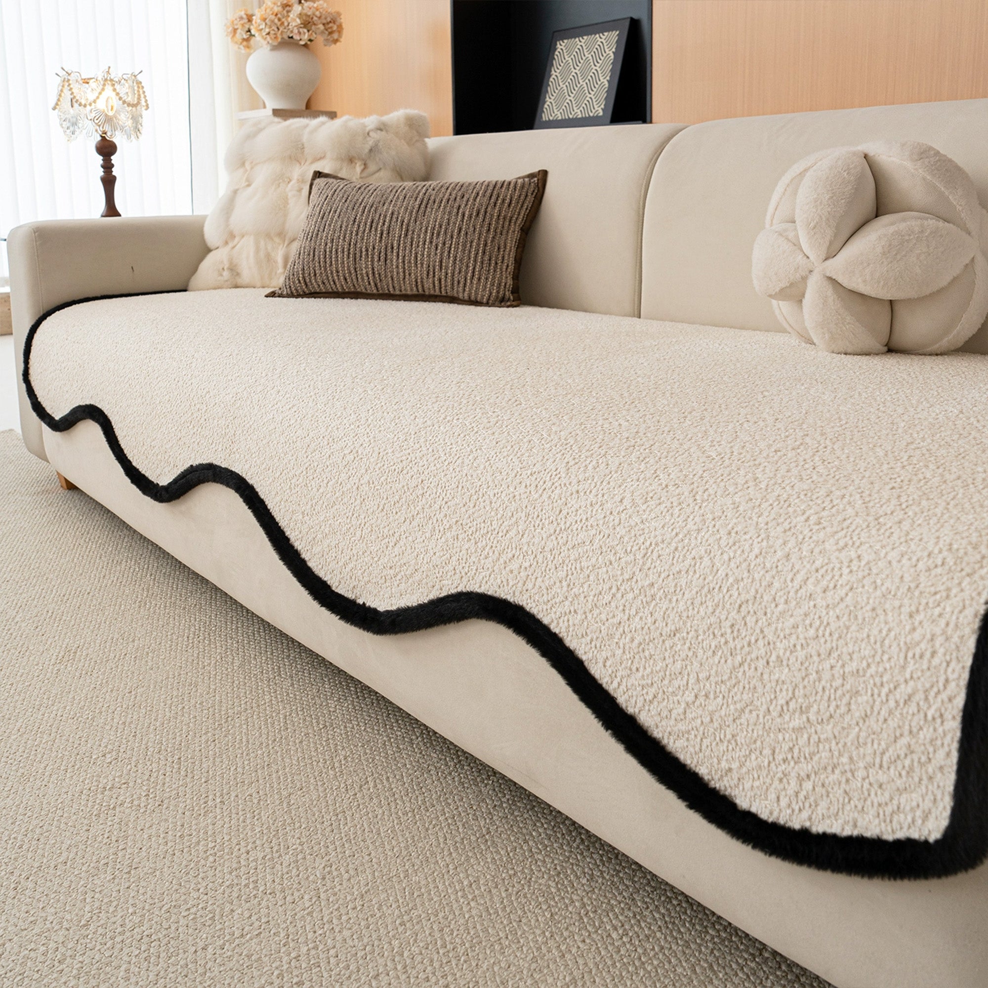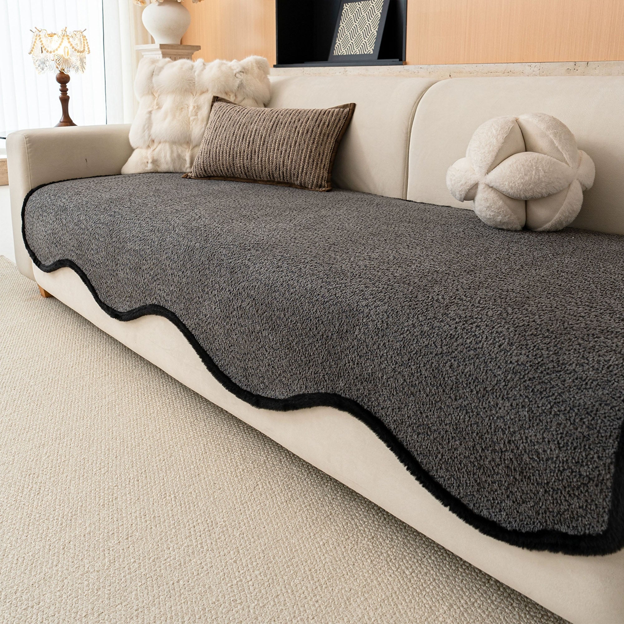 Elegante funda de sofá antideslizante de chenilla con ribete negro