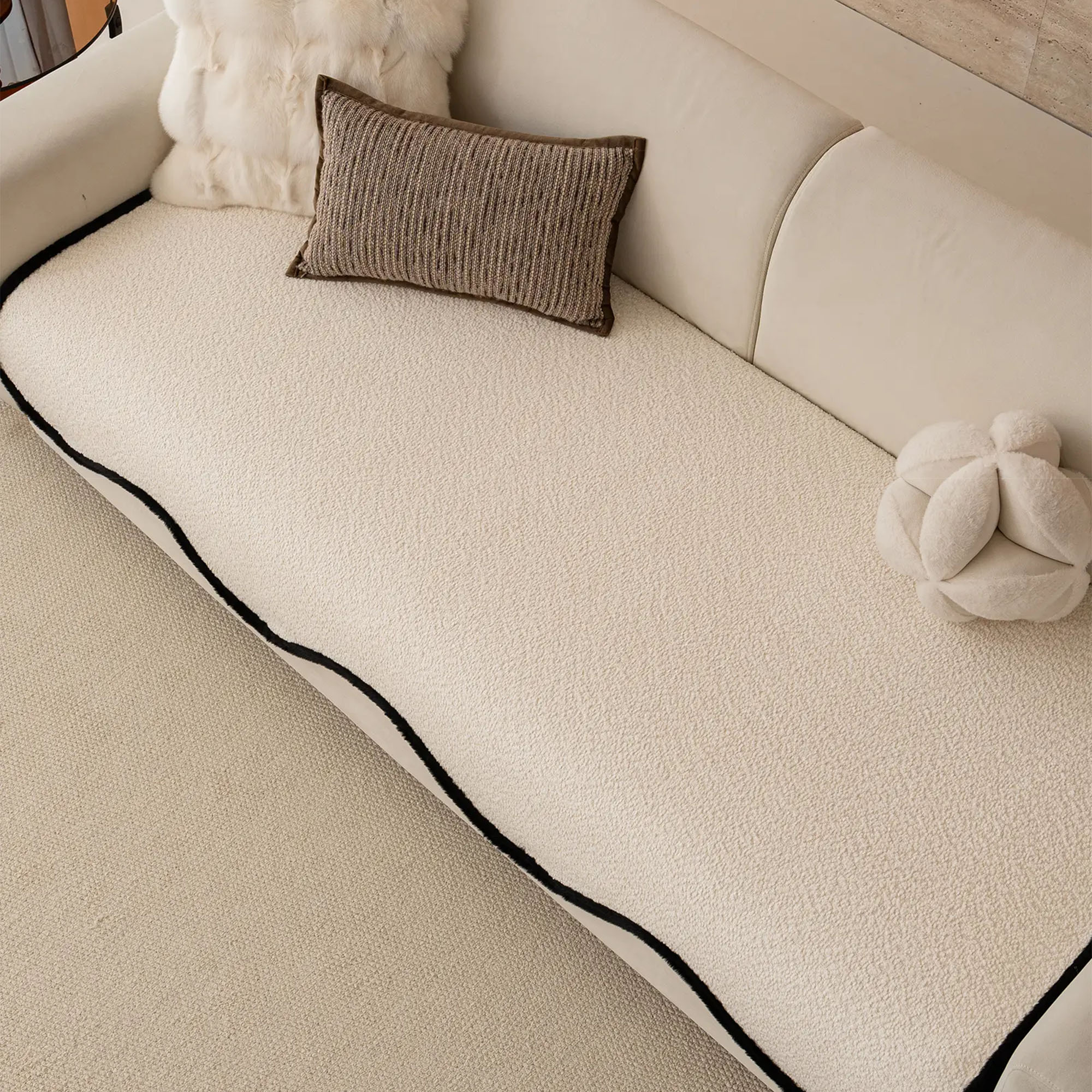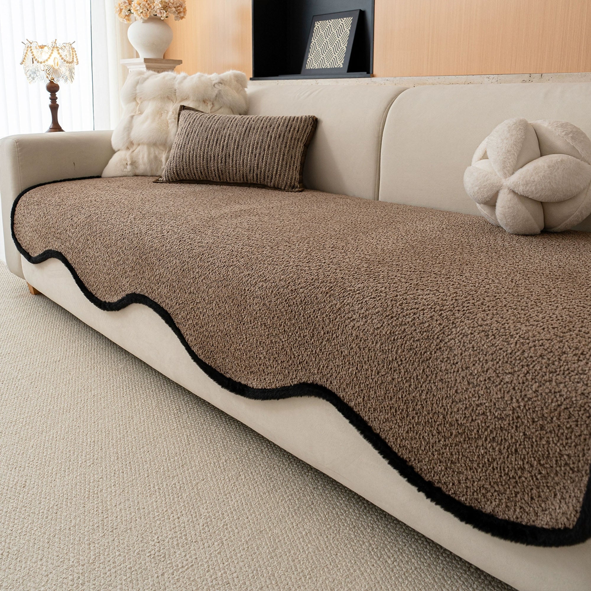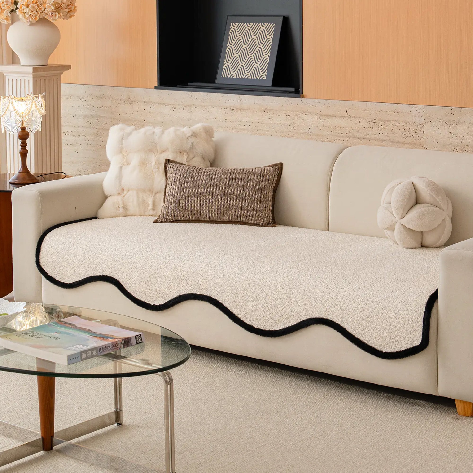 Elegante funda de sofá antideslizante de chenilla con ribete negro