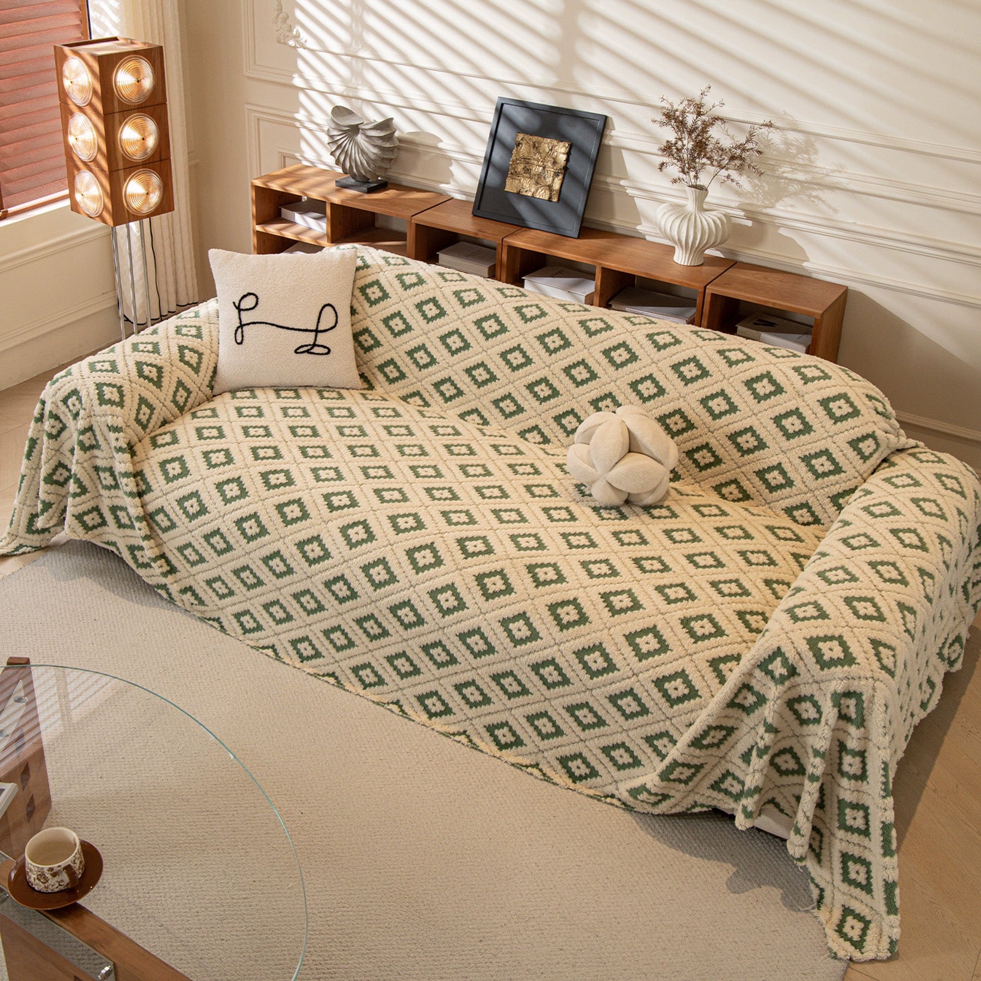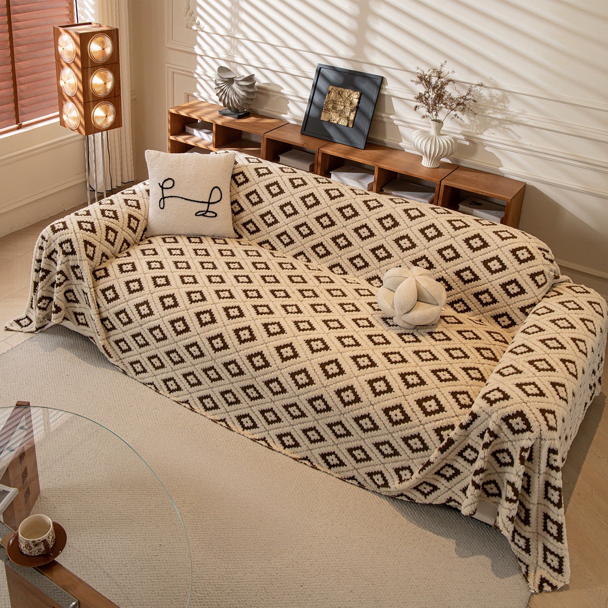 Elegante funda de sofá de felpa con diseño de diamantes resistente a los arañazos