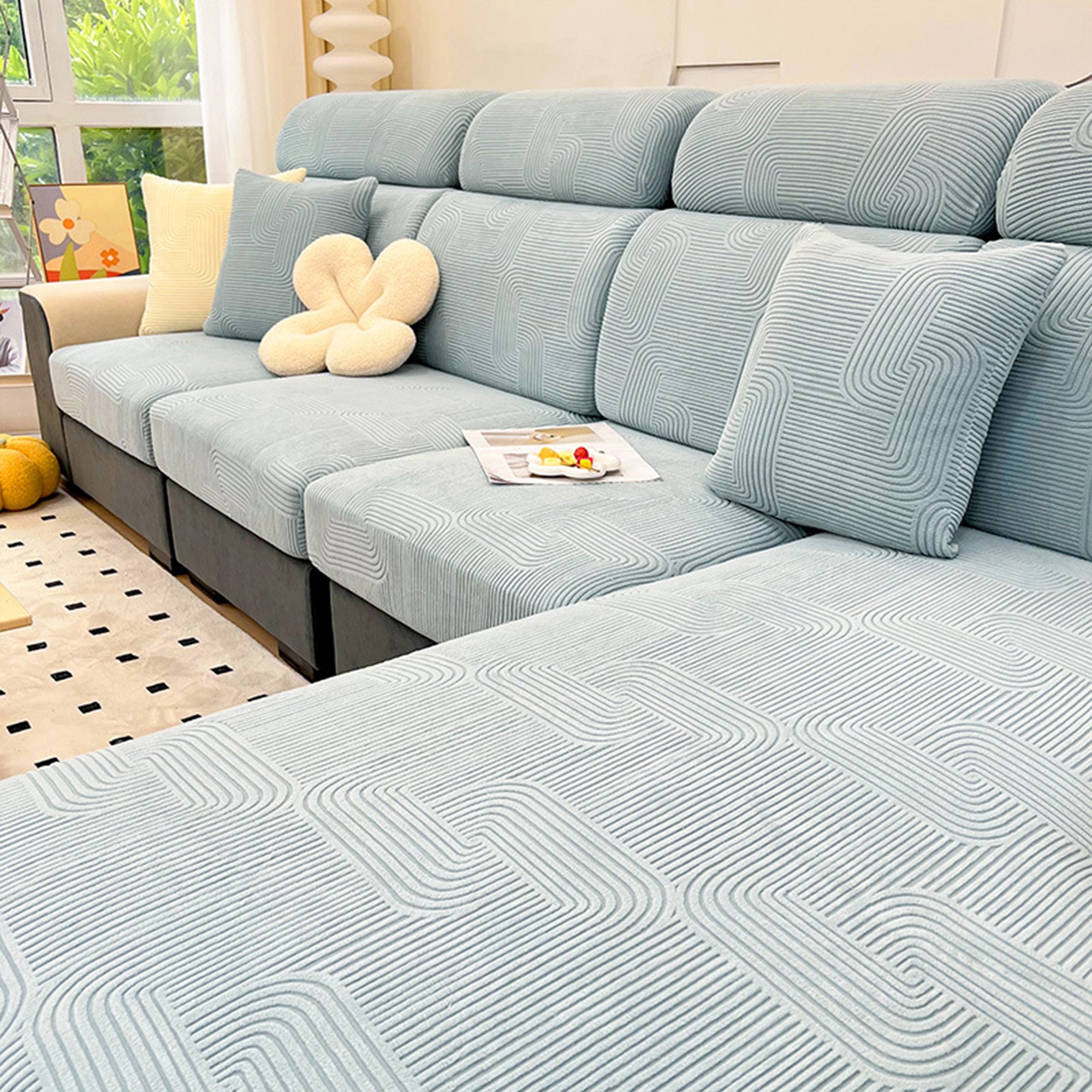 Elegante funda de sofá elástica de jacquard lineal: envoltura completa y protección antideslizante.