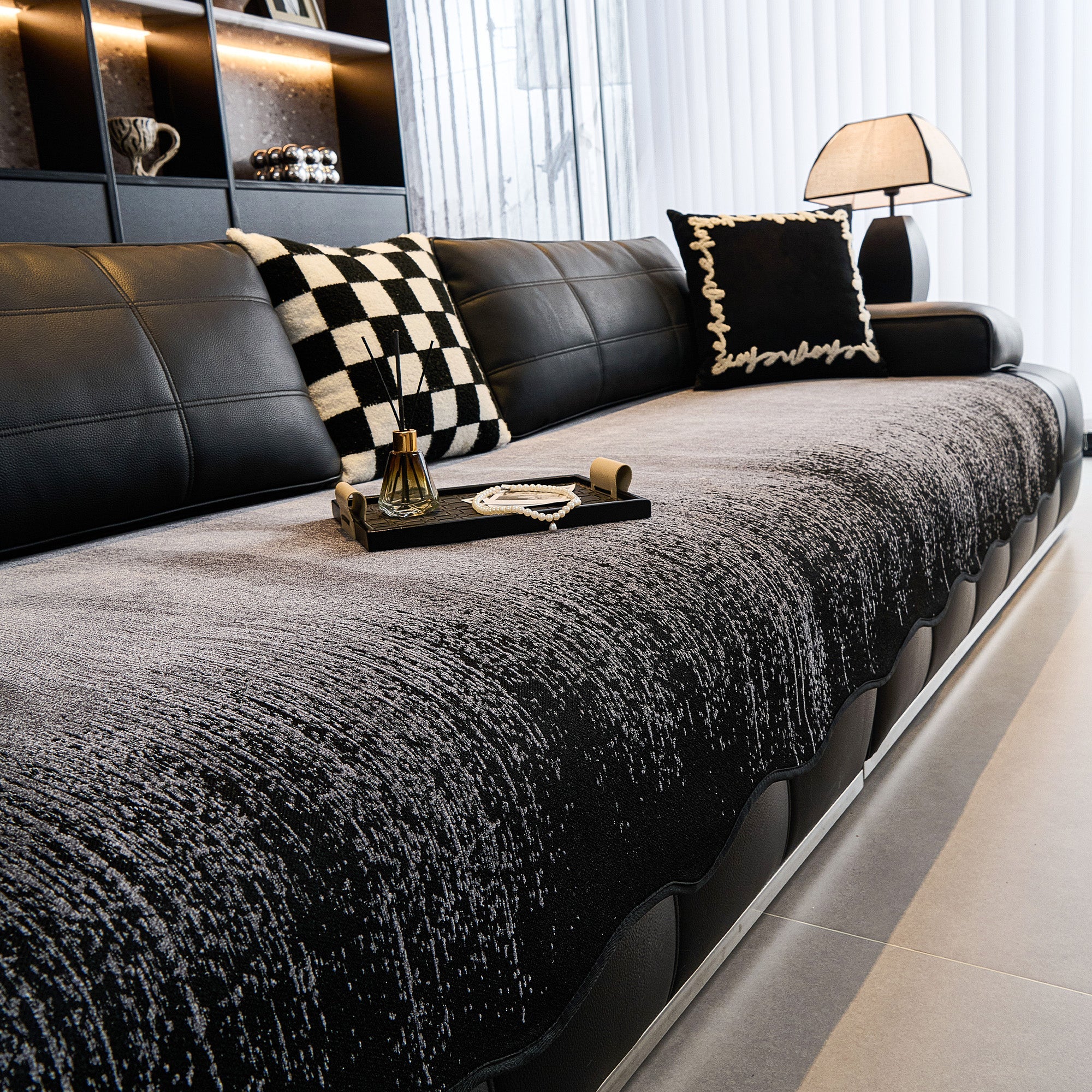 •El respaldo antideslizante y los bordes pesados mantienen la funda firmemente en su lugar, incluso en sofás con formas irregulares.