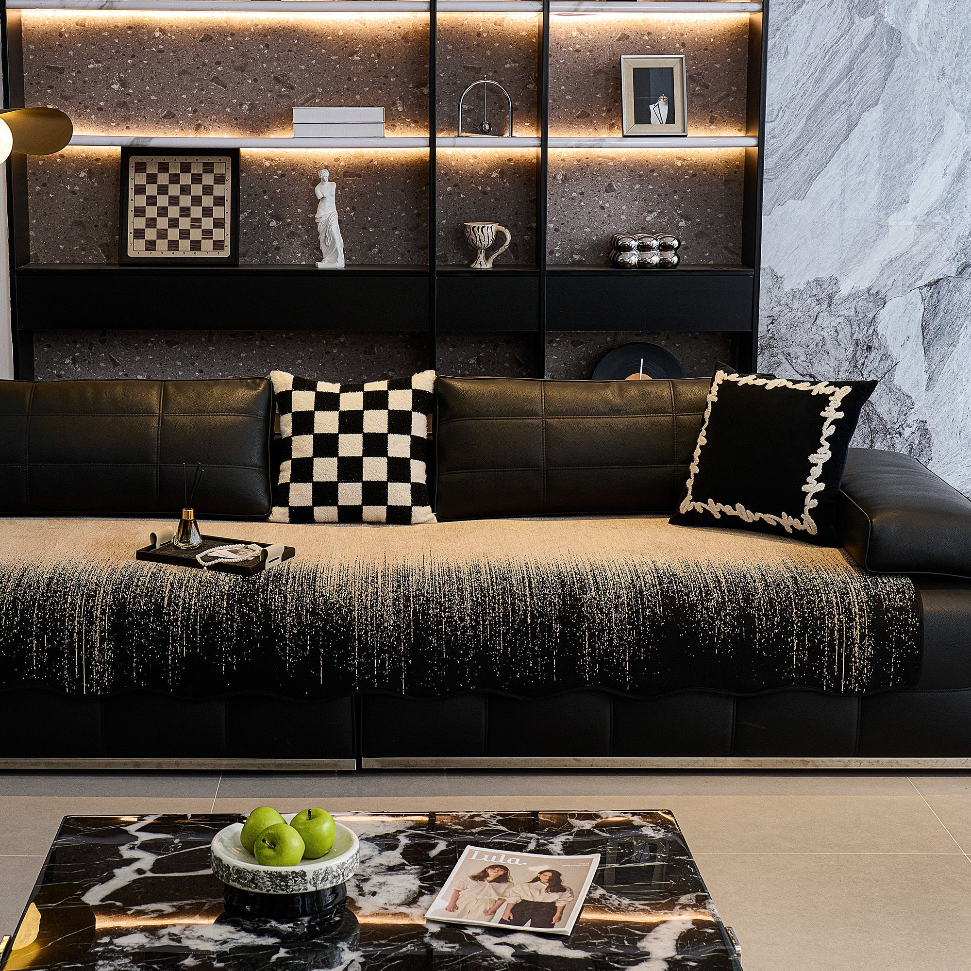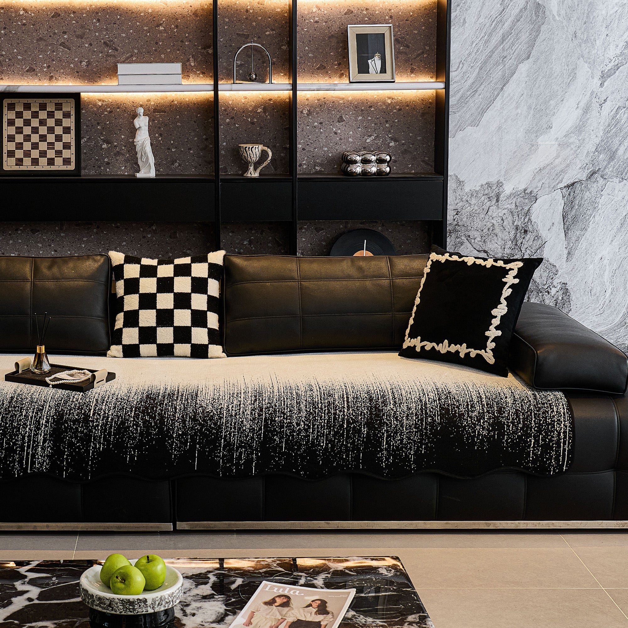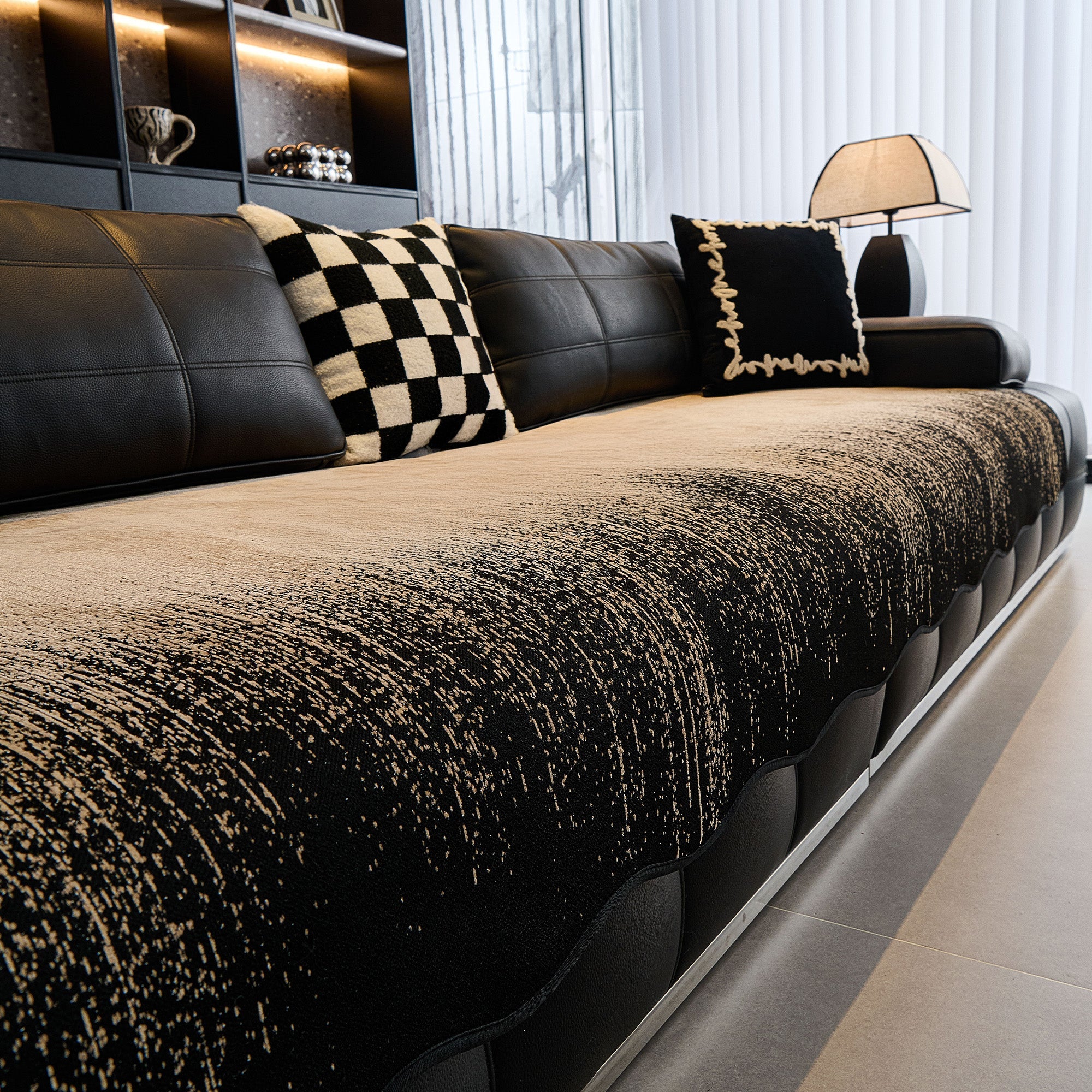Mejore su espacio vital con la textura refinada y el arte moderno de nuestra funda de sofá antideslizante Luxe Ombré Chenille.