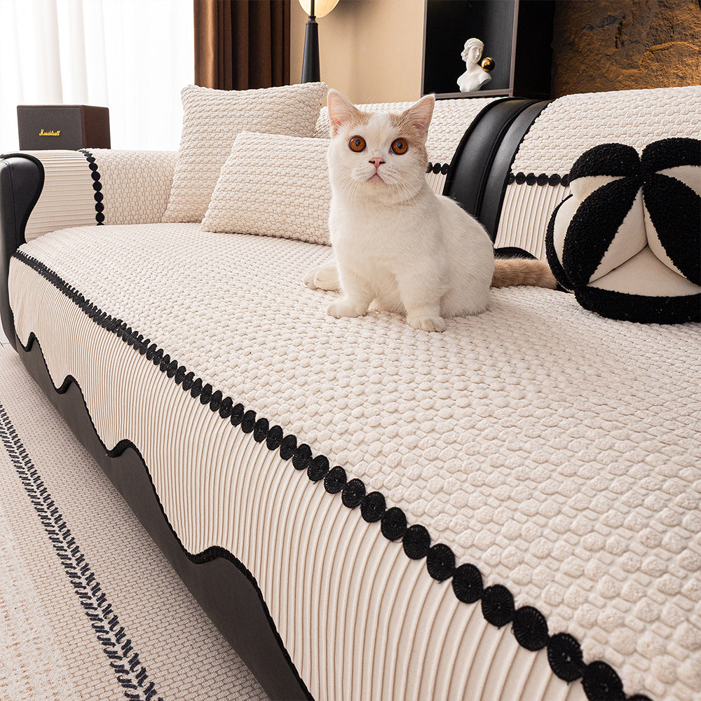 Funda de sofá minimalista premium neutra, suave, duradera y apta para mascotas: tejido de alta calidad para proteger tu sofá.