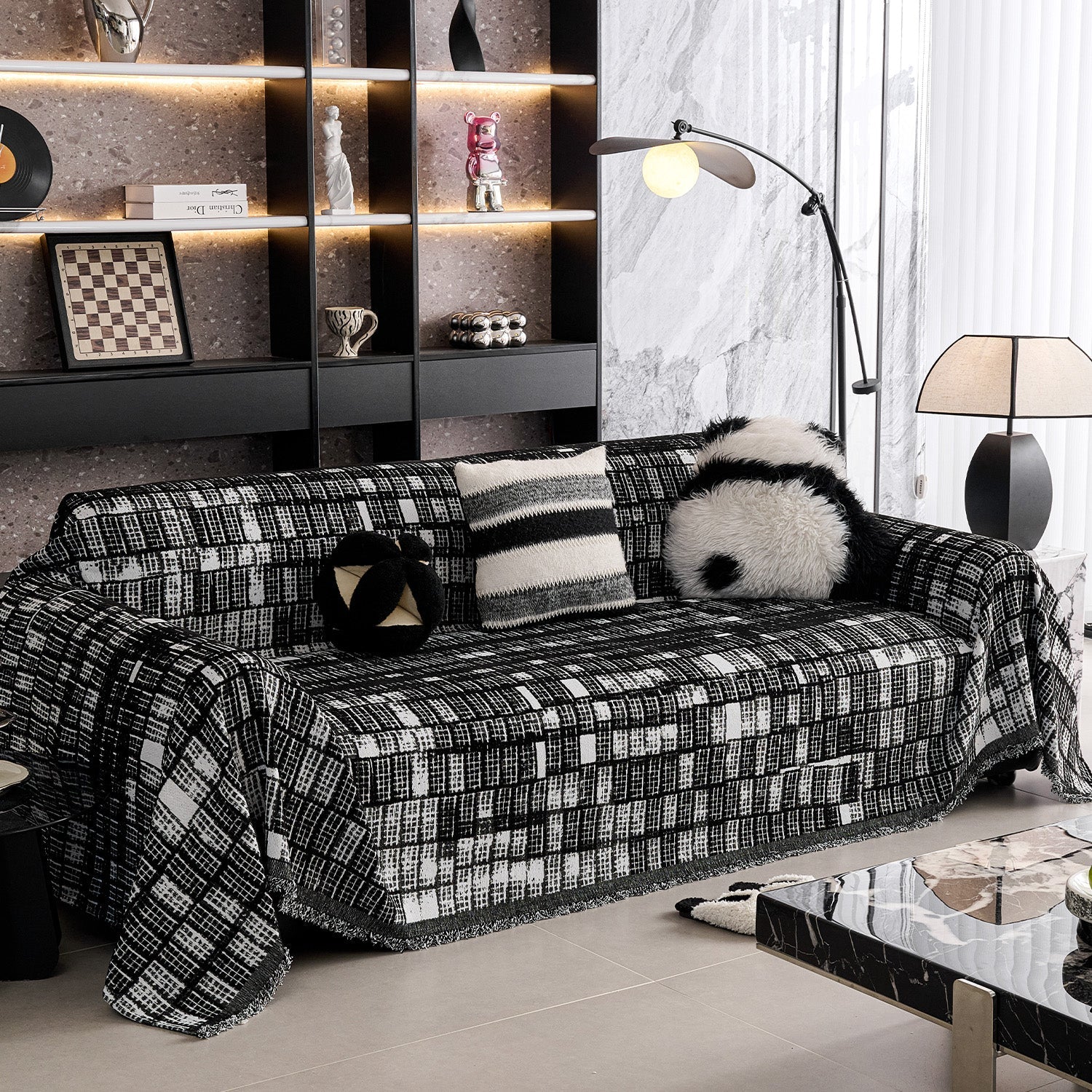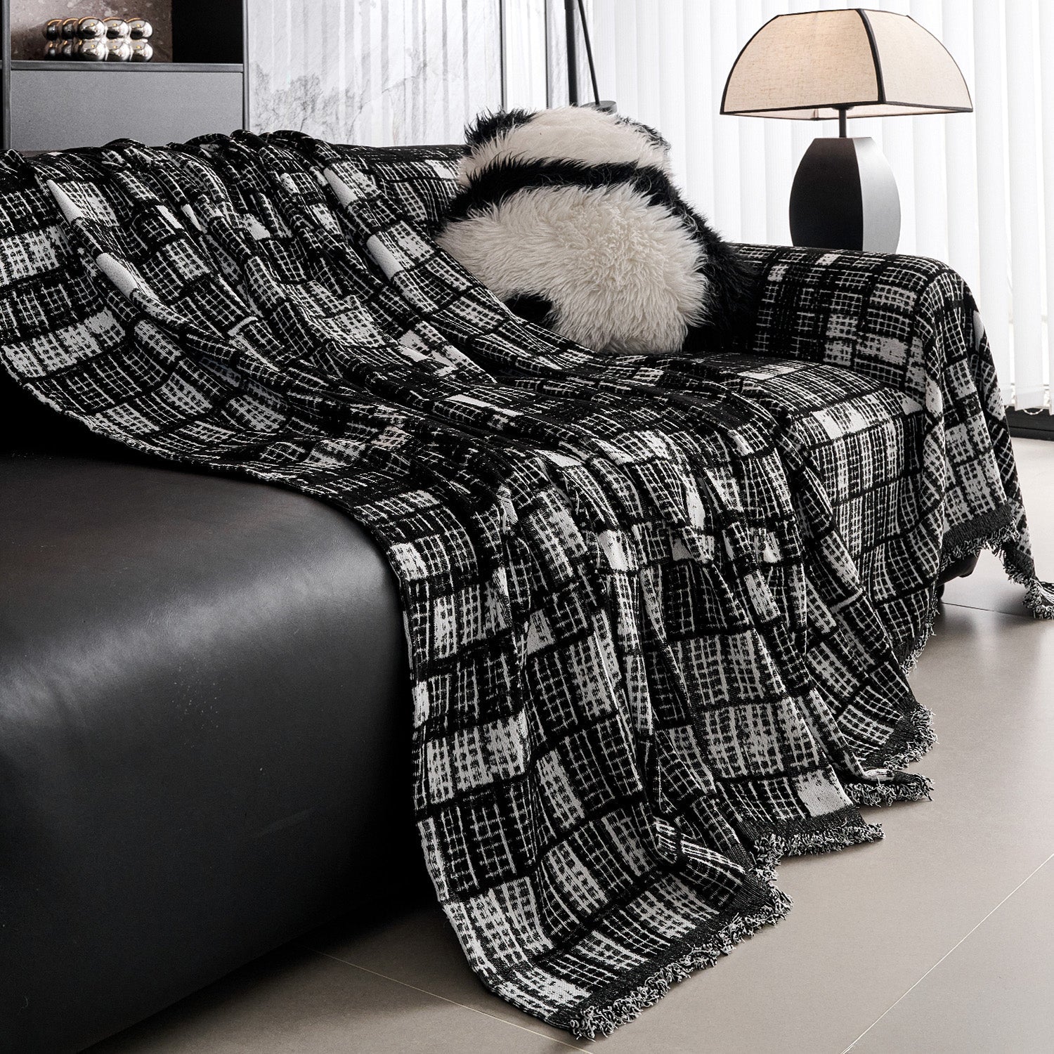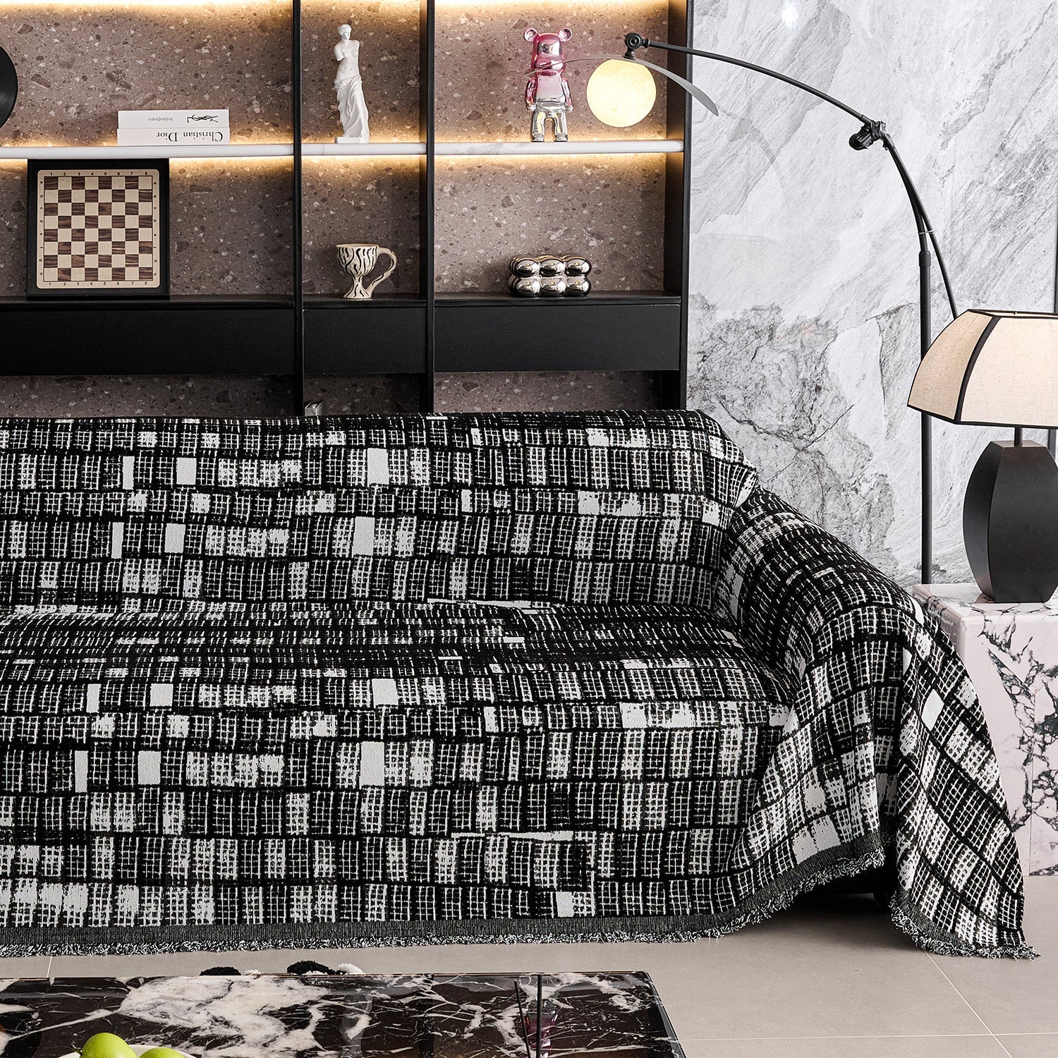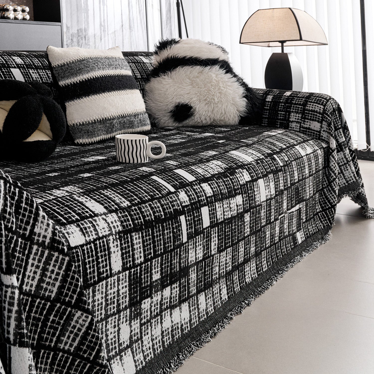Aporta sofisticación moderna y confort duradero a tu hogar con nuestra funda de sofá Modern Grid Chenille resistente a los arañazos. Diseñada con un llamativo patrón de cuadrícula en blanco y negro, esta funda añade textura y estilo contemporáneo a cualquier espacio.