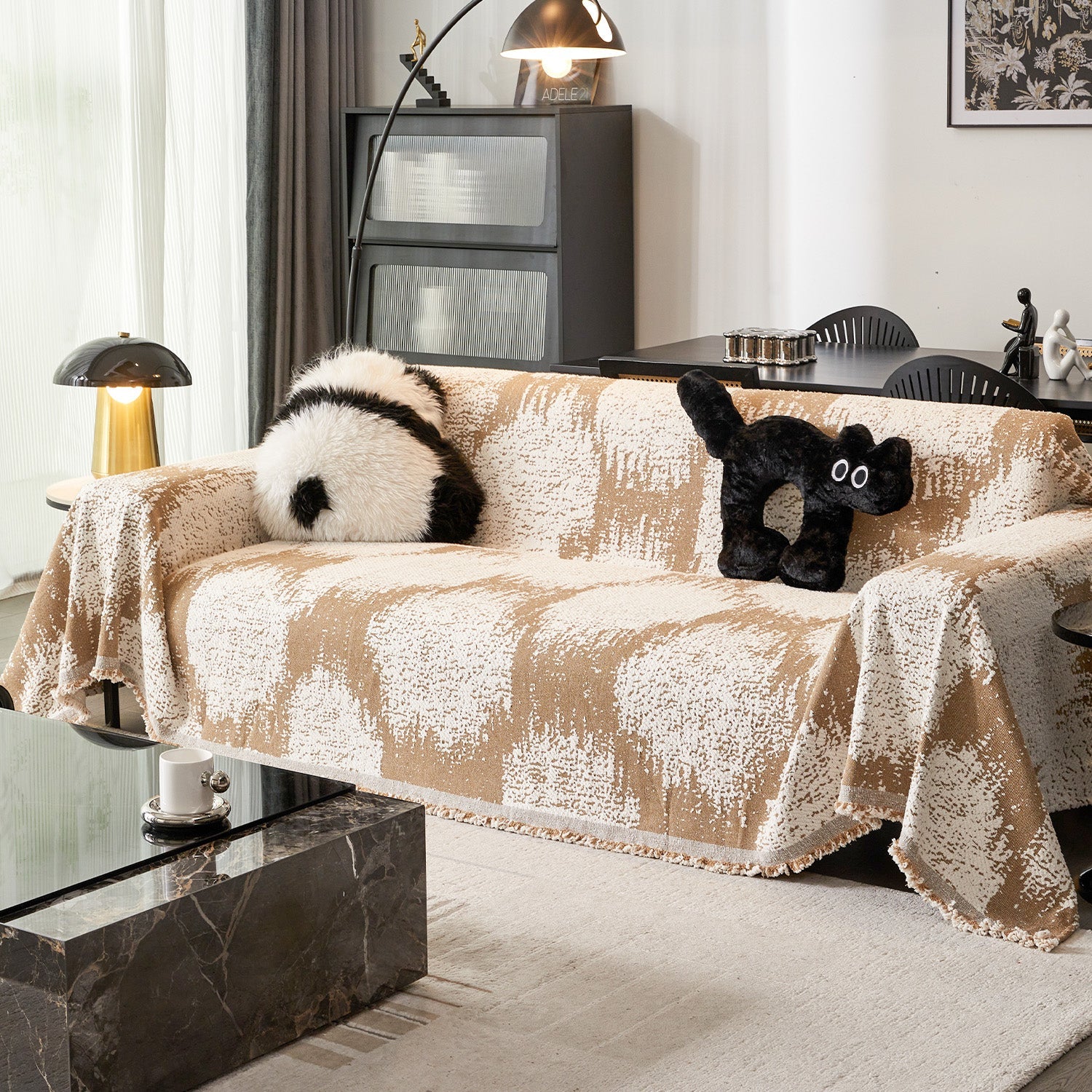 Funda de sofá minimalista vintage multiusos, suave y de felpa, apta para mascotas