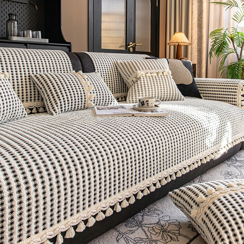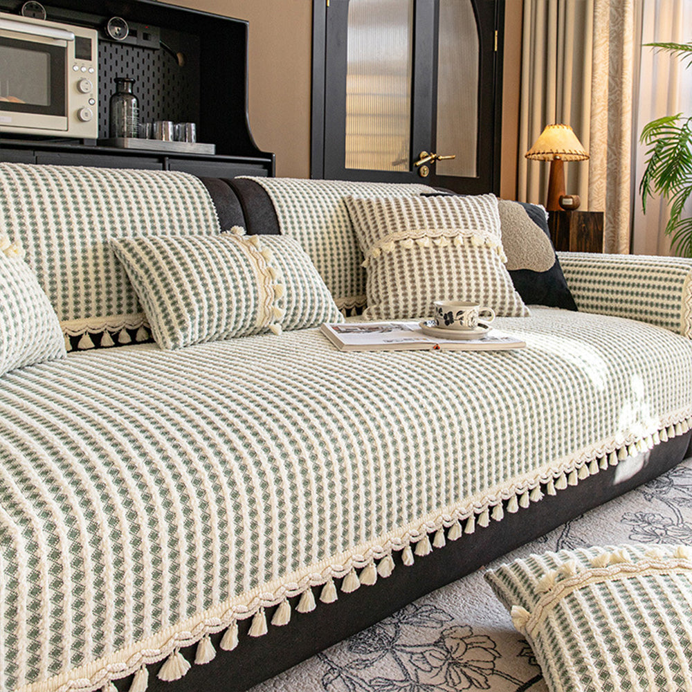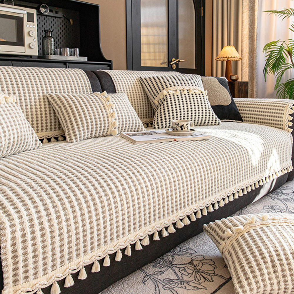 Funda de sofá antideslizante de chenilla con borlas y rejilla refinada