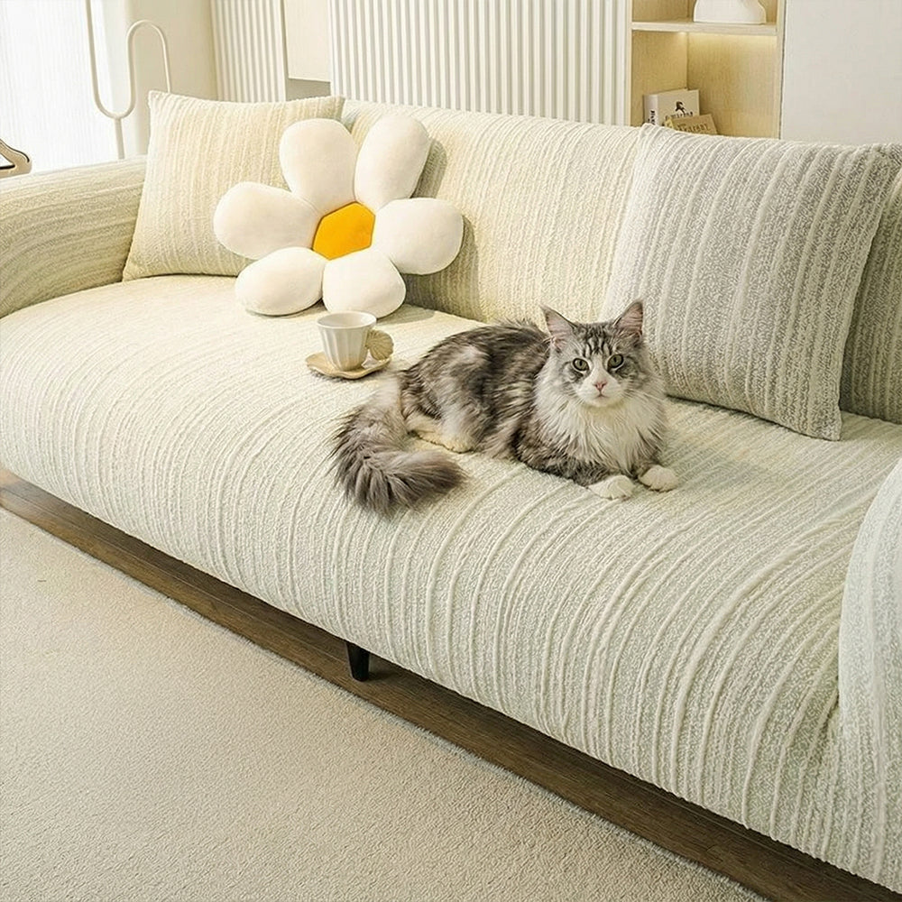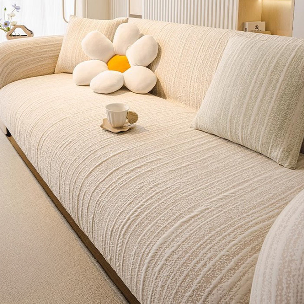 Funda de sofá minimalista premium neutra, suave, duradera y apta para mascotas: tejido de alta calidad para proteger tu sofá.