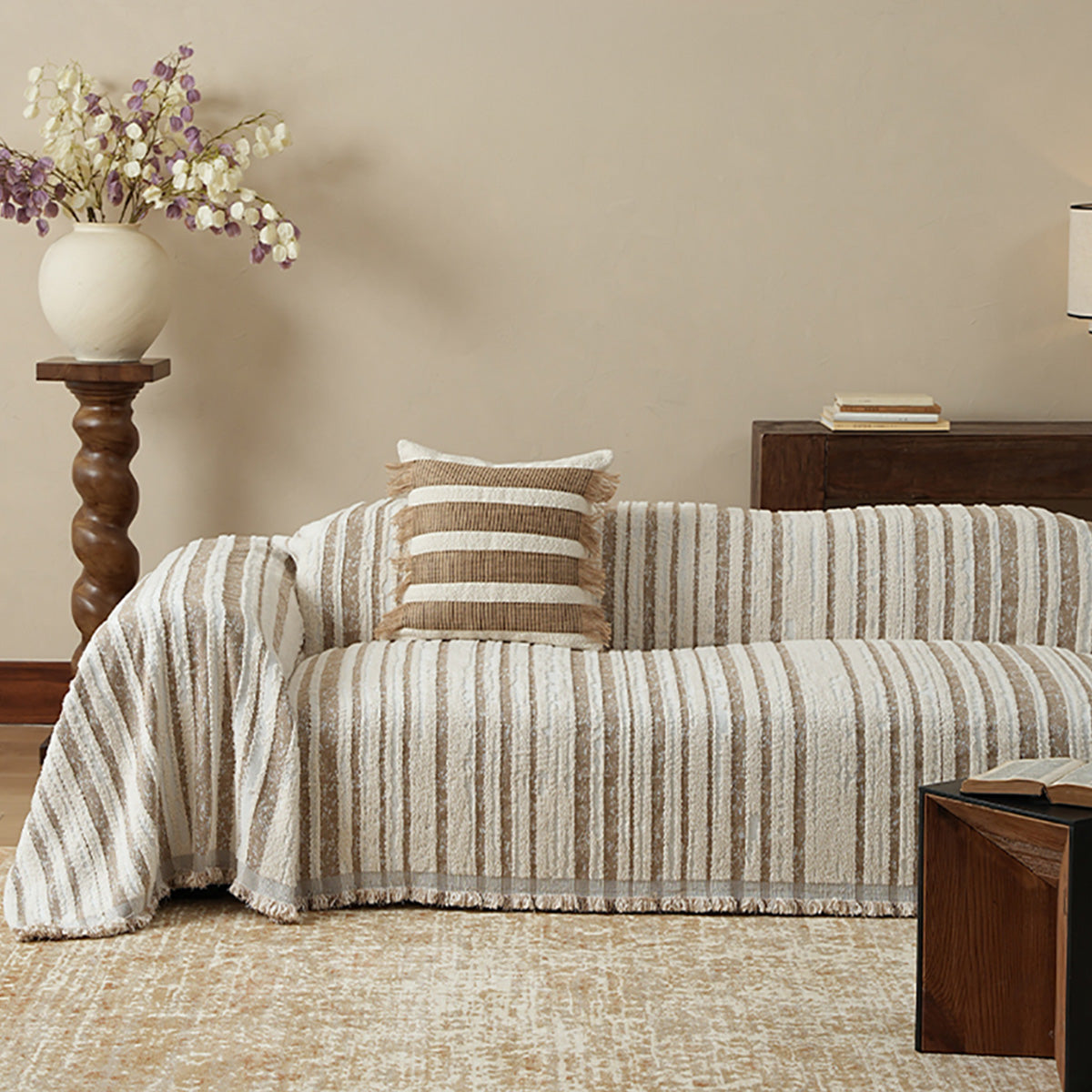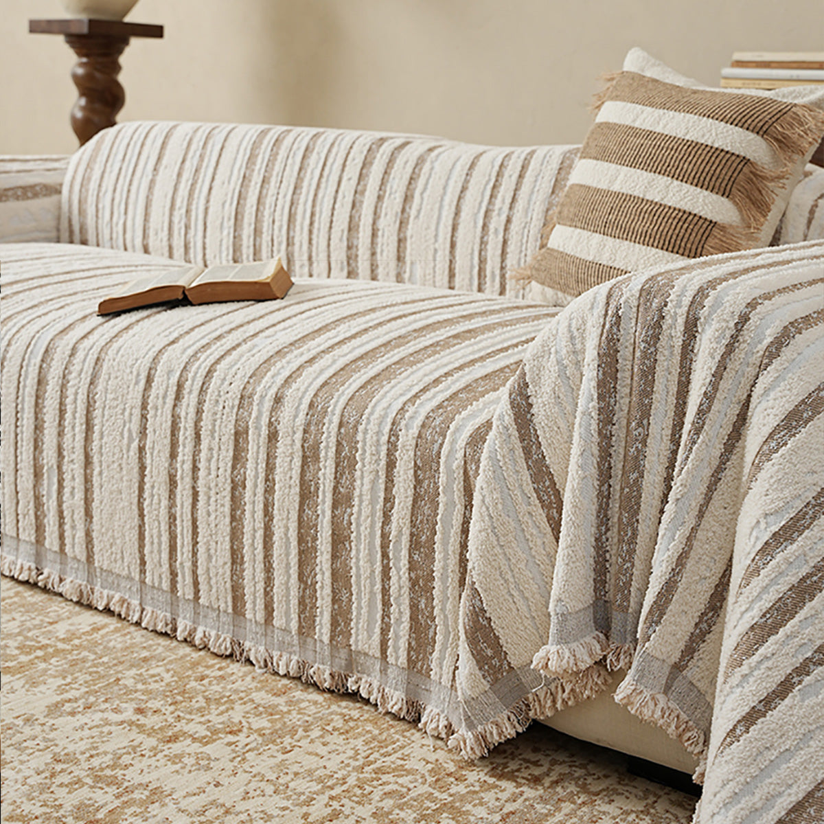 Funda de sofá minimalista premium neutra, suave, duradera y apta para mascotas: tejido de alta calidad para proteger tu sofá.