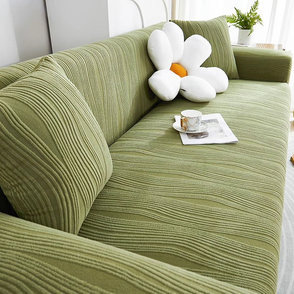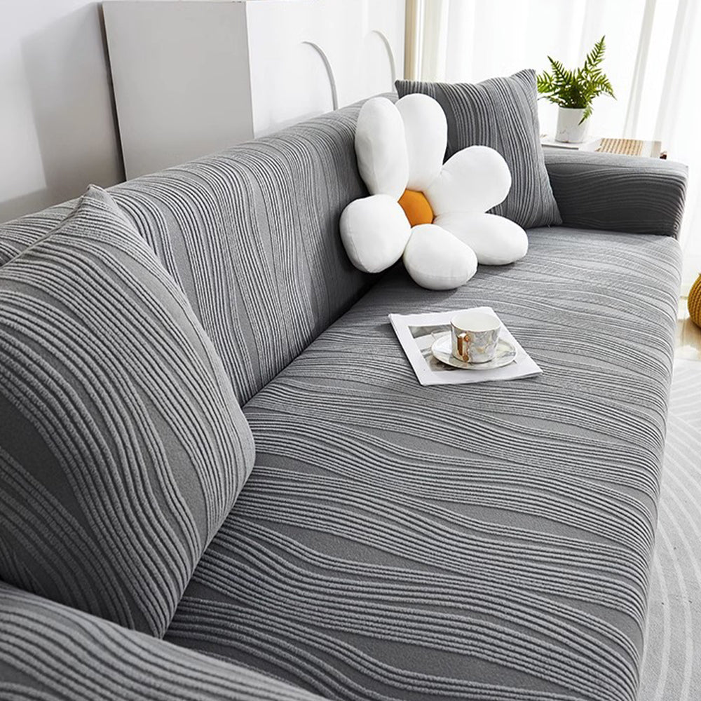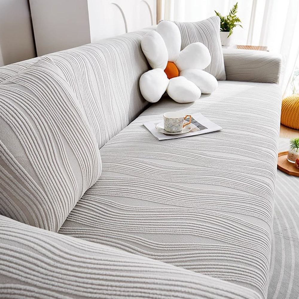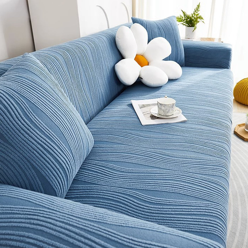 Refresque y proteja su sofá con la funda elástica de terciopelo WavyJacquard: una funda de una sola pieza que envuelve completamente su sofá, hecha de suave terciopelo jacquard con alta elasticidad para una apariencia impecable y sin arrugas.