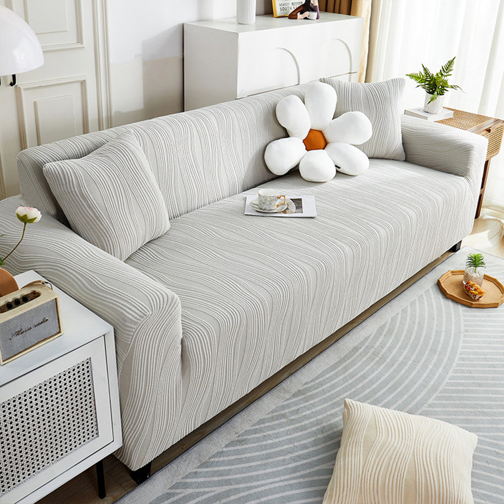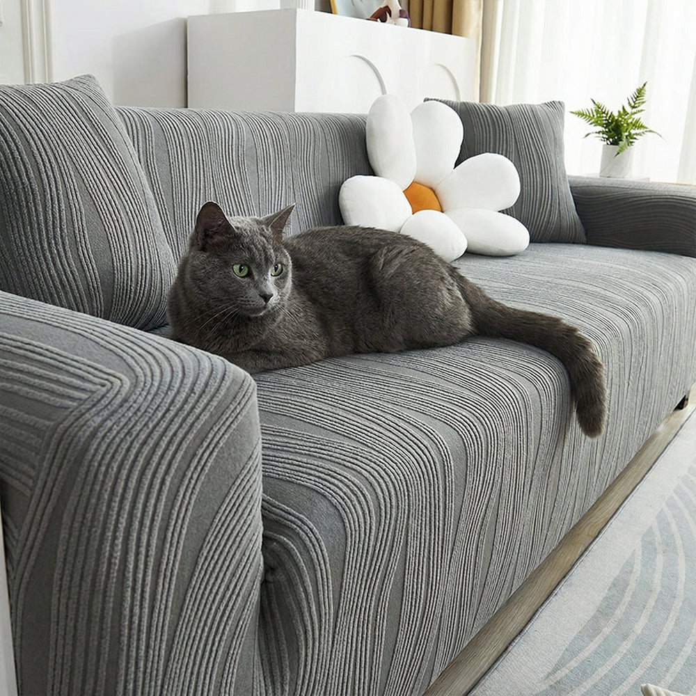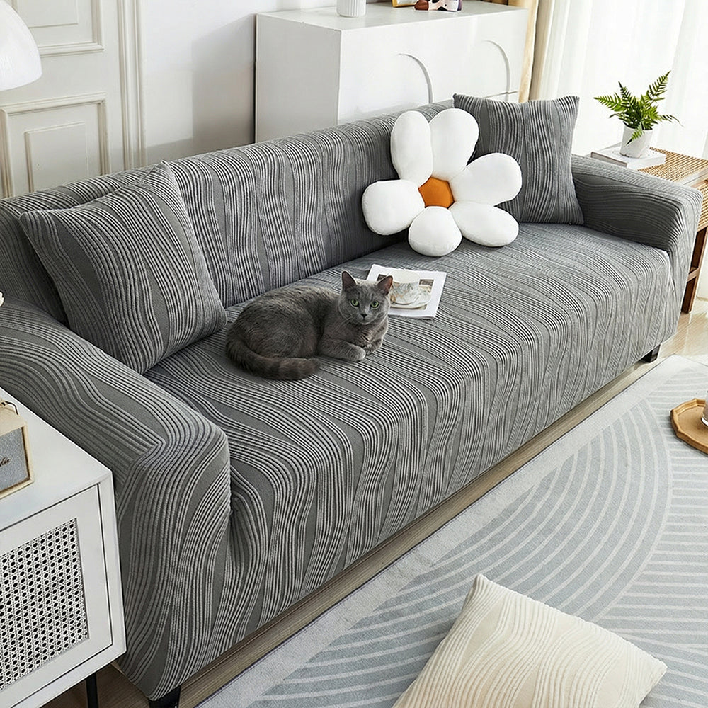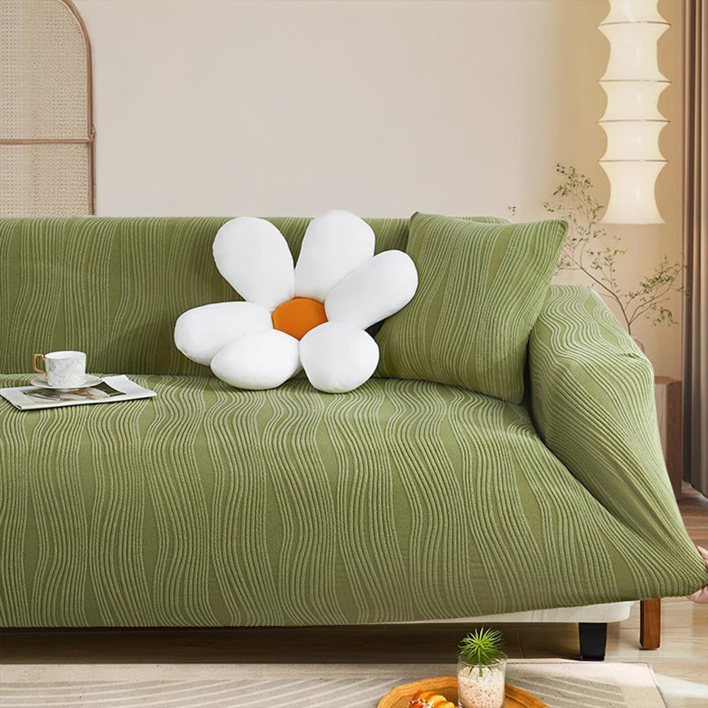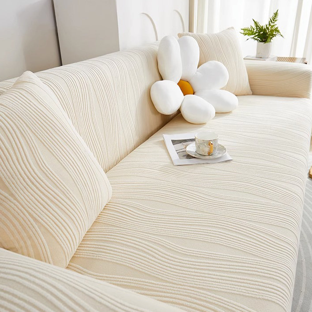 Refresque y proteja su sofá con la funda elástica de terciopelo WavyJacquard: una funda de una sola pieza que envuelve completamente su sofá, hecha de suave terciopelo jacquard con alta elasticidad para una apariencia impecable y sin arrugas.