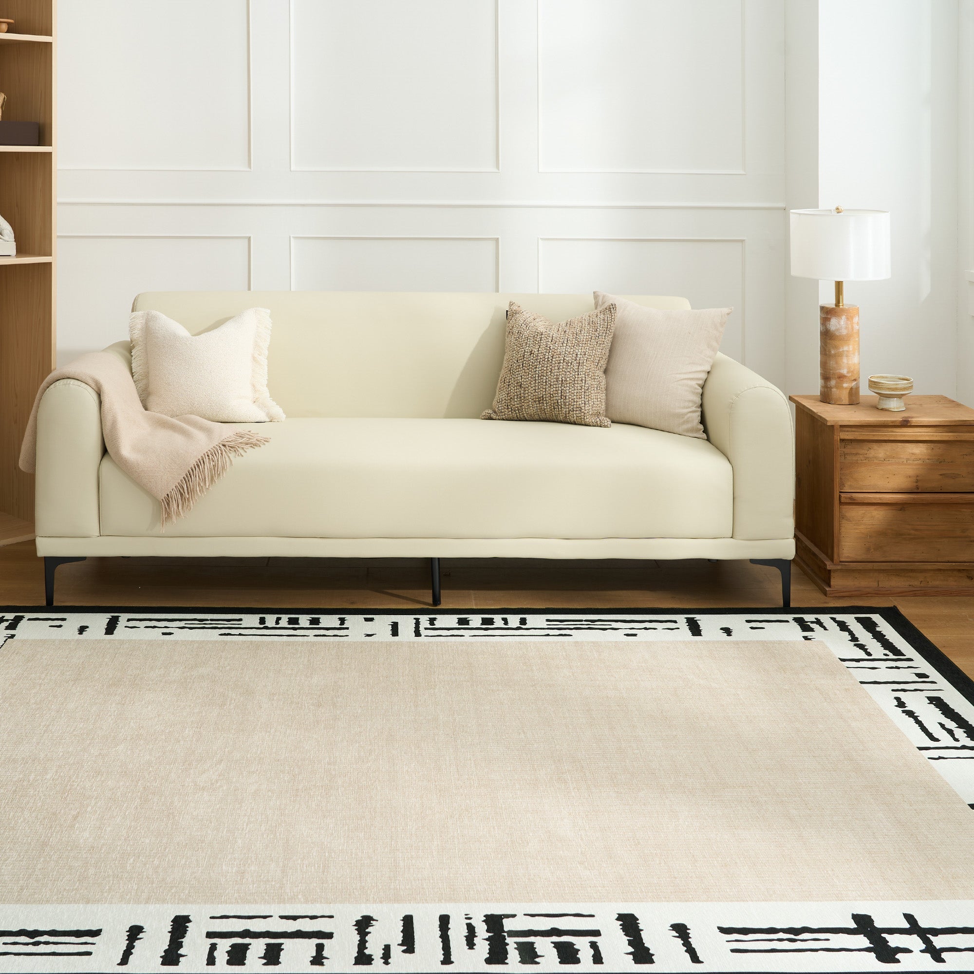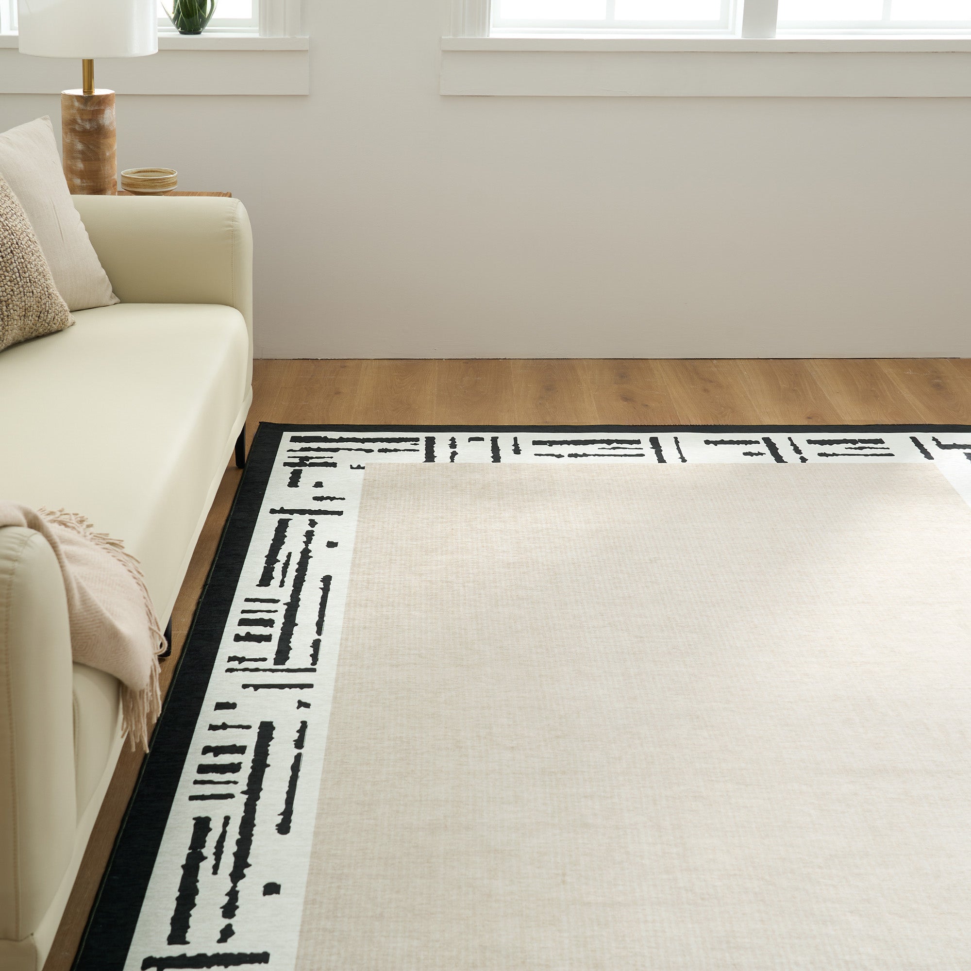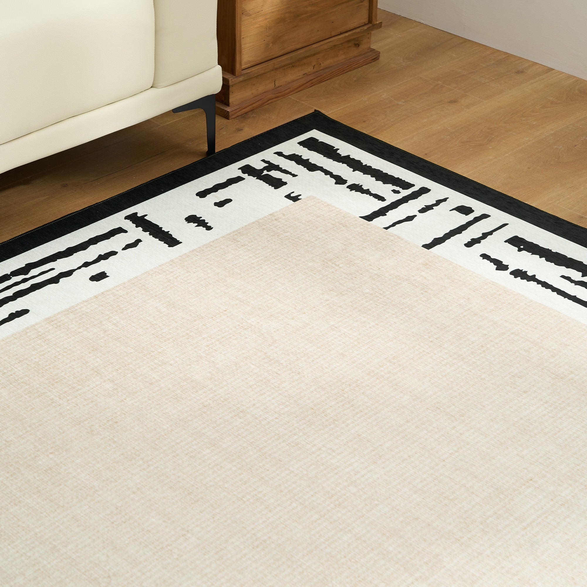 Alfombra moderna abstracta con borde neutro, lavable y fácil de limpiar, duradera, a prueba de derrames, apta para mascotas, antideslizante, para sala de estar.