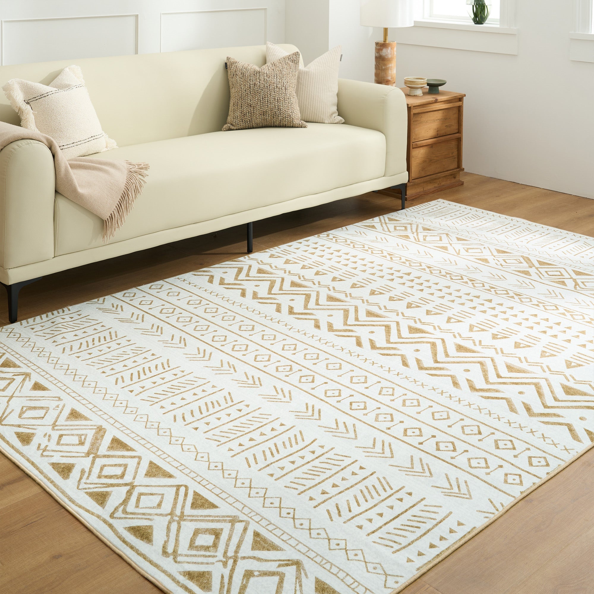 Alfombra lavable de fácil limpieza, moderna, con diseño tribal desértico, duradera, a prueba de derrames, apta para mascotas, con almohadilla antideslizante para sala de estar.
