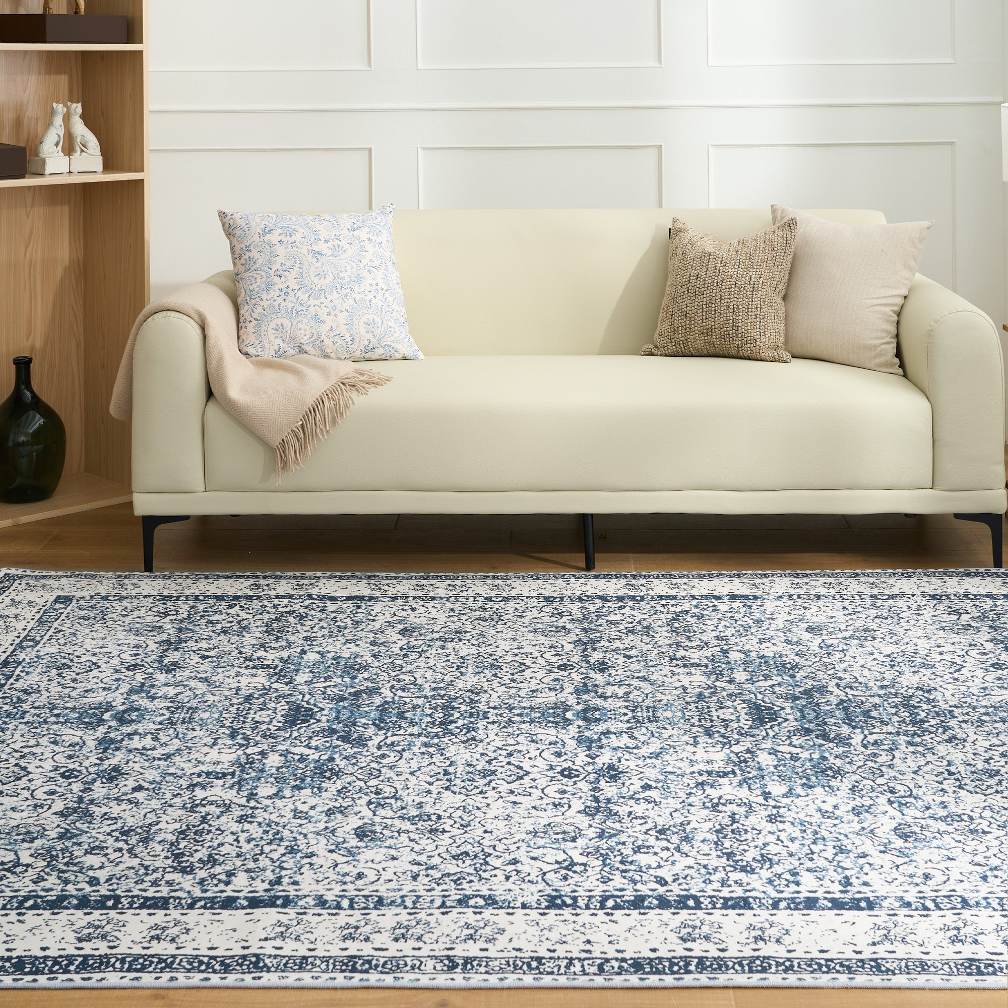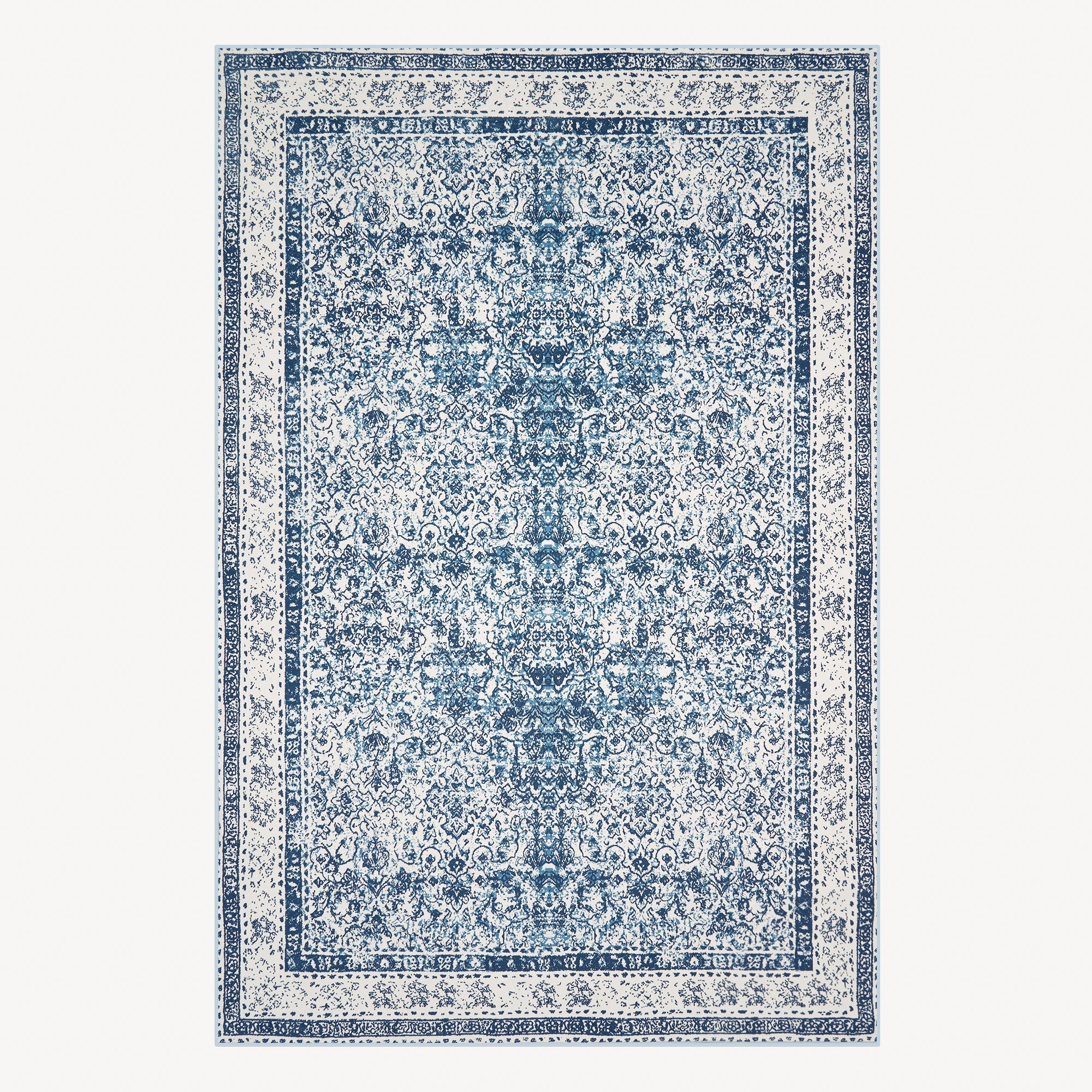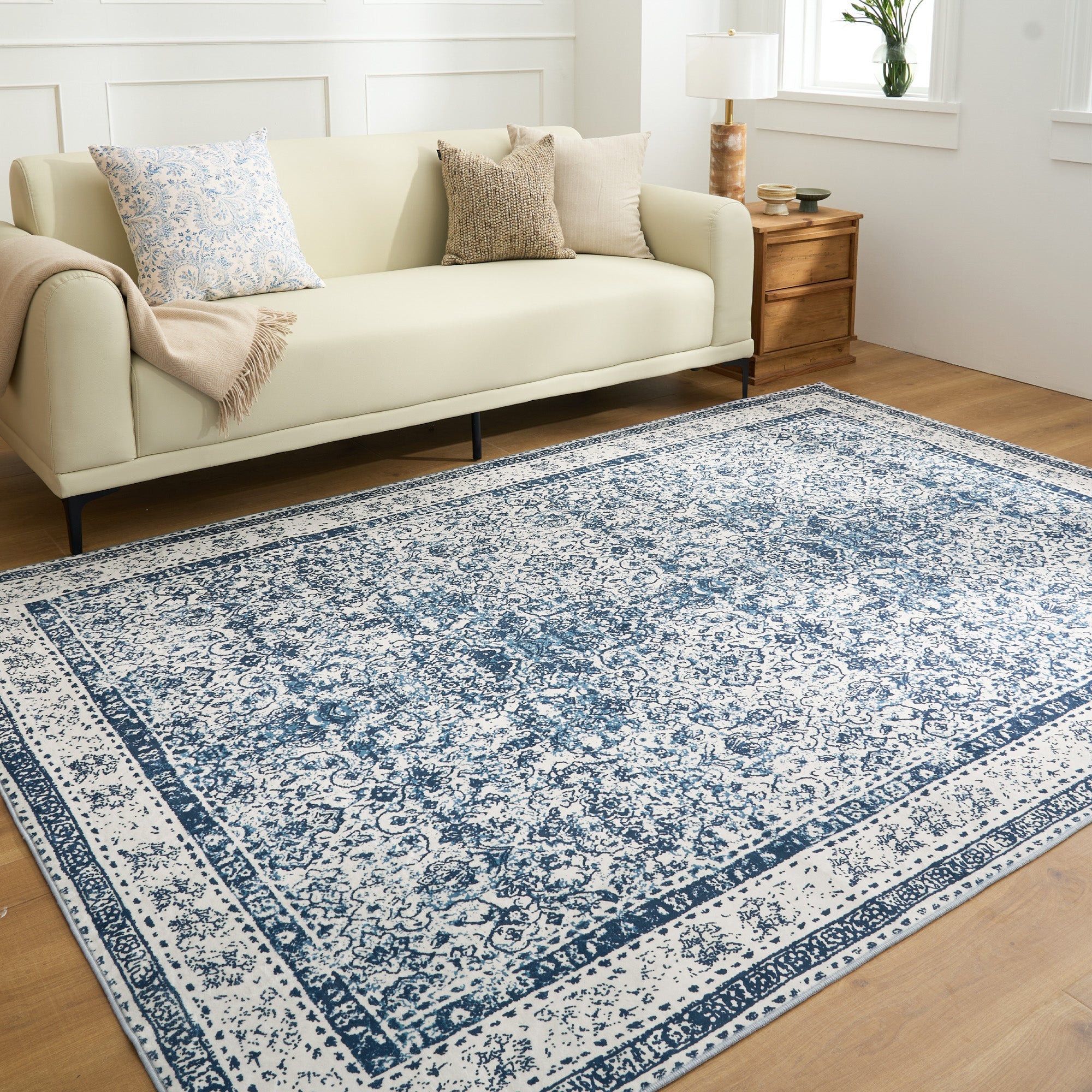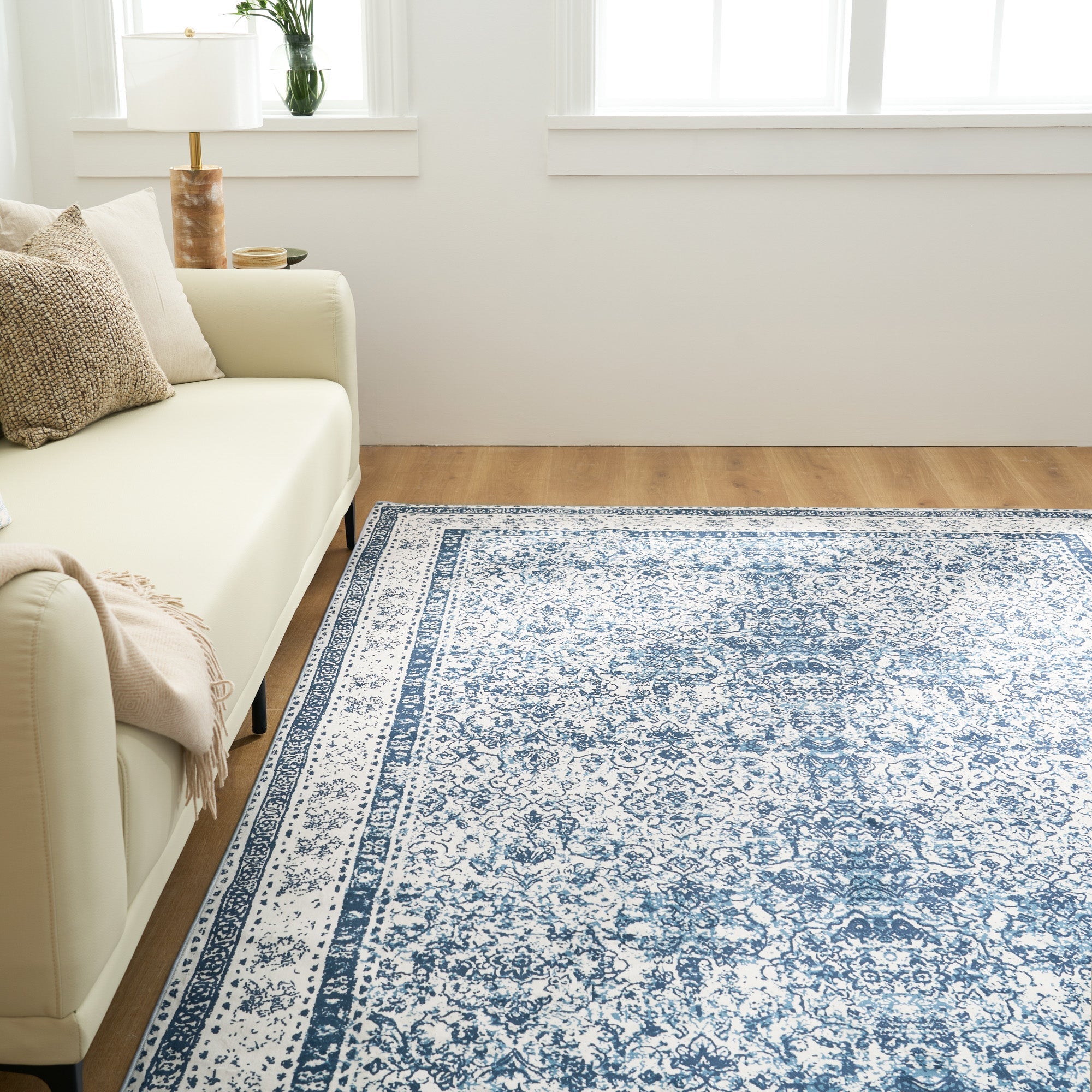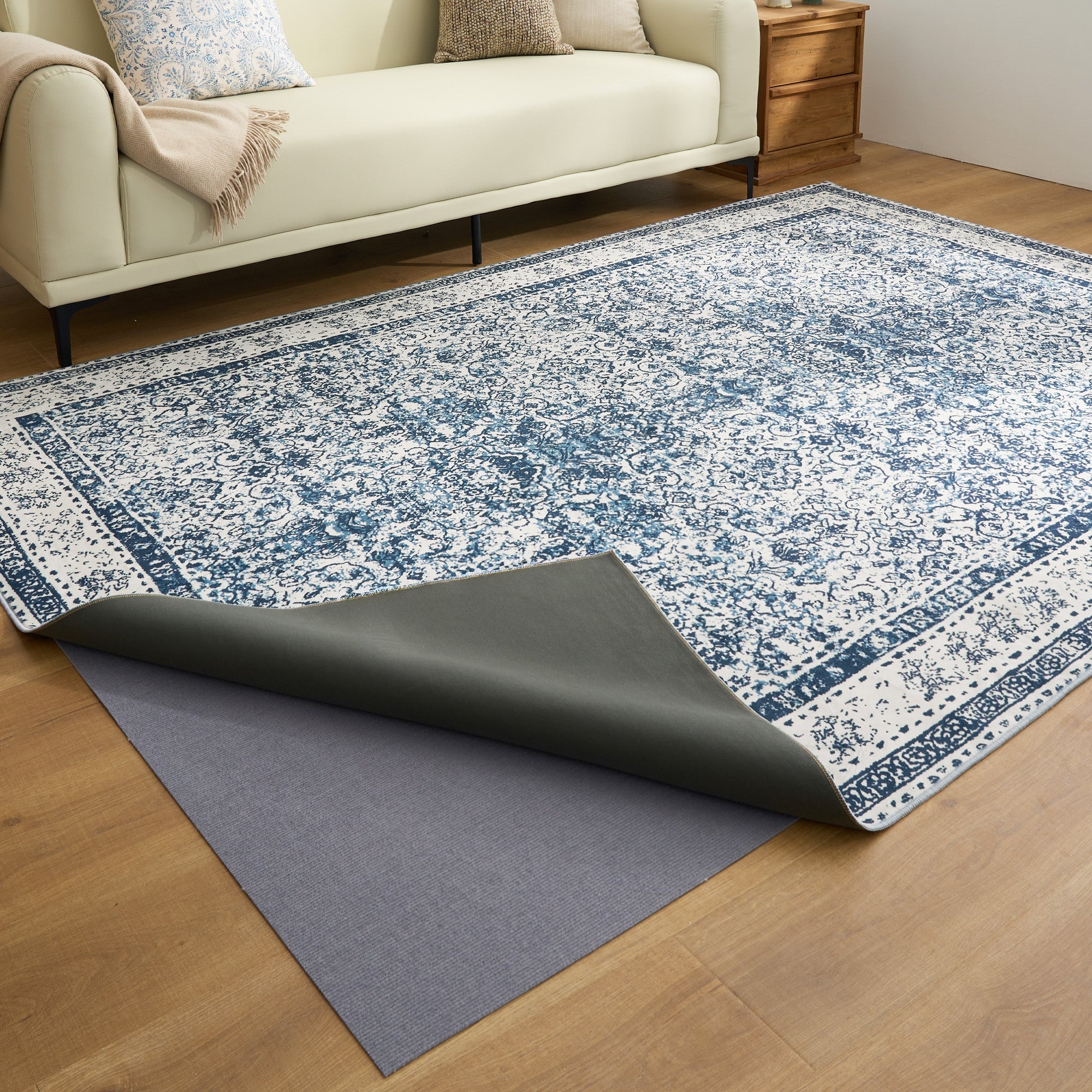 Alfombra persa rústica azul, lavable y fácil de limpiar, diseño minimalista, duradera, a prueba de derrames, apta para mascotas, con almohadilla antideslizante para sala de estar.