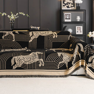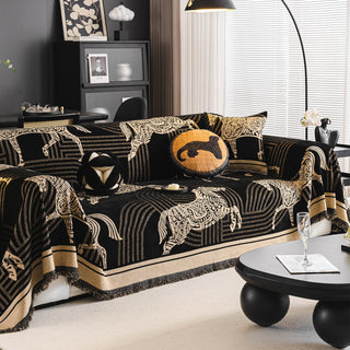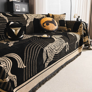 Funda de sofá de chenilla transpirable con estampado de caballo elegante, suave y elegante, para un hogar acogedor y moderno sin complicaciones.
