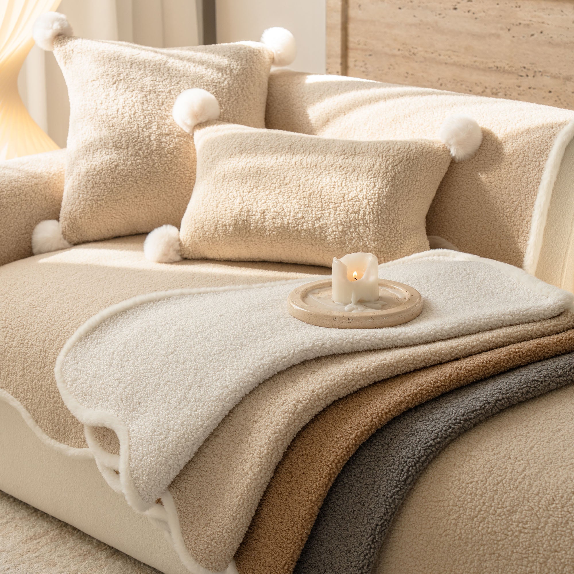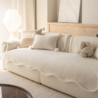 Funda de sofá antideslizante y acogedora de sherpa de piel de oveja