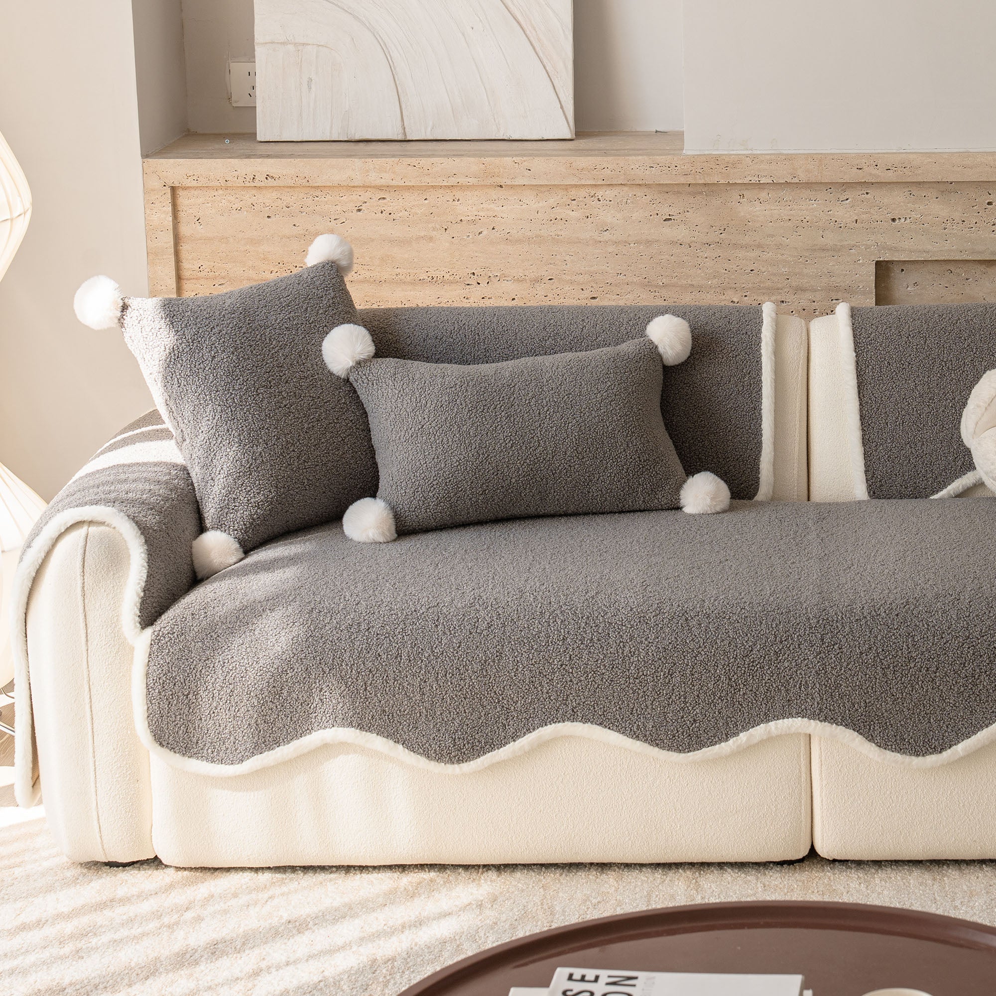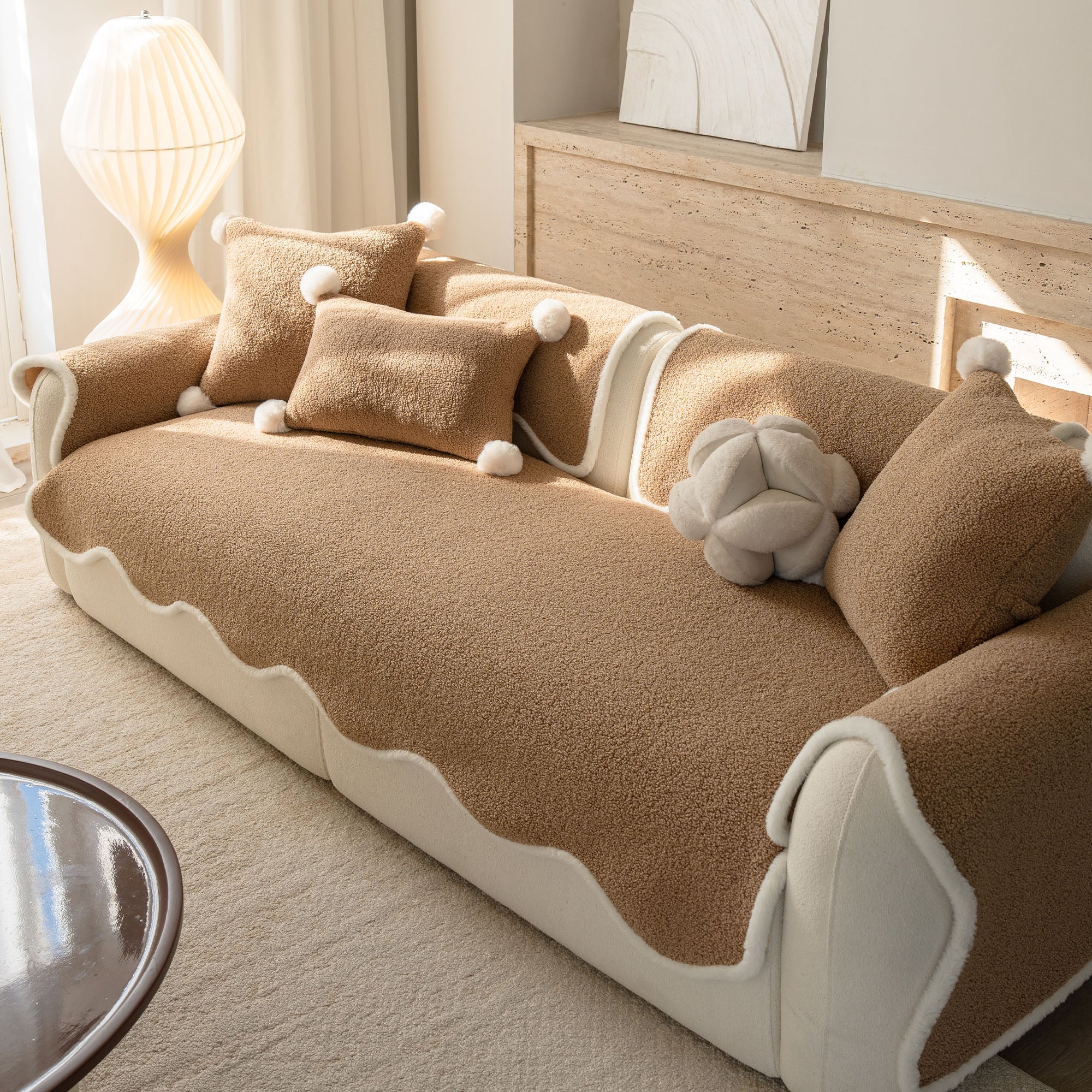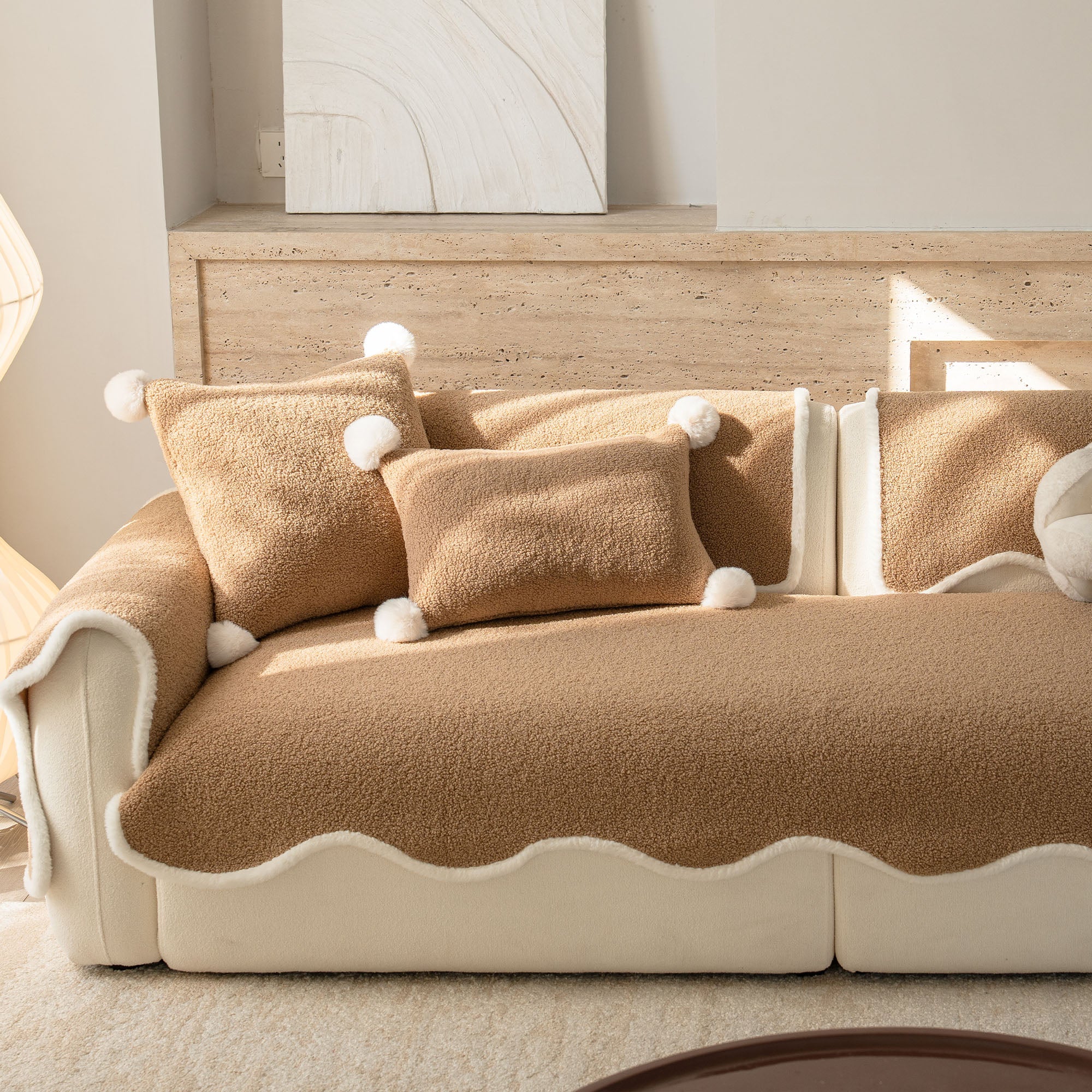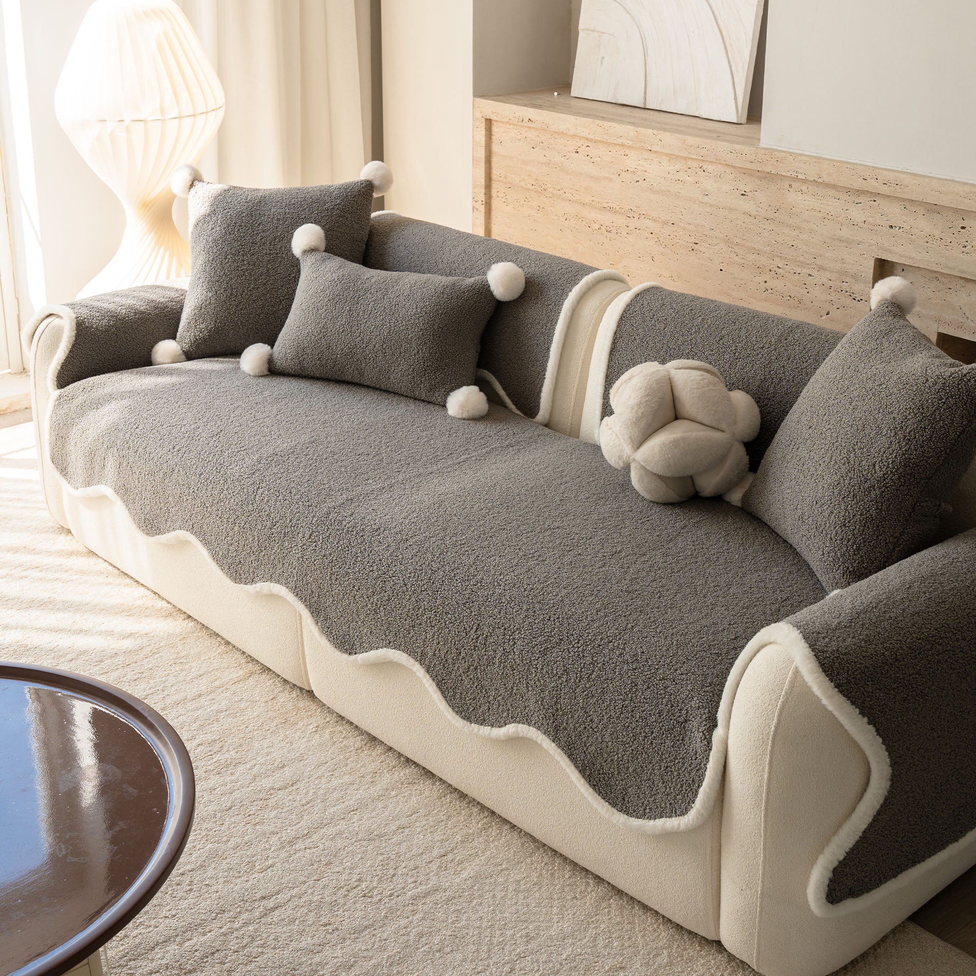Envuelve tu sofá en un lujo silencioso con nuestra acogedora funda de sofá antideslizante de sherpa de piel de oveja. Su lujoso pelo sherpa de alta densidad es increíblemente suave y se mantiene impecable durante el otoño y el invierno. Su reverso antideslizante se mantiene en su lugar y se adapta a los cojines y reposabrazos, mientras que el borde suavemente festoneado le da un acabado refinado y de diseño. Apta para mascotas y familias, protege tu sofá del pelo, arañazos, migas y derrames cotidianos, para que tu sala siempre esté lista para recibir visitas.