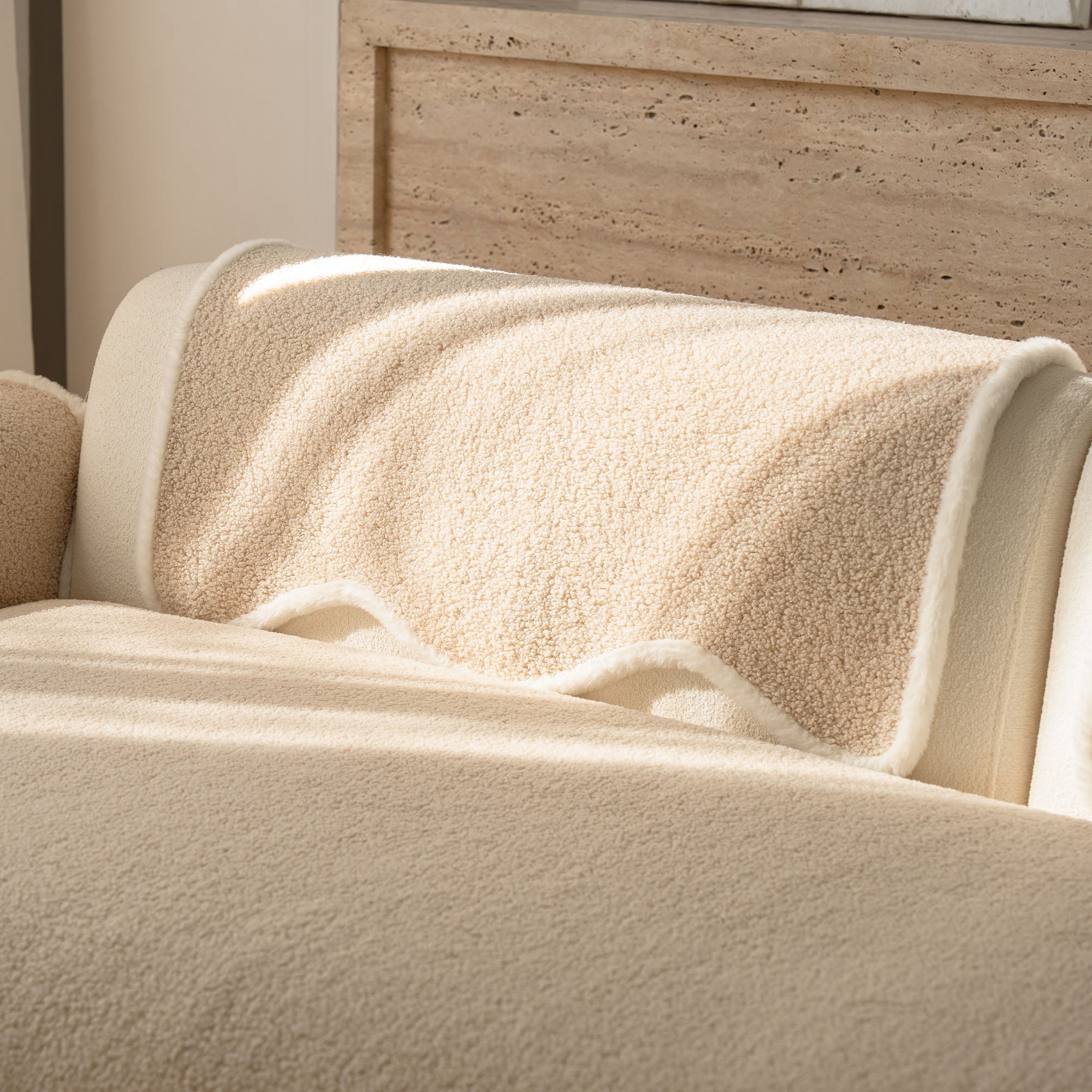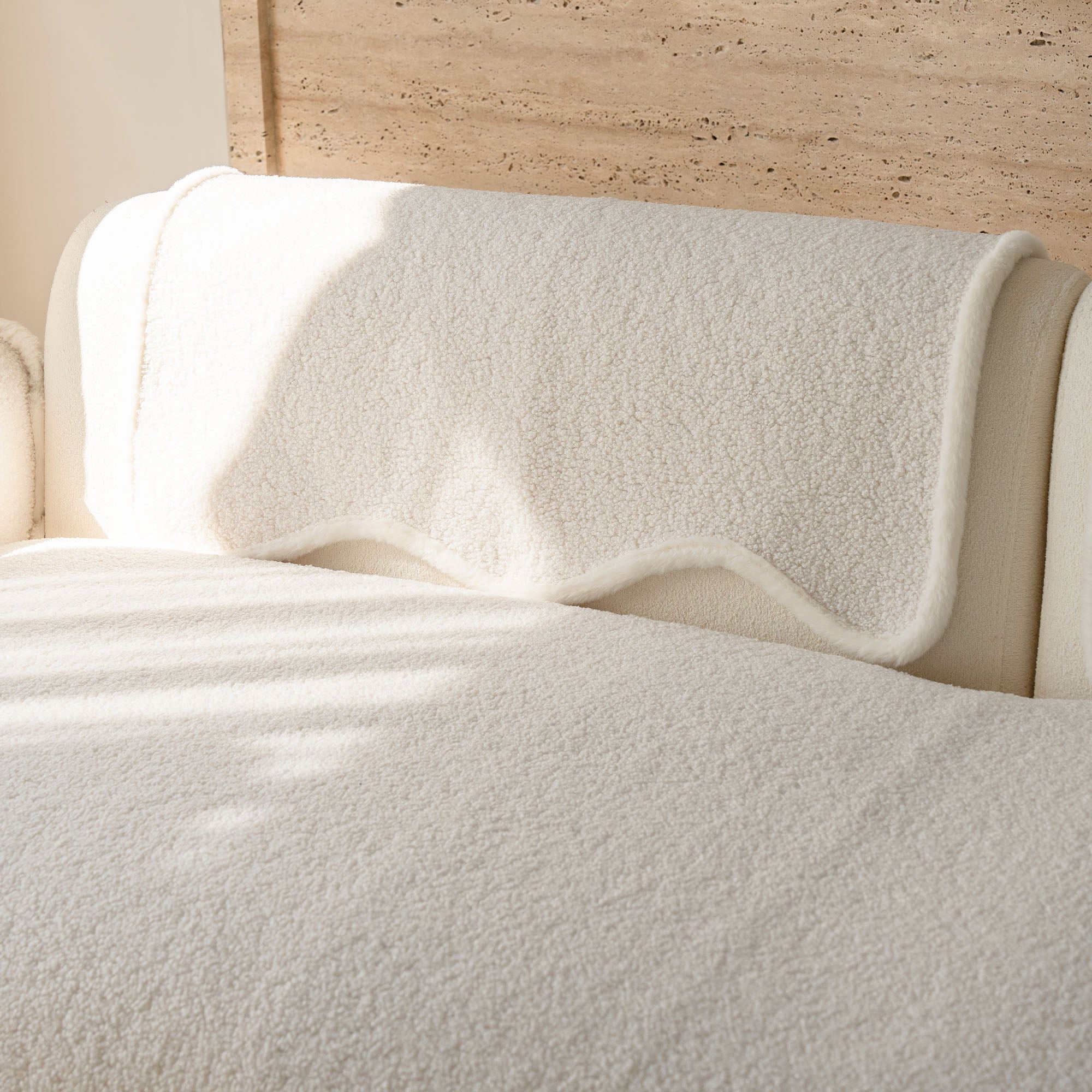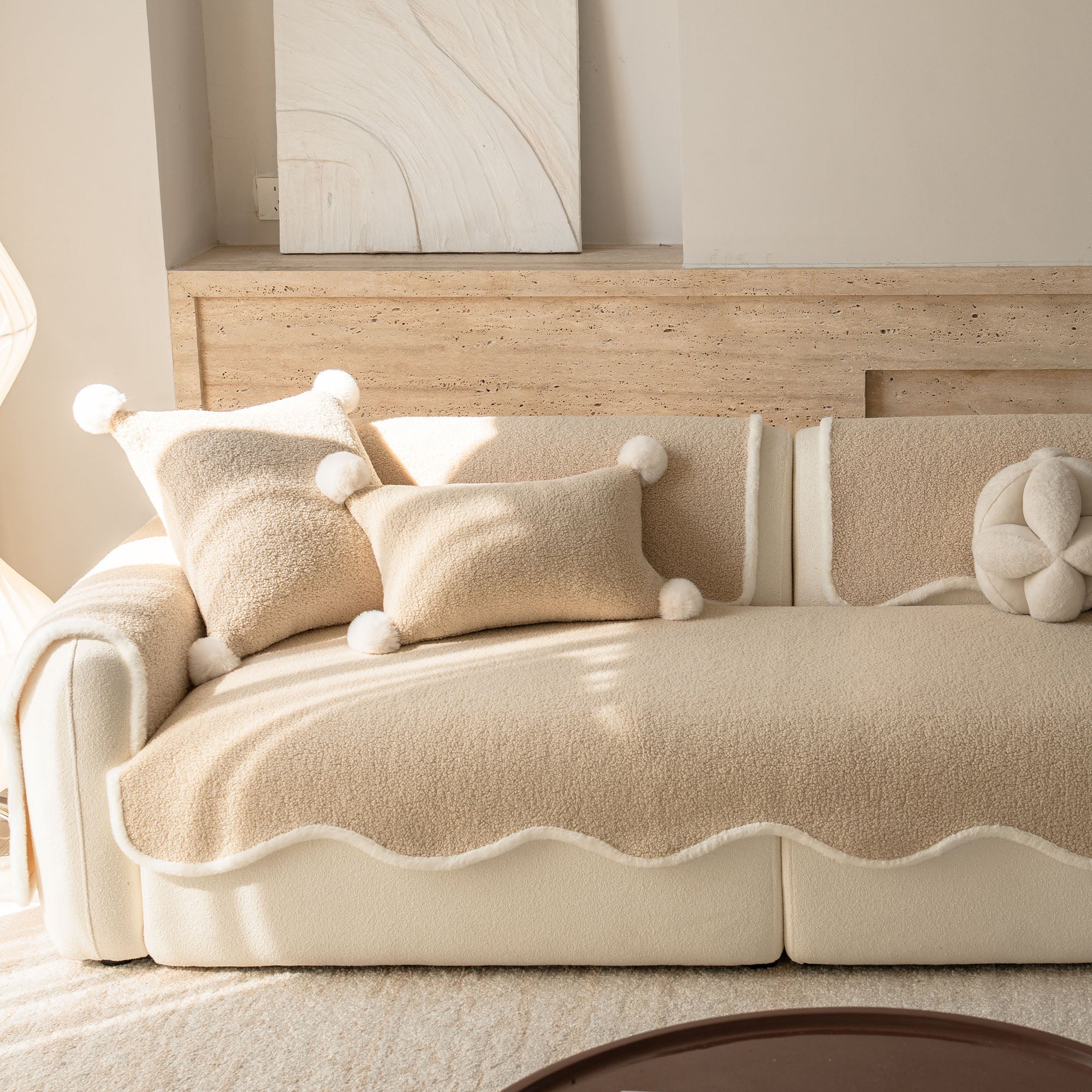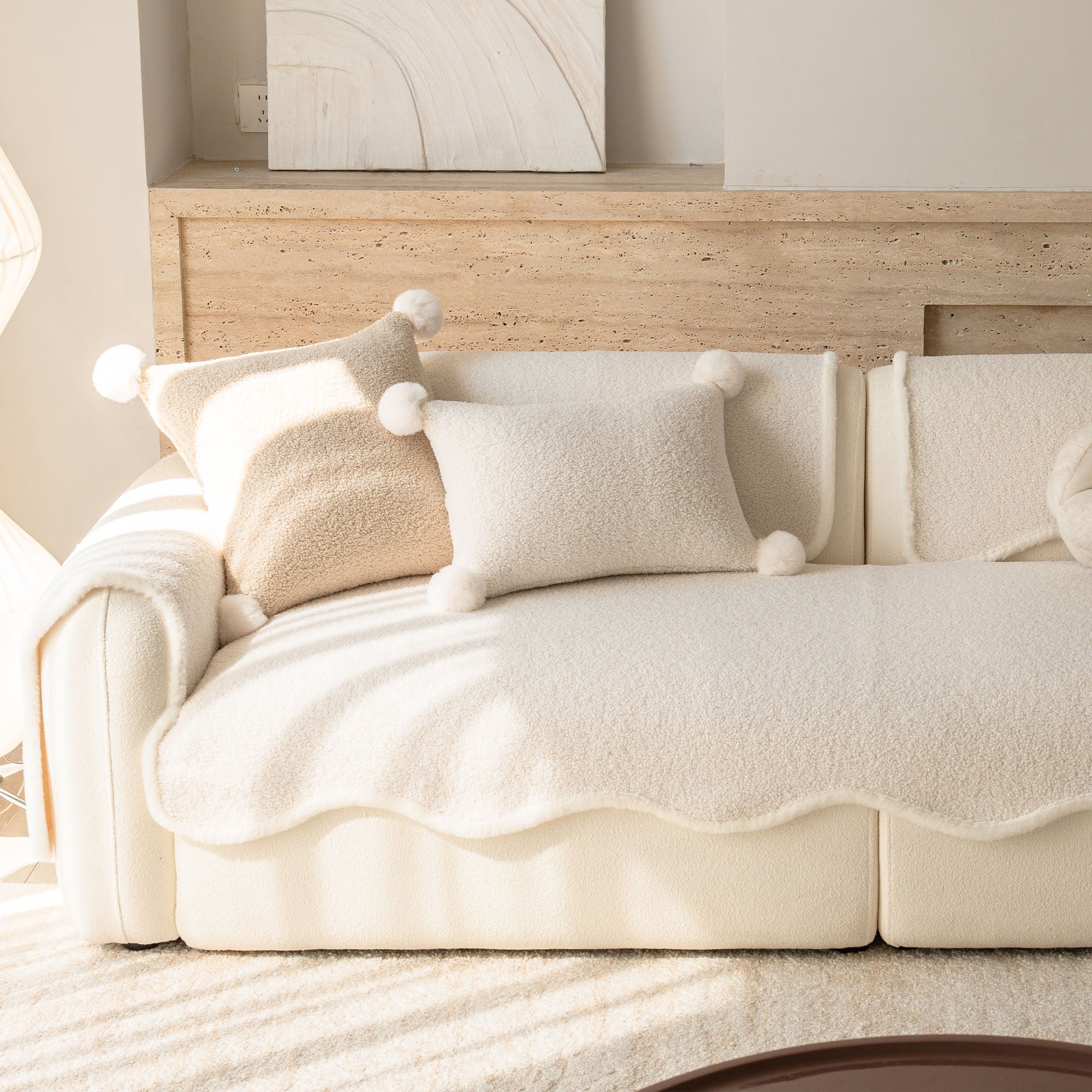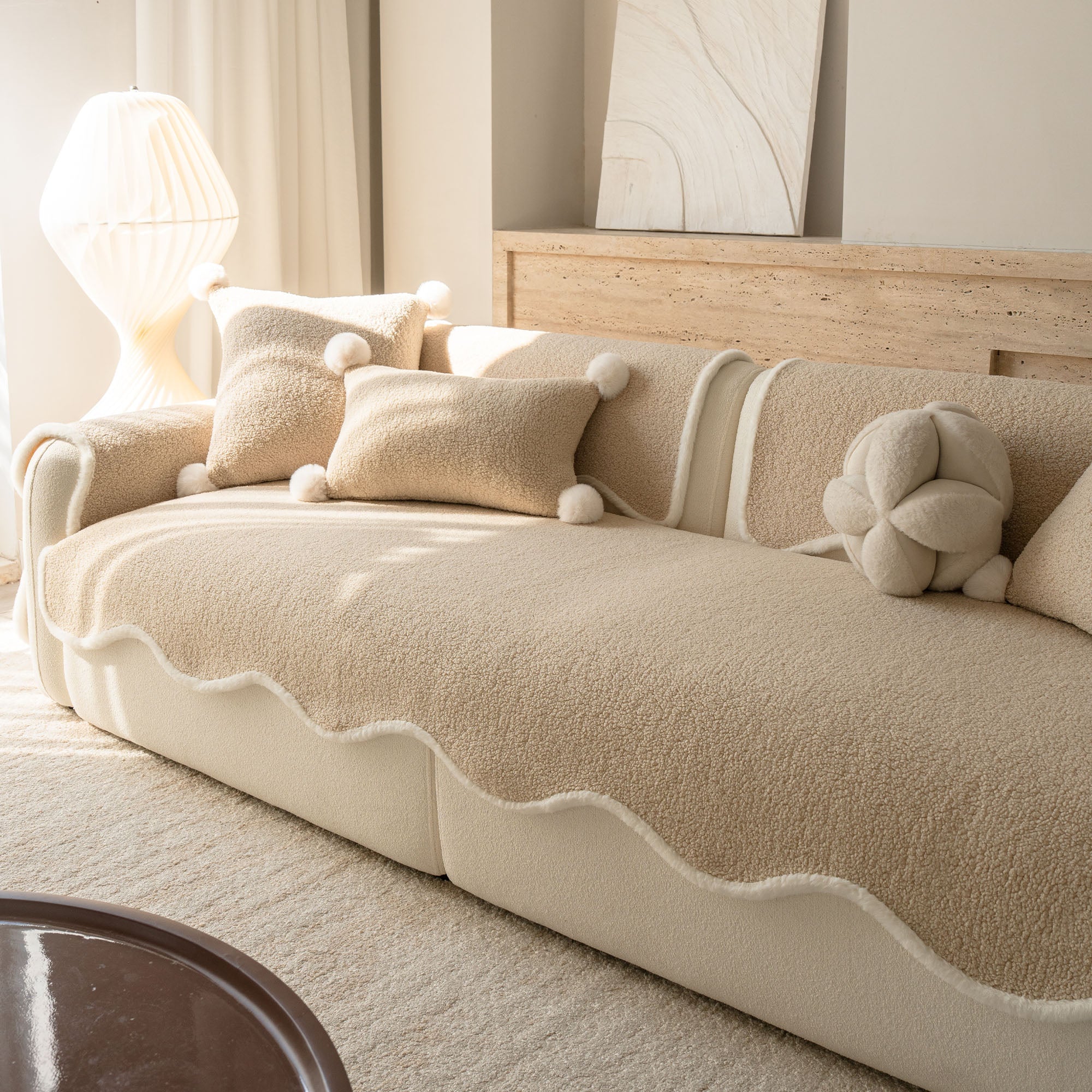 Envuelve tu sofá en un lujo silencioso con nuestra acogedora funda de sofá antideslizante de sherpa de piel de oveja. Su lujoso pelo sherpa de alta densidad es increíblemente suave y se mantiene impecable durante el otoño y el invierno. Su reverso antideslizante se mantiene en su lugar y se adapta a los cojines y reposabrazos, mientras que el borde suavemente festoneado le da un acabado refinado y de diseño. Apta para mascotas y familias, protege tu sofá del pelo, arañazos, migas y derrames cotidianos, para que tu sala siempre esté lista para recibir visitas.