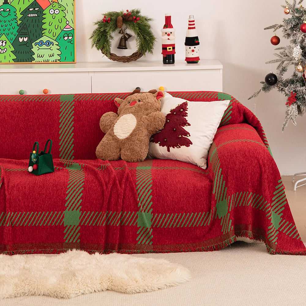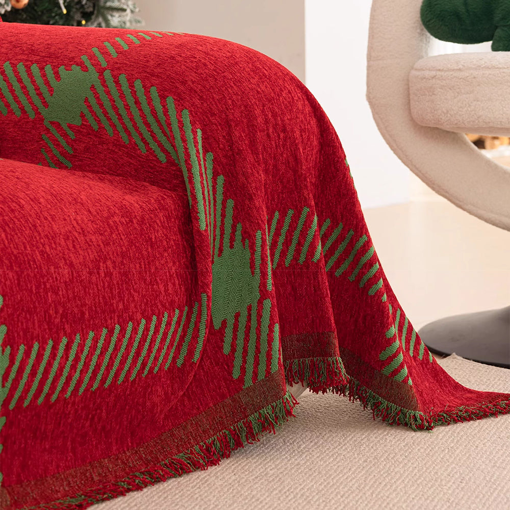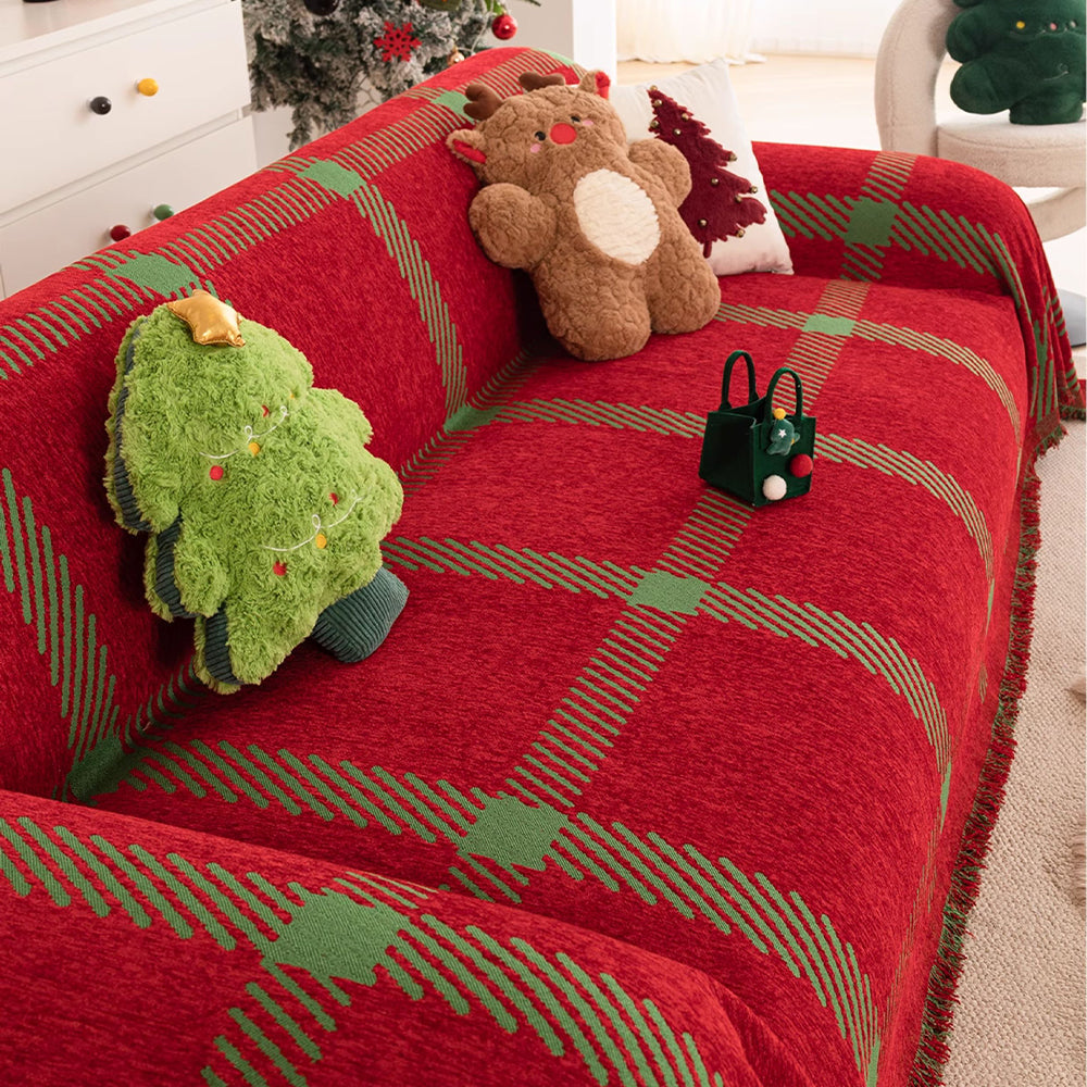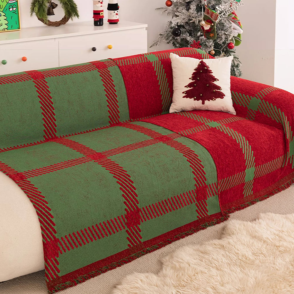 Funda de sofá de chenilla a cuadros festiva resistente a los arañazos