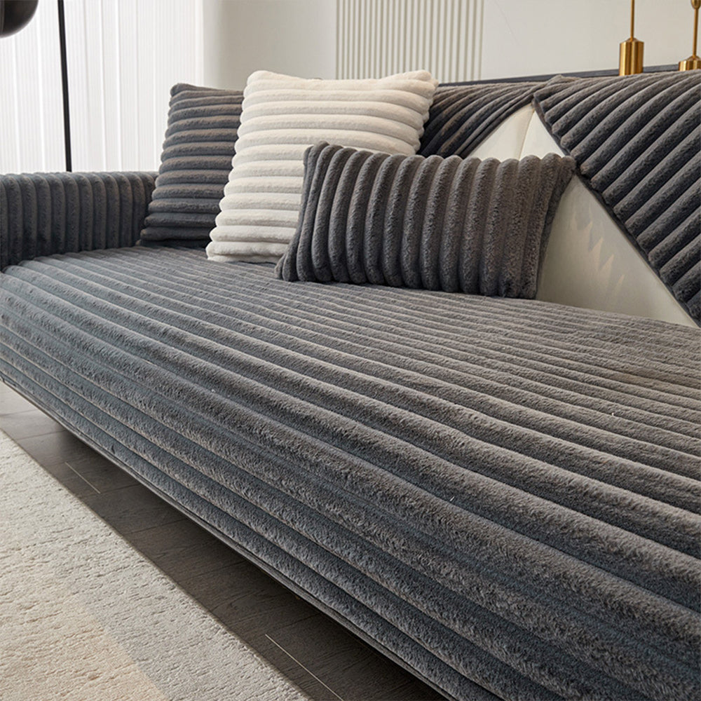 Funda de sofá antideslizante de felpa acanalada de lujo