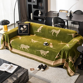 Dale un toque salvaje a tu hogar con nuestra funda de sofá Cheetah inspirada en Safari. Perfecta para los amantes de los animales y los amantes de la decoración con estilo, esta funda presenta elegantes motivos de guepardos sobre un fondo verde exuberante, añadiendo encanto y resistencia a tu espacio vital. Diseñada para hogares con mascotas, resiste las exigencias de la vida diaria a la vez que aporta un toque elegante.