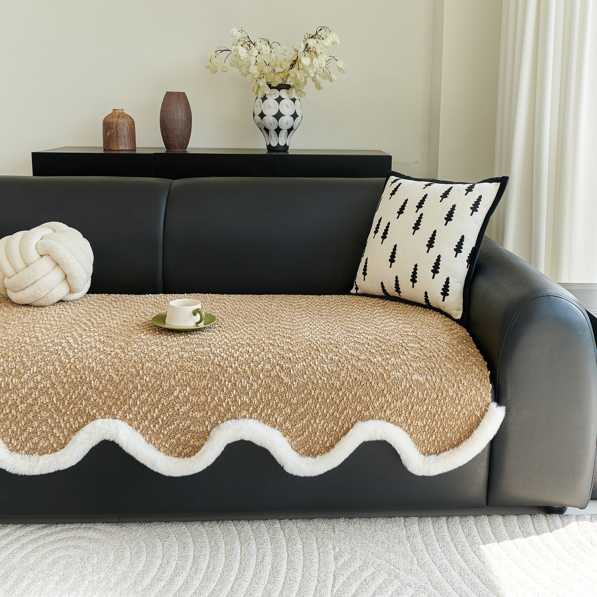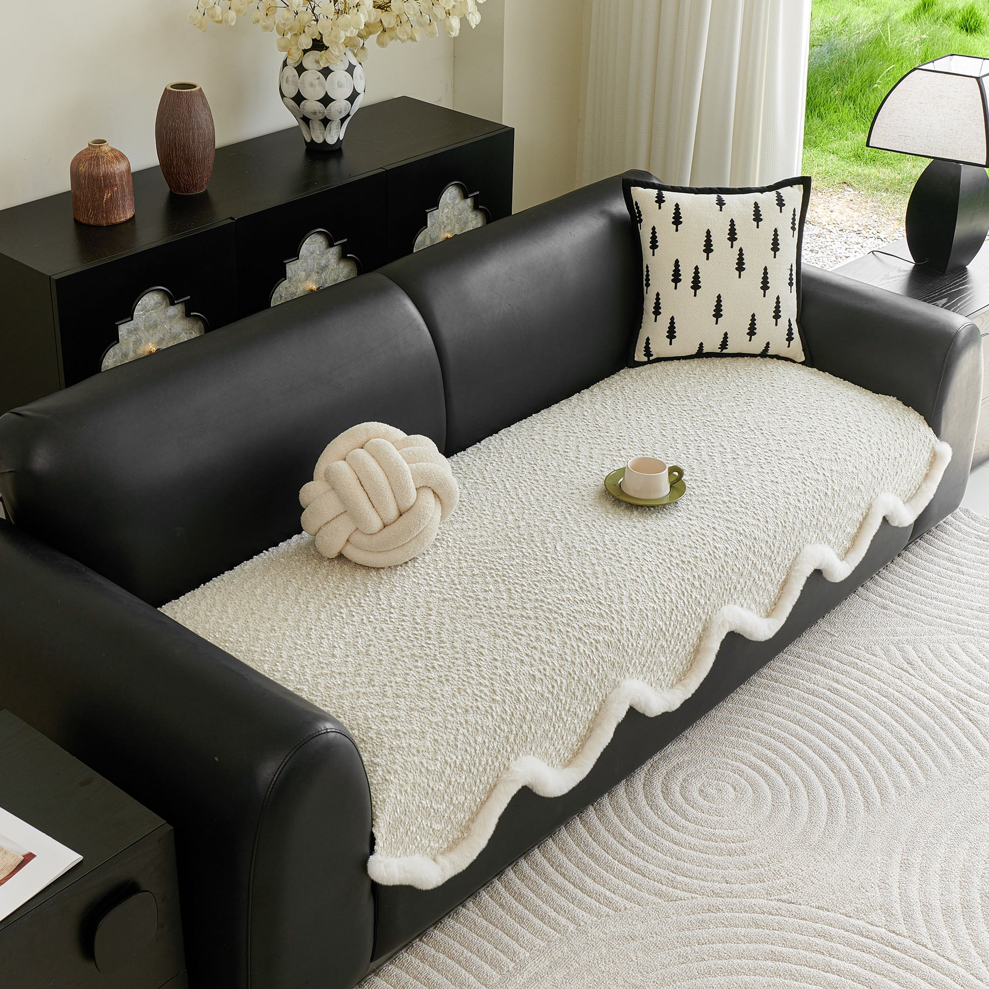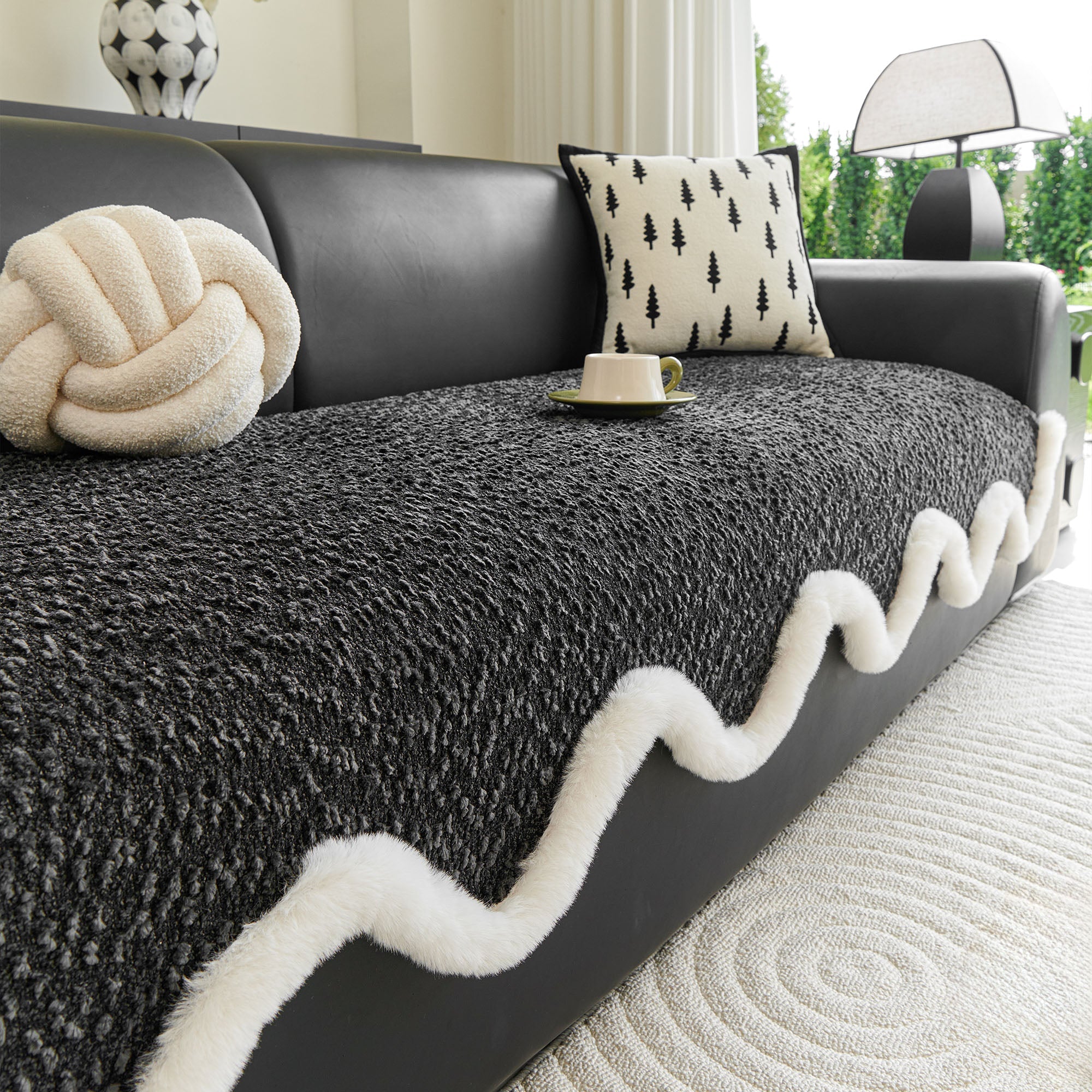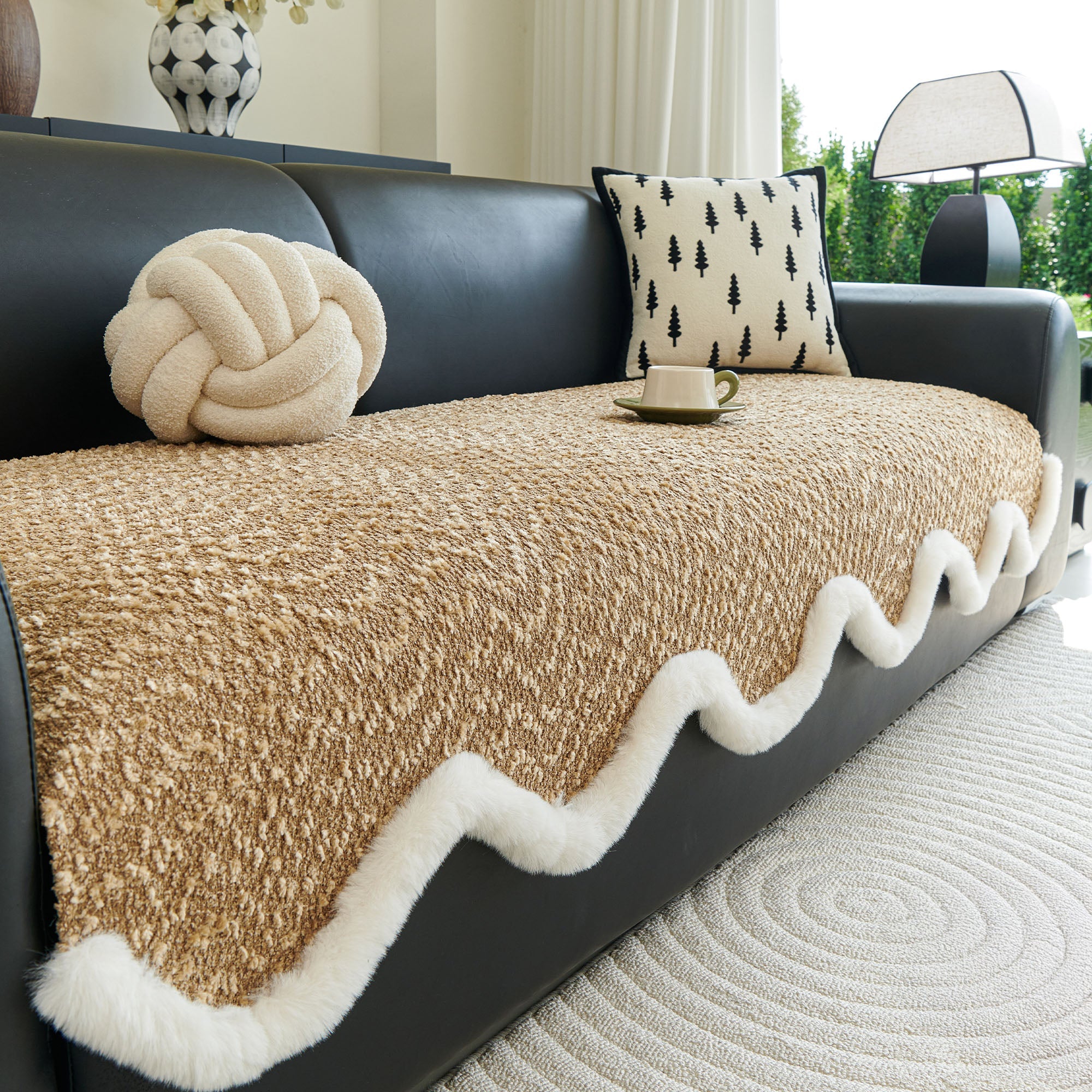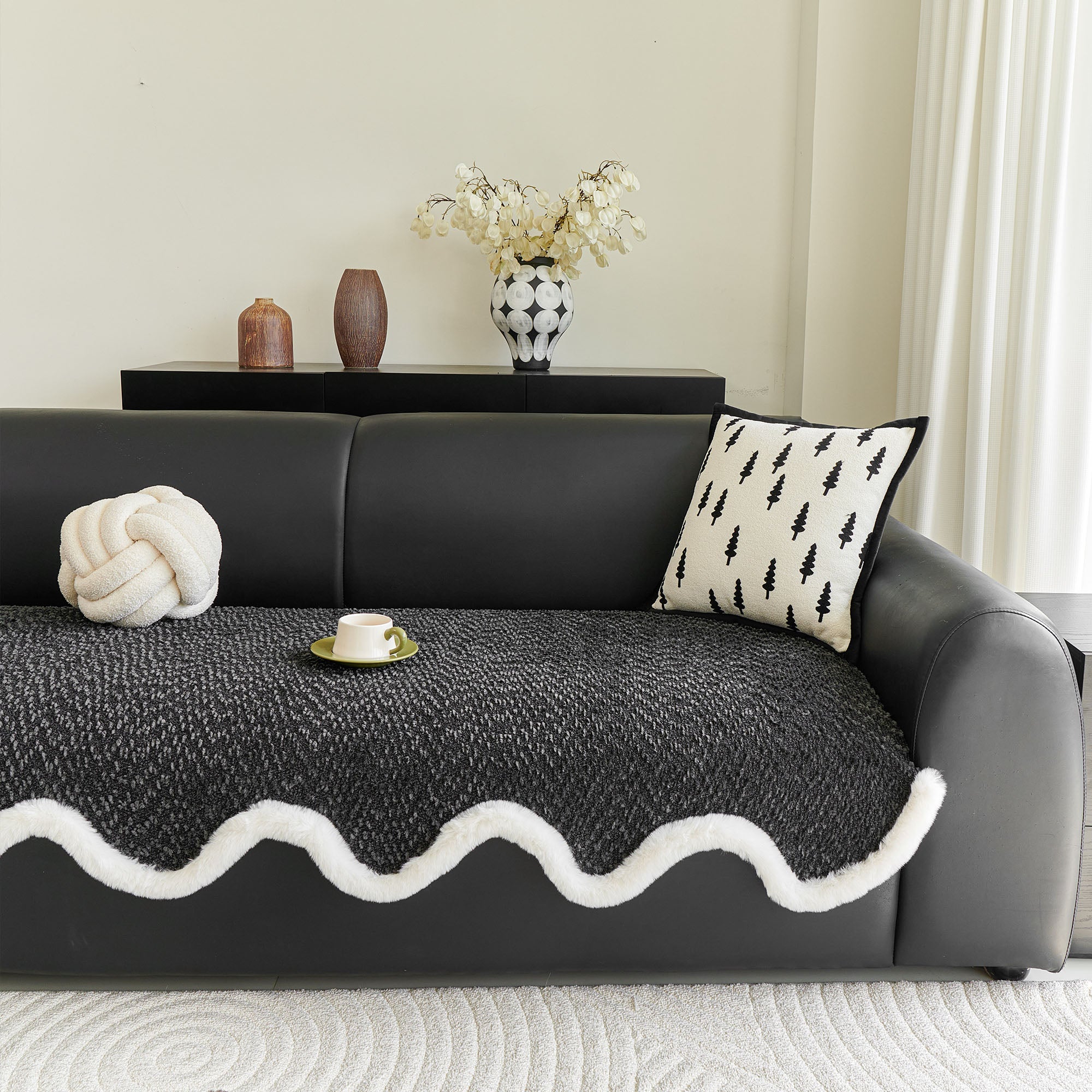 Funda de sofá antideslizante de chenilla con borde ondulado