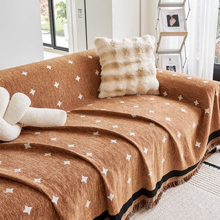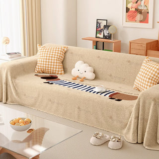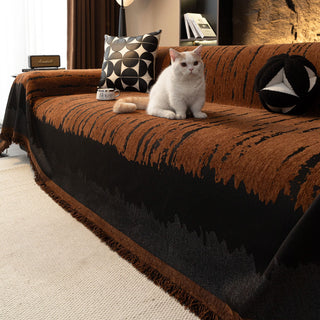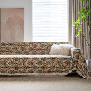 Funda de sofá minimalista vintage multiusos, suave y afelpada, apta para mascotas, en tonos tierra.