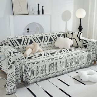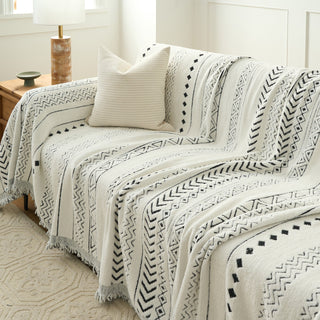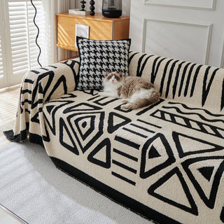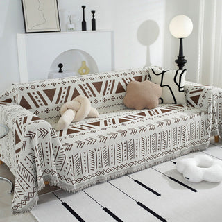 Funda de sofá vintage minimalista multiusos, apta para mascotas, con diseño tribal gemométrico en tonos pastel suaves