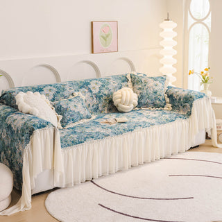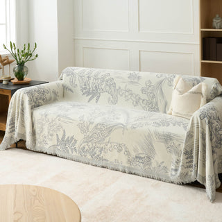 Funda de sofá con volantes de felpa botánica, transpirable, cómoda y protectora, tela duradera y fácil de limpiar.