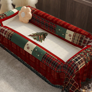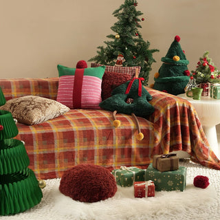Funda de sofá de felpa a cuadros clásica navideña, acogedora y festiva, para tu sala de estar