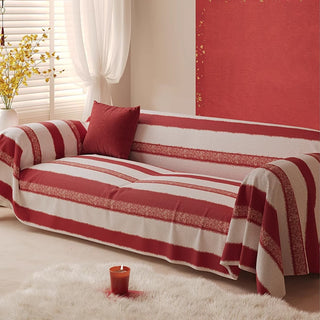 Funda de sofá clásica navideña a rayas rojas y blancas para un ambiente festivo acogedor