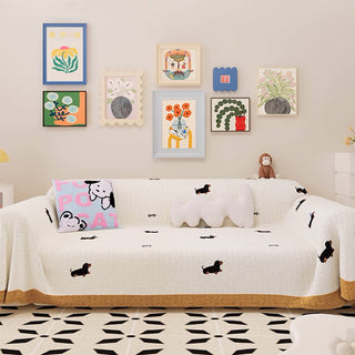 Funda de sofá de tela de felpa con estampado de perros para amantes de las mascotas, diseño suave y acogedor
