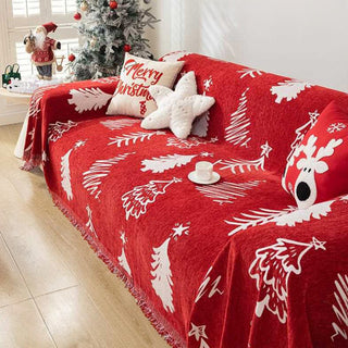 Funda de sofá con estampado de árbol de Navidad, festiva, acogedora y elegante, decoración navideña para tu sala de estar