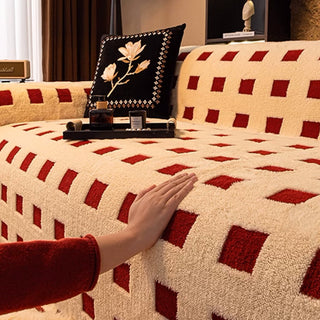Funda de sofá de felpa con diseño cuadrado geométrico para mayor comodidad y sofisticación en cualquier sala de estar