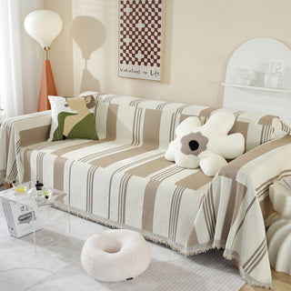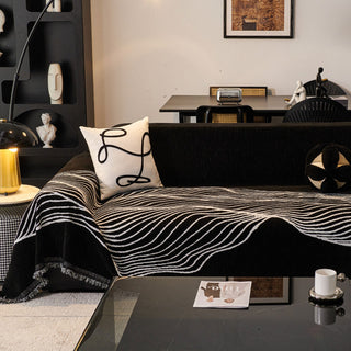 Funda de sofá minimalista vintage multiusos de felpa suave a rayas, apta para mascotas