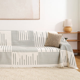 Funda de sofá minimalista con rayas texturizadas, moderna, suave, duradera y apta para mascotas. Lavable a máquina.