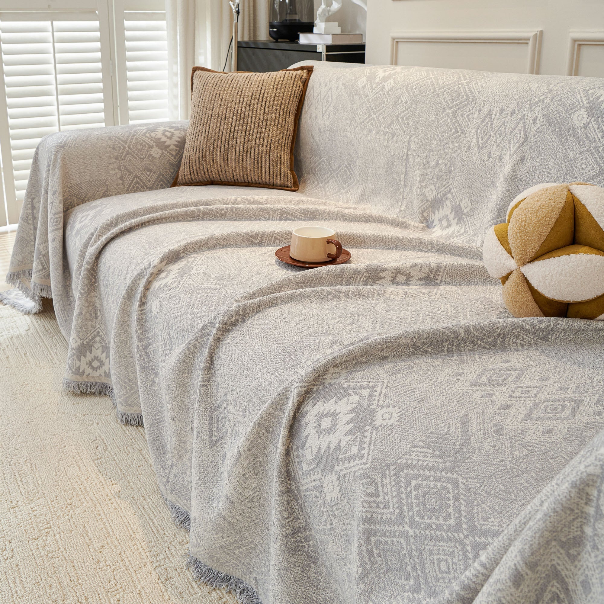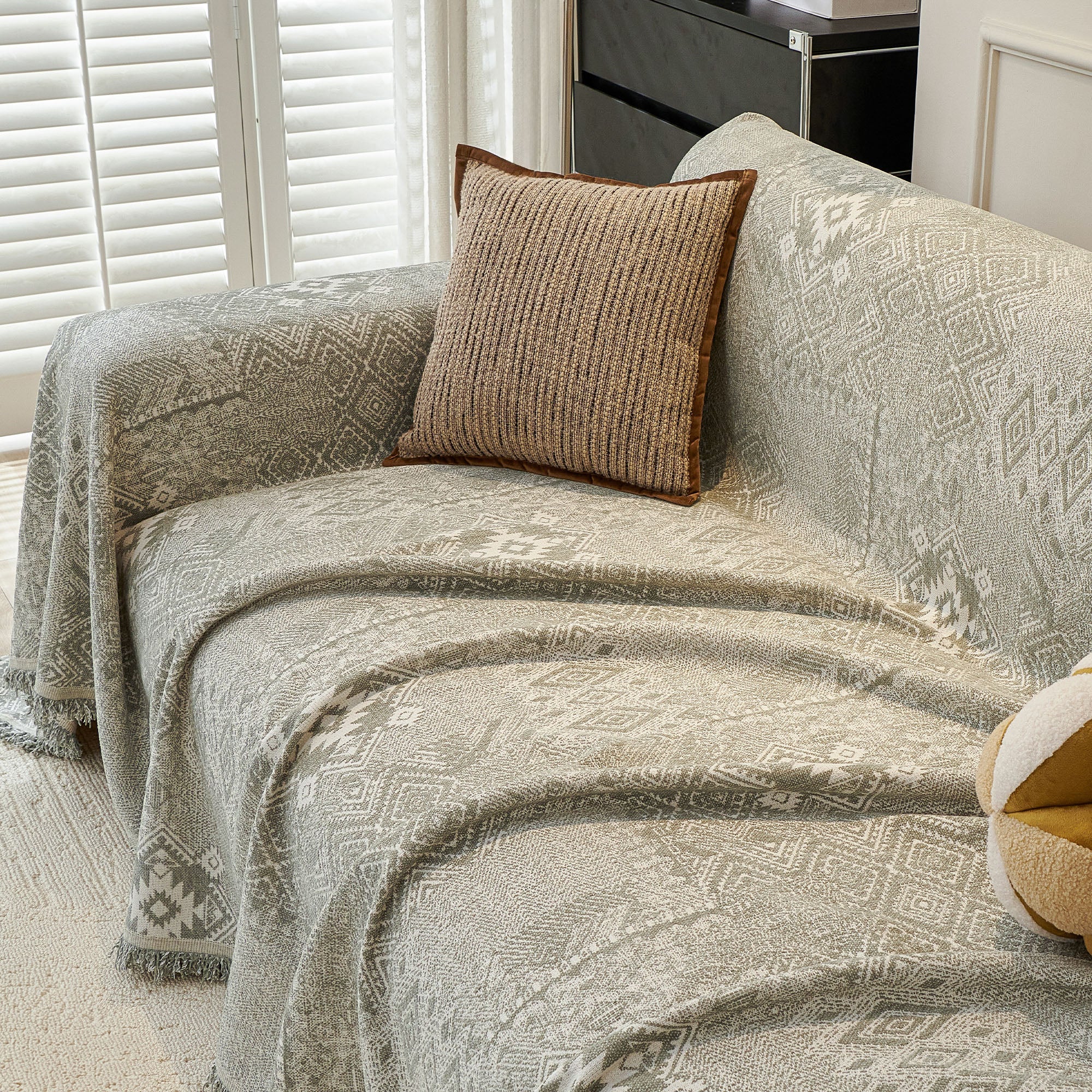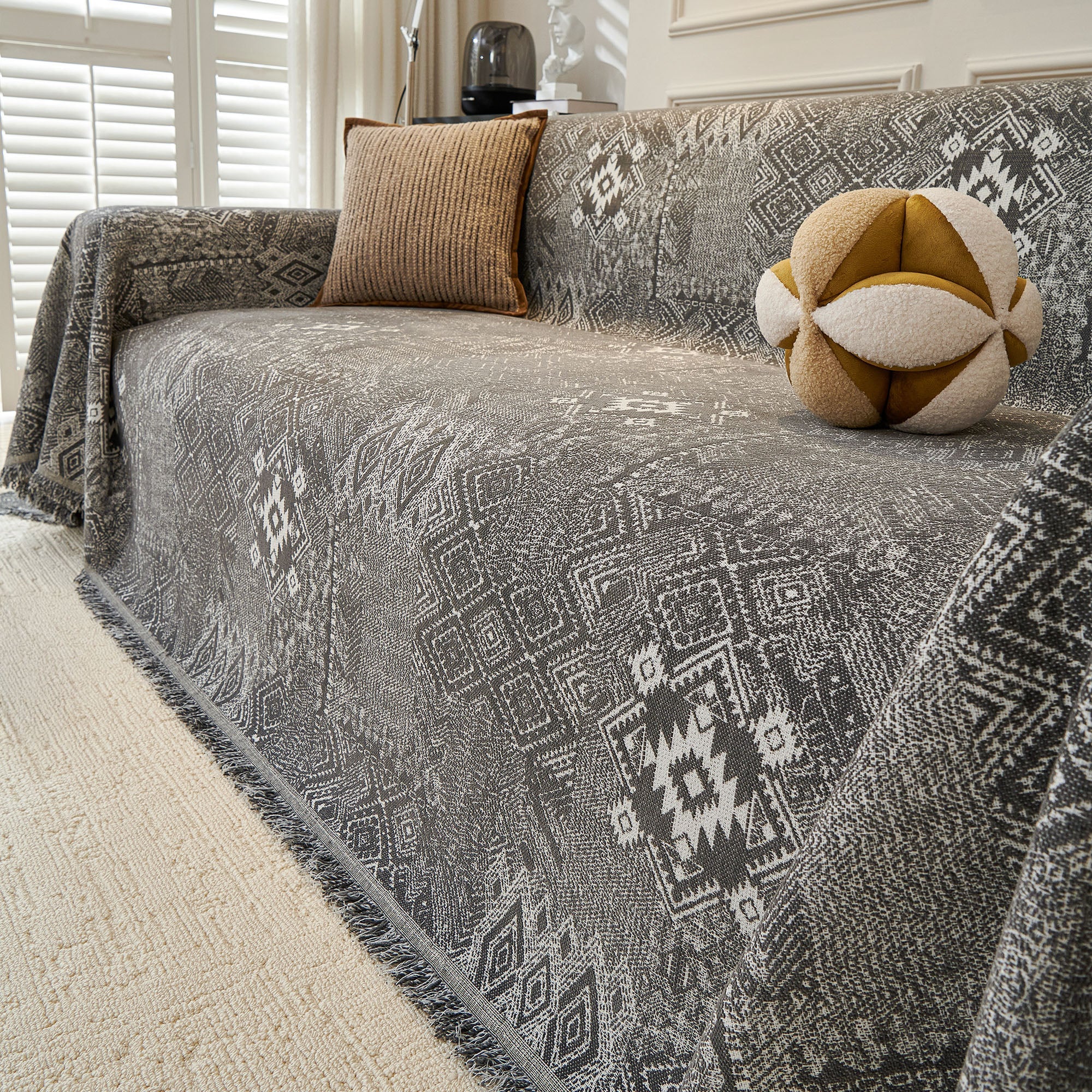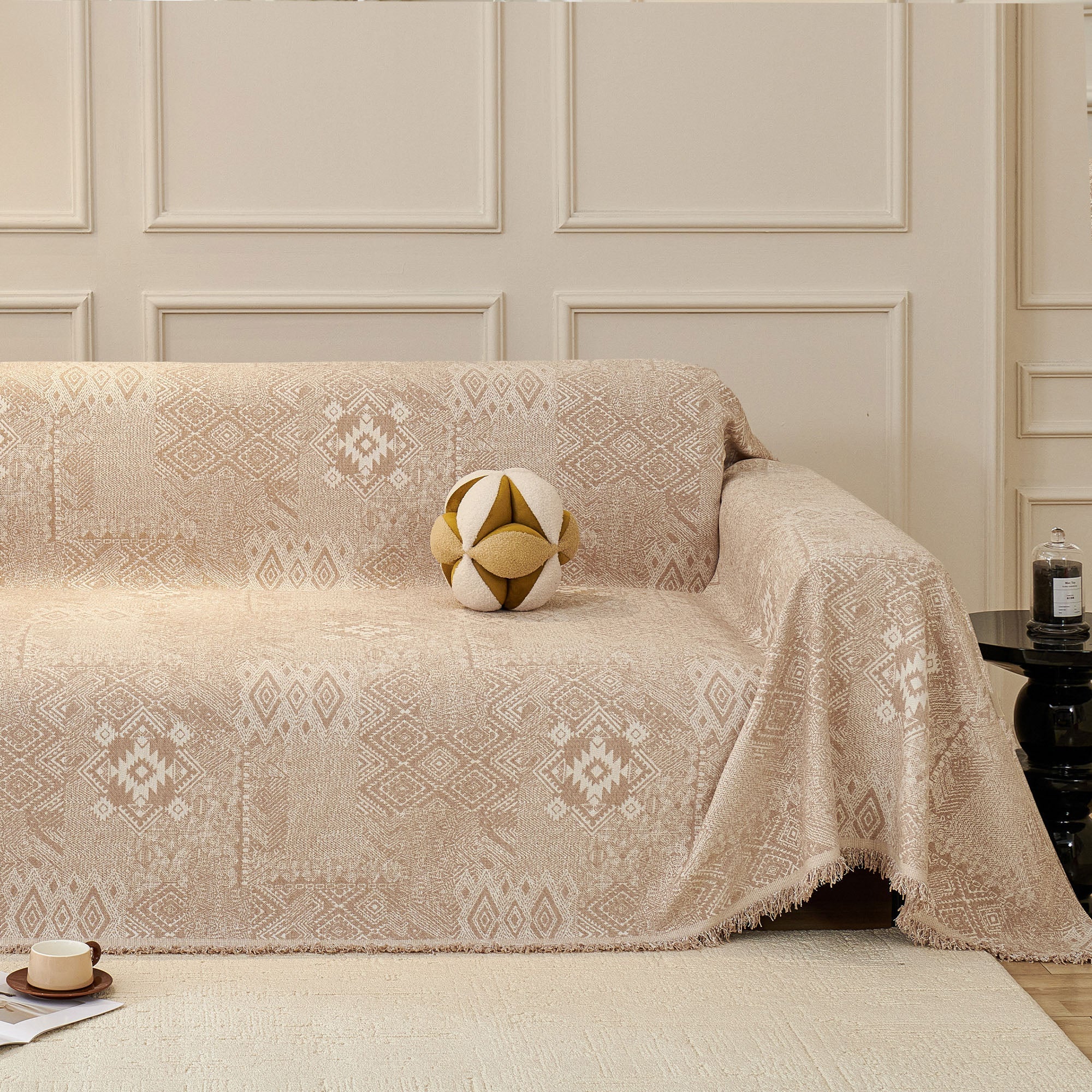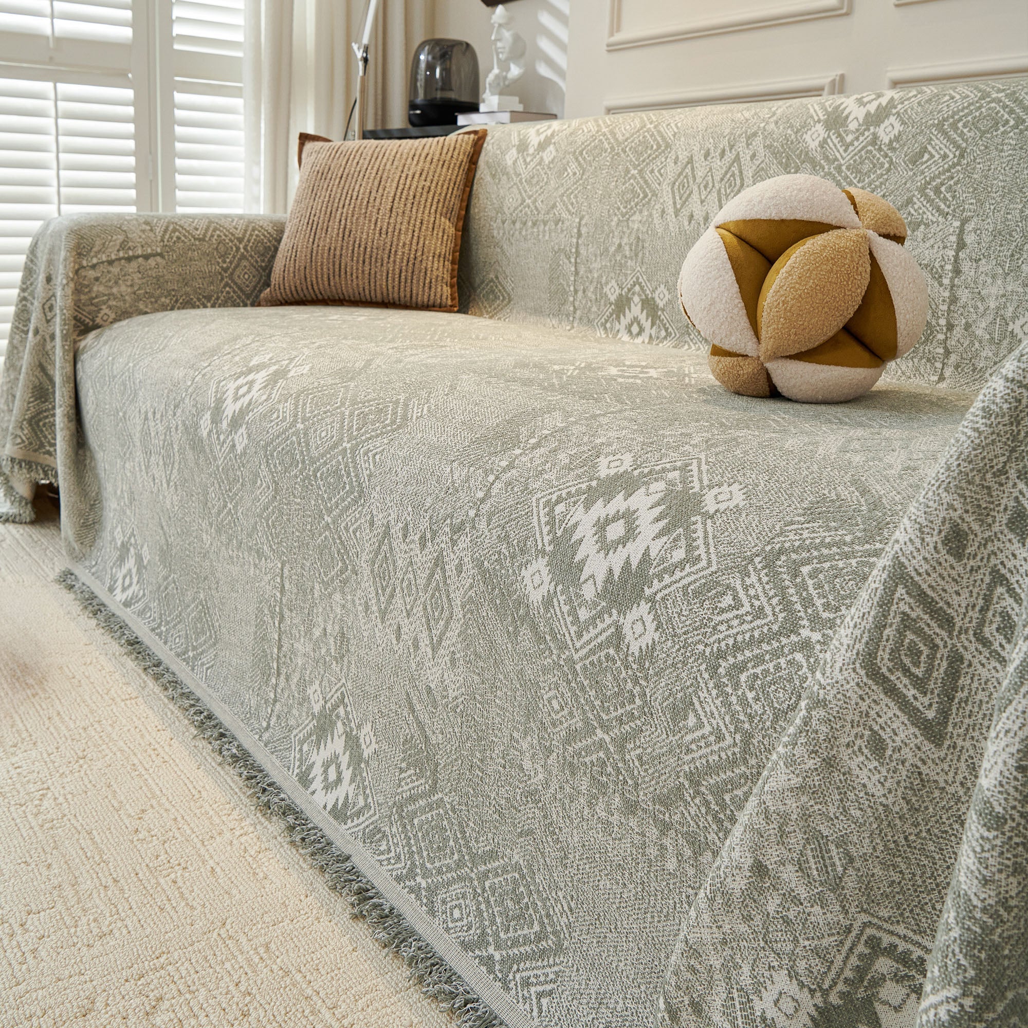 Funda de sofá vintage minimalista multiusos, apta para mascotas, con diseño tribal gemométrico en tonos pastel suaves