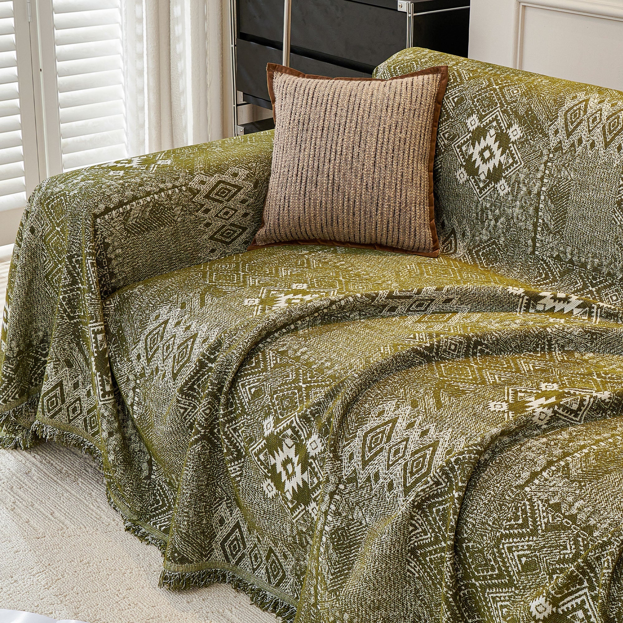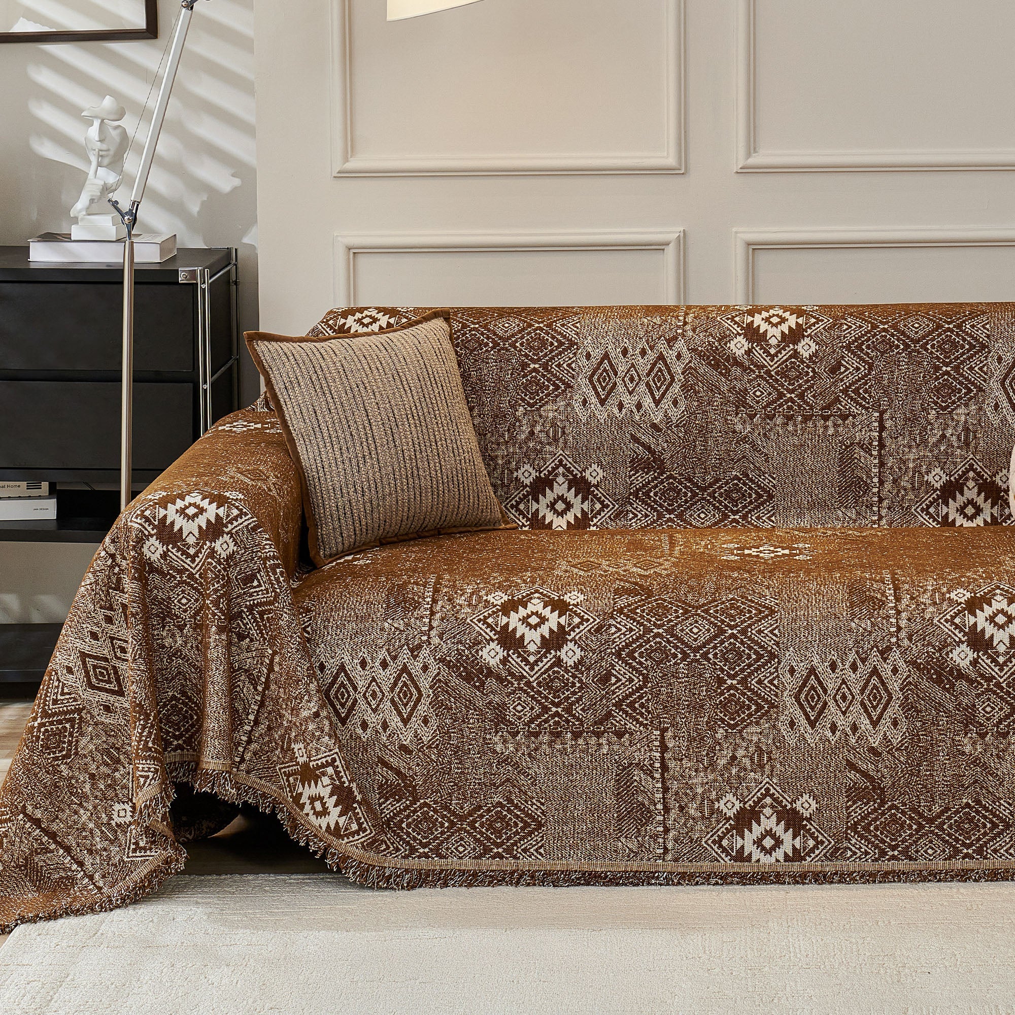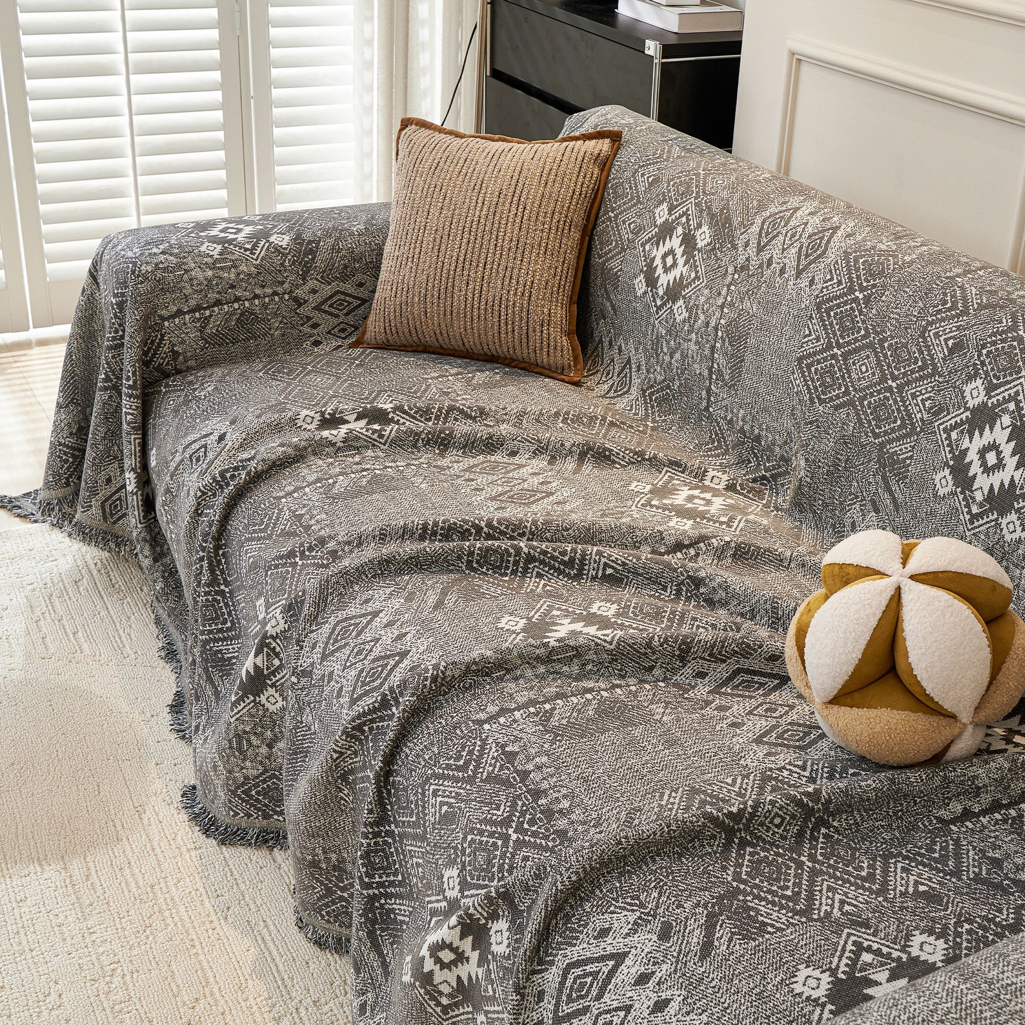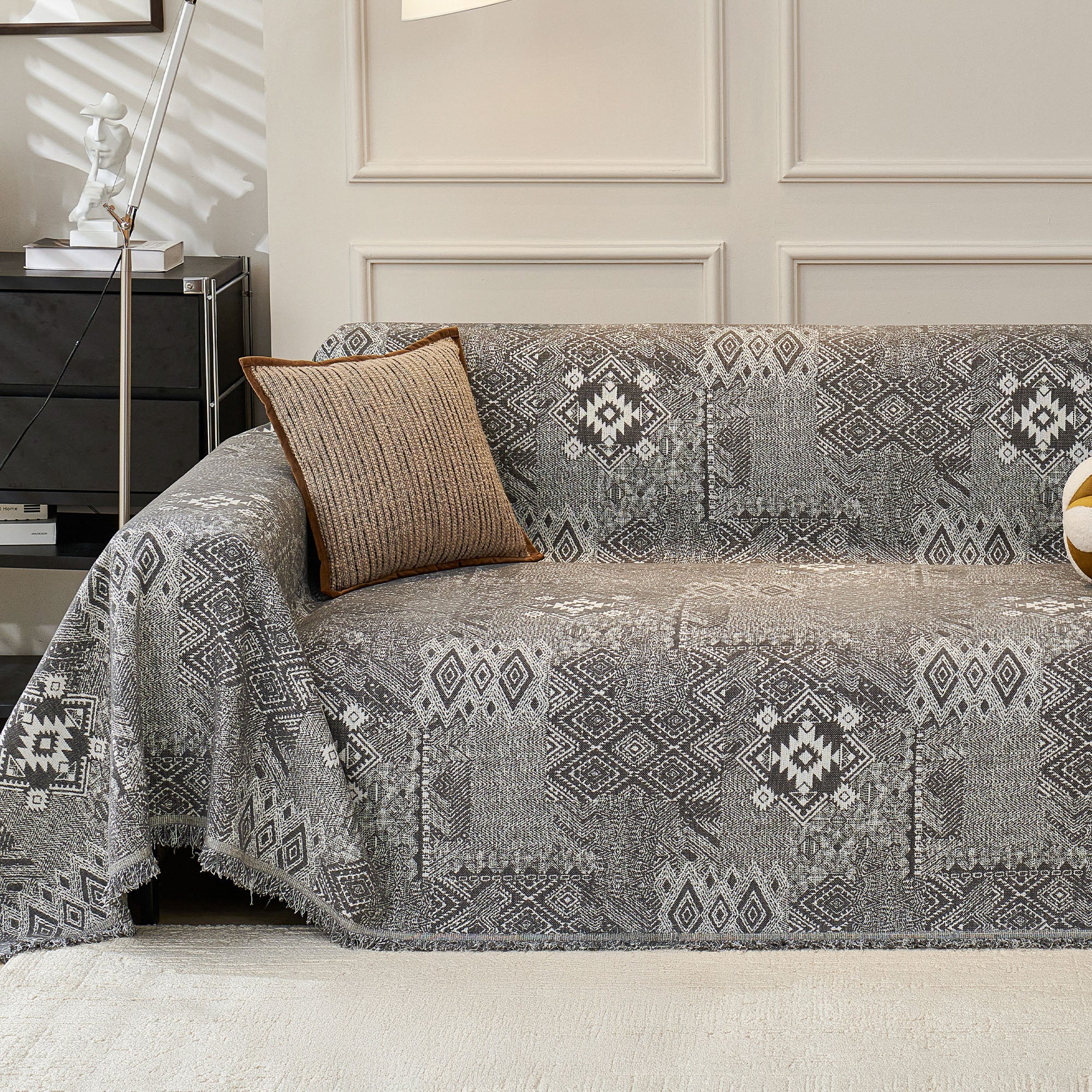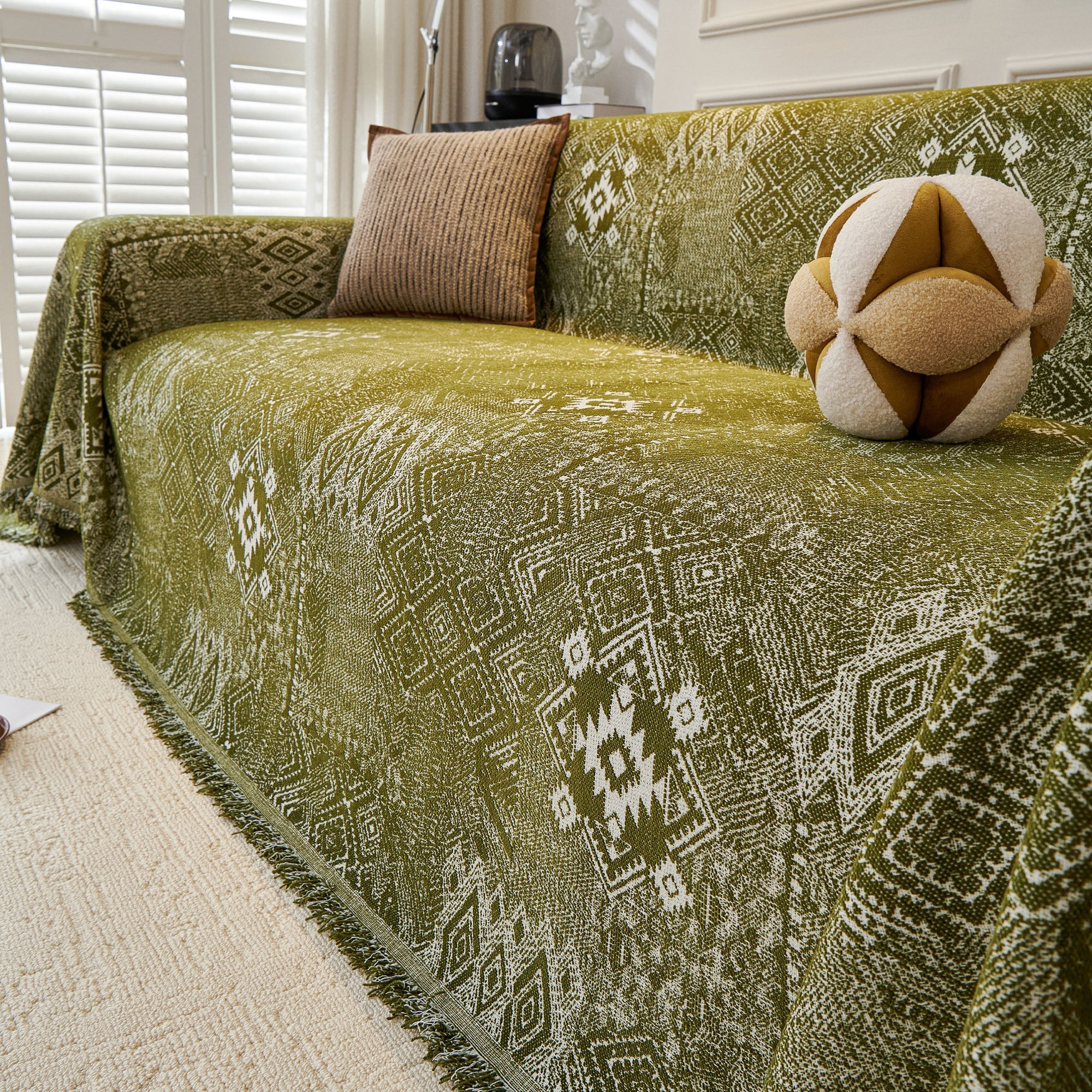 Funda de sofá vintage minimalista multiusos, apta para mascotas, con diseño tribal gemométrico en tonos pastel suaves