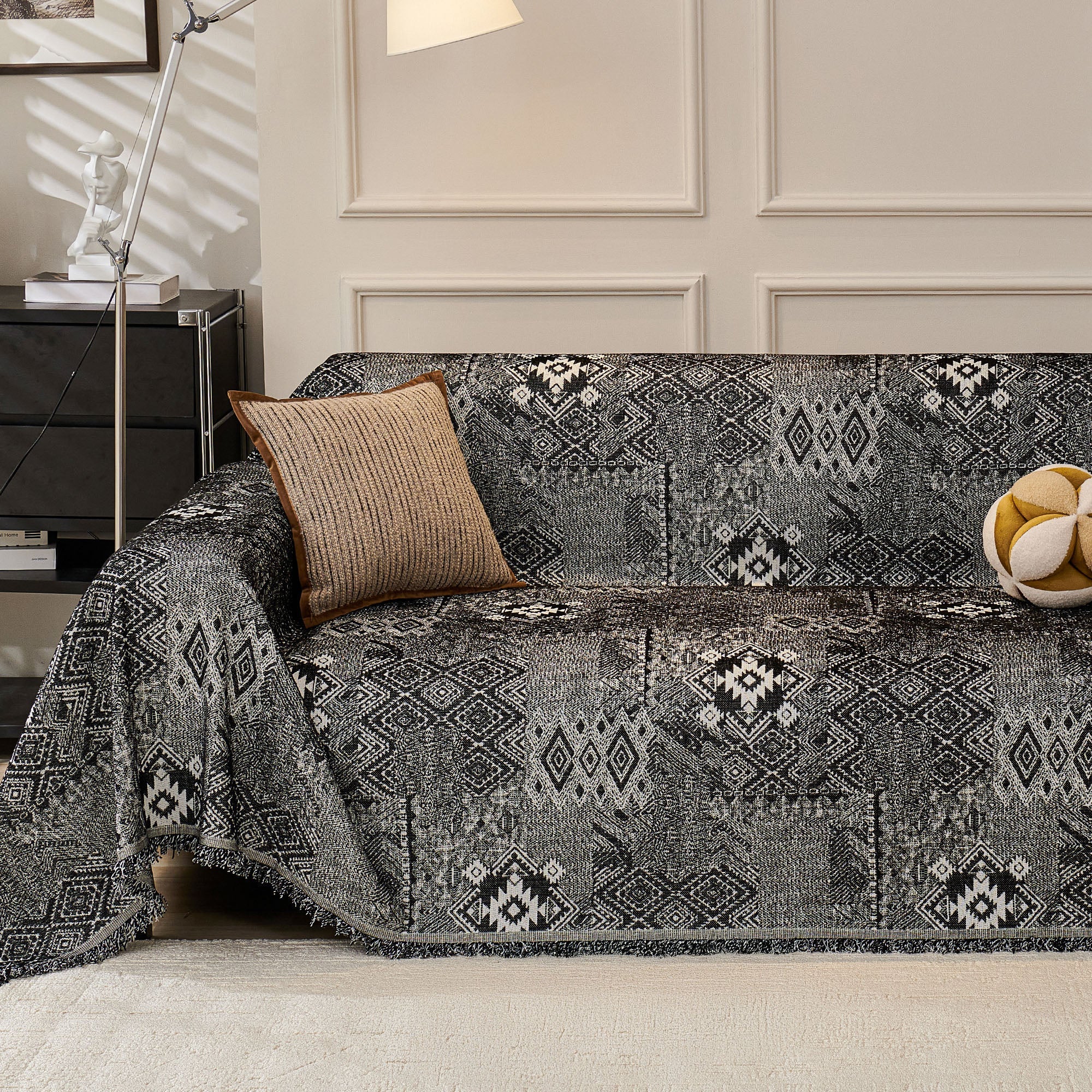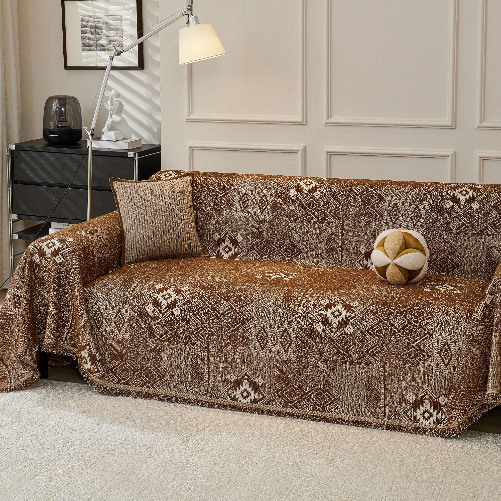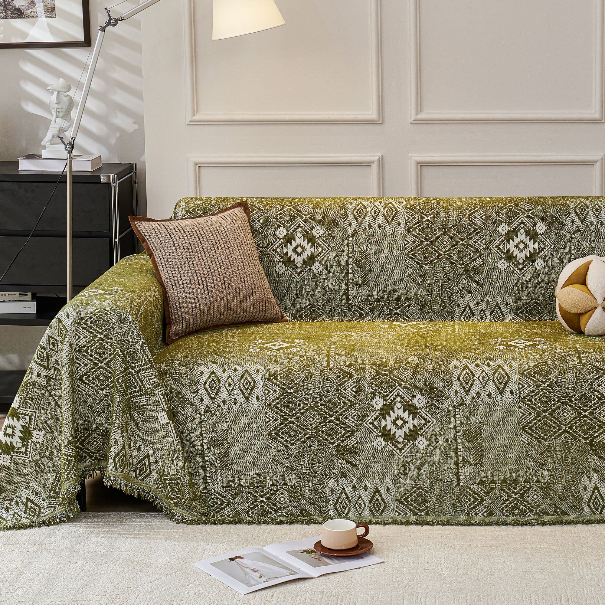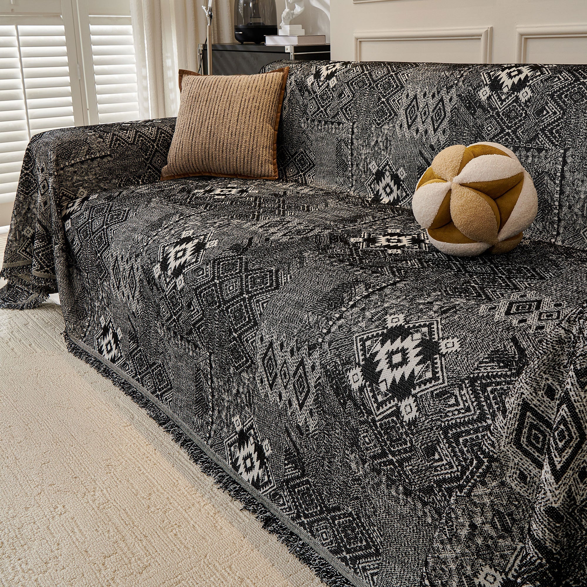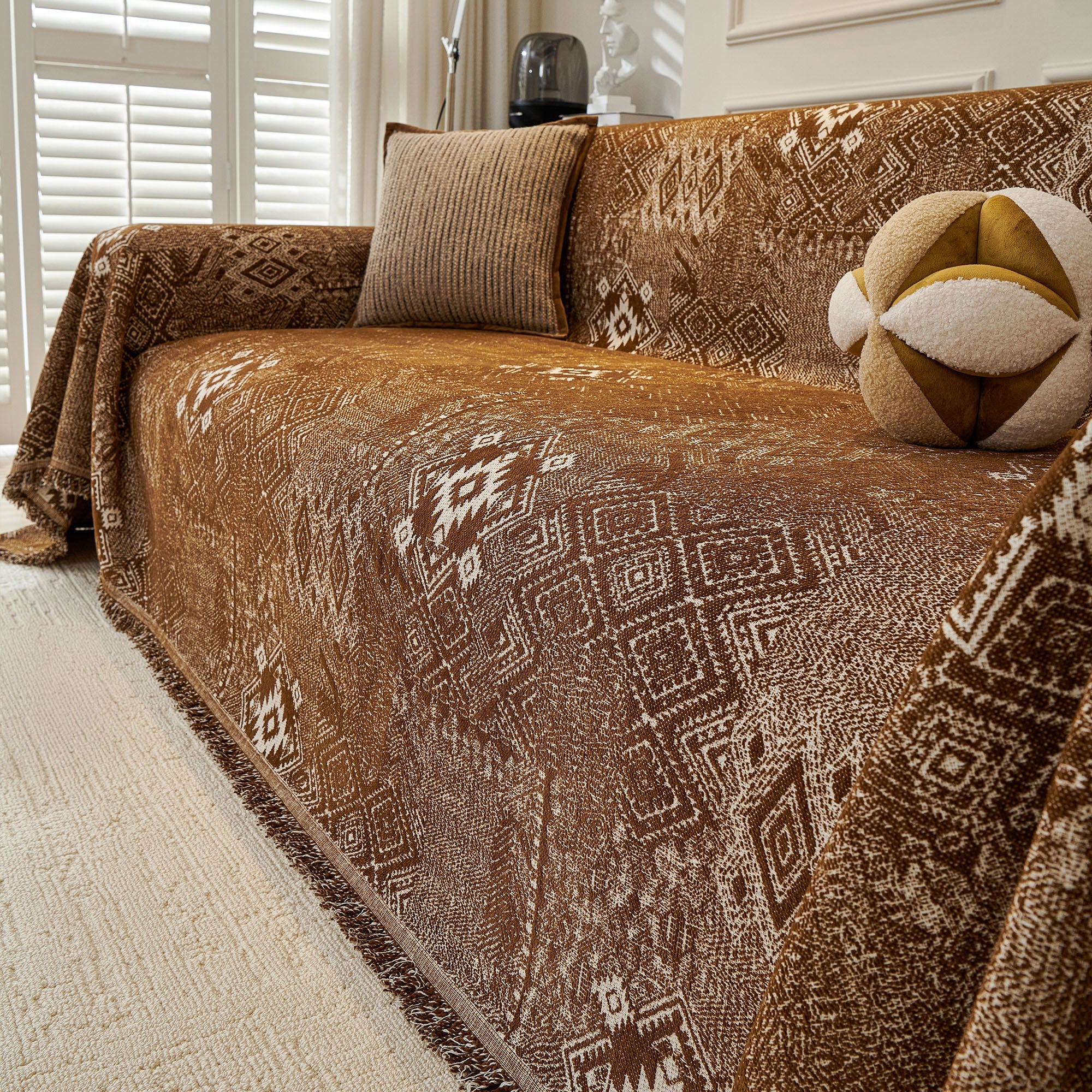 Funda de sofá vintage minimalista multiusos, apta para mascotas, con diseño tribal gemométrico en tonos pastel suaves